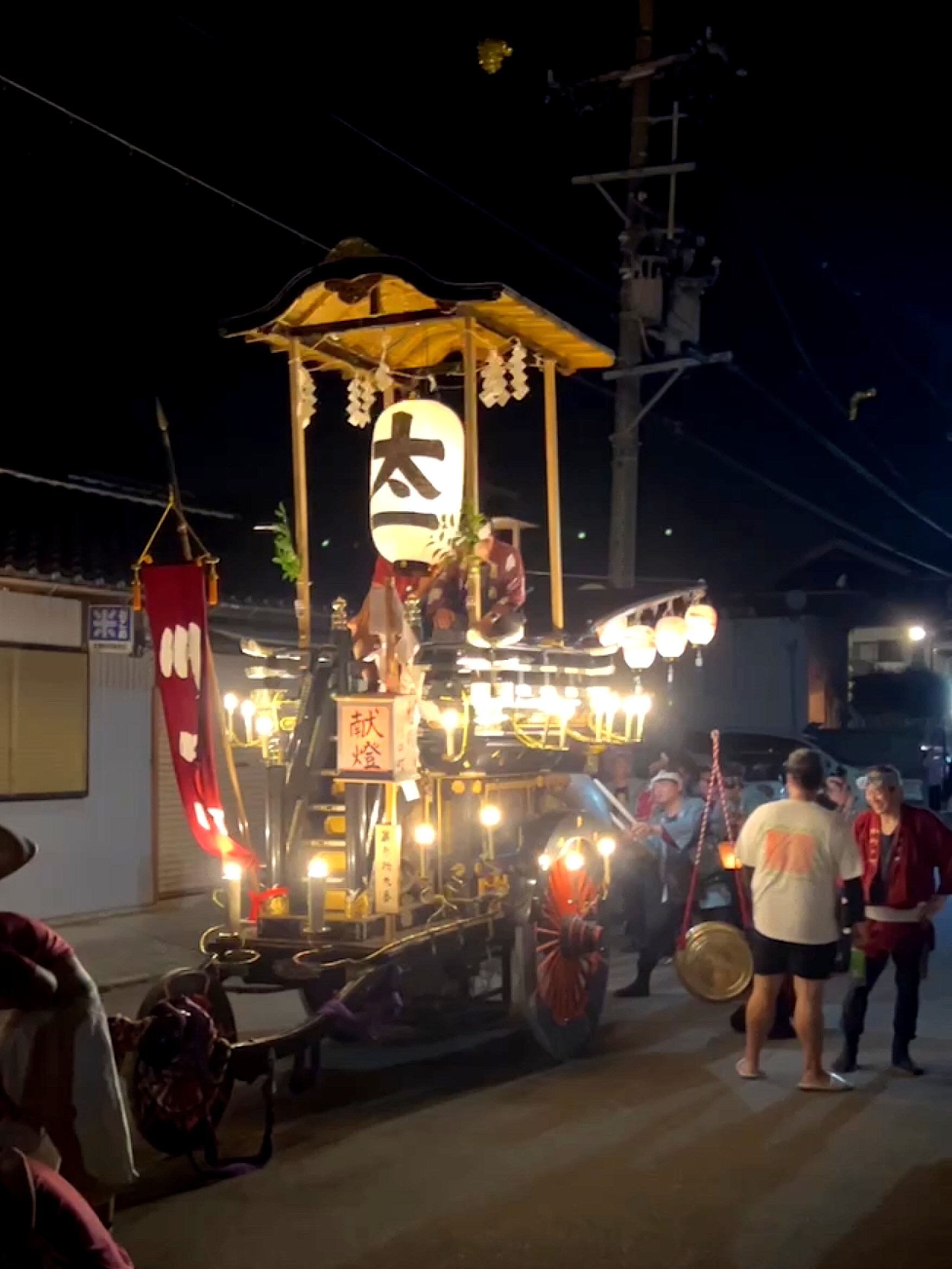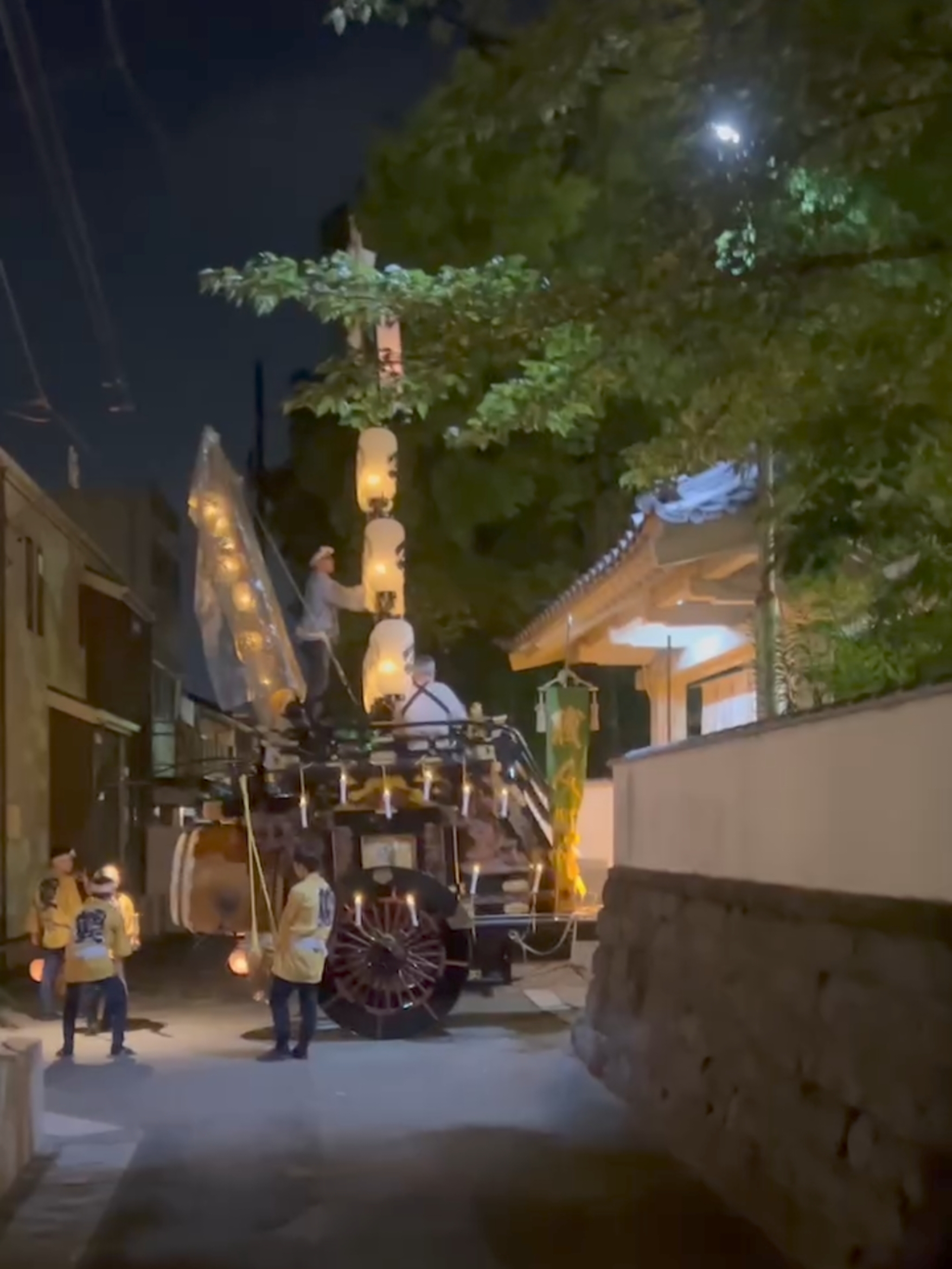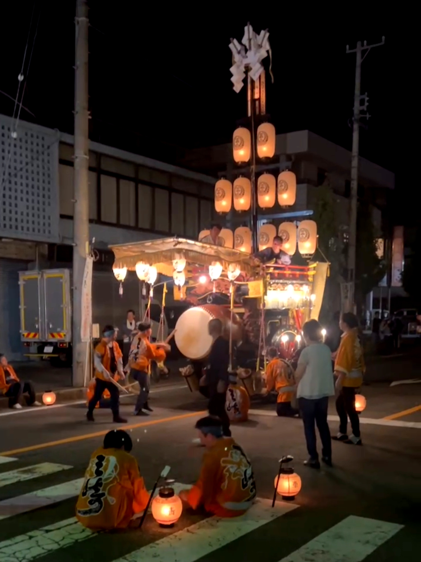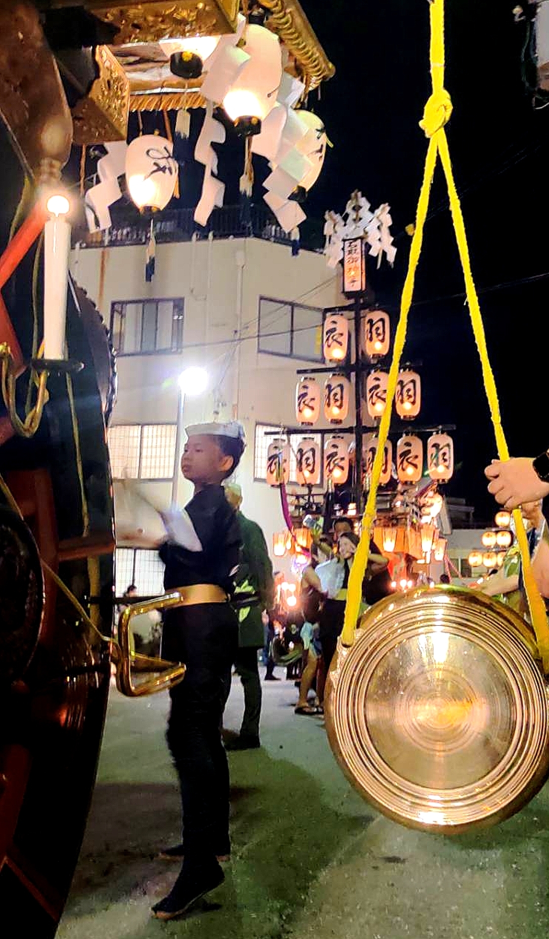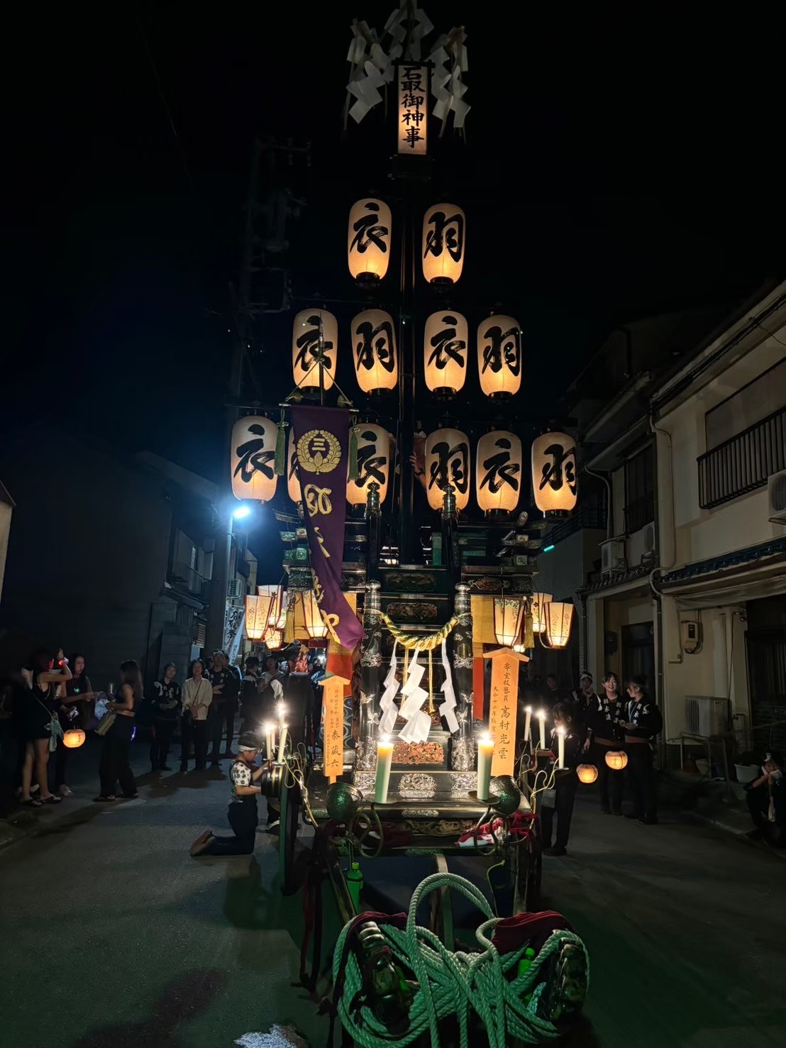 8/3 午後9時40分、第一組祭車は玉重橋でUターンをします!