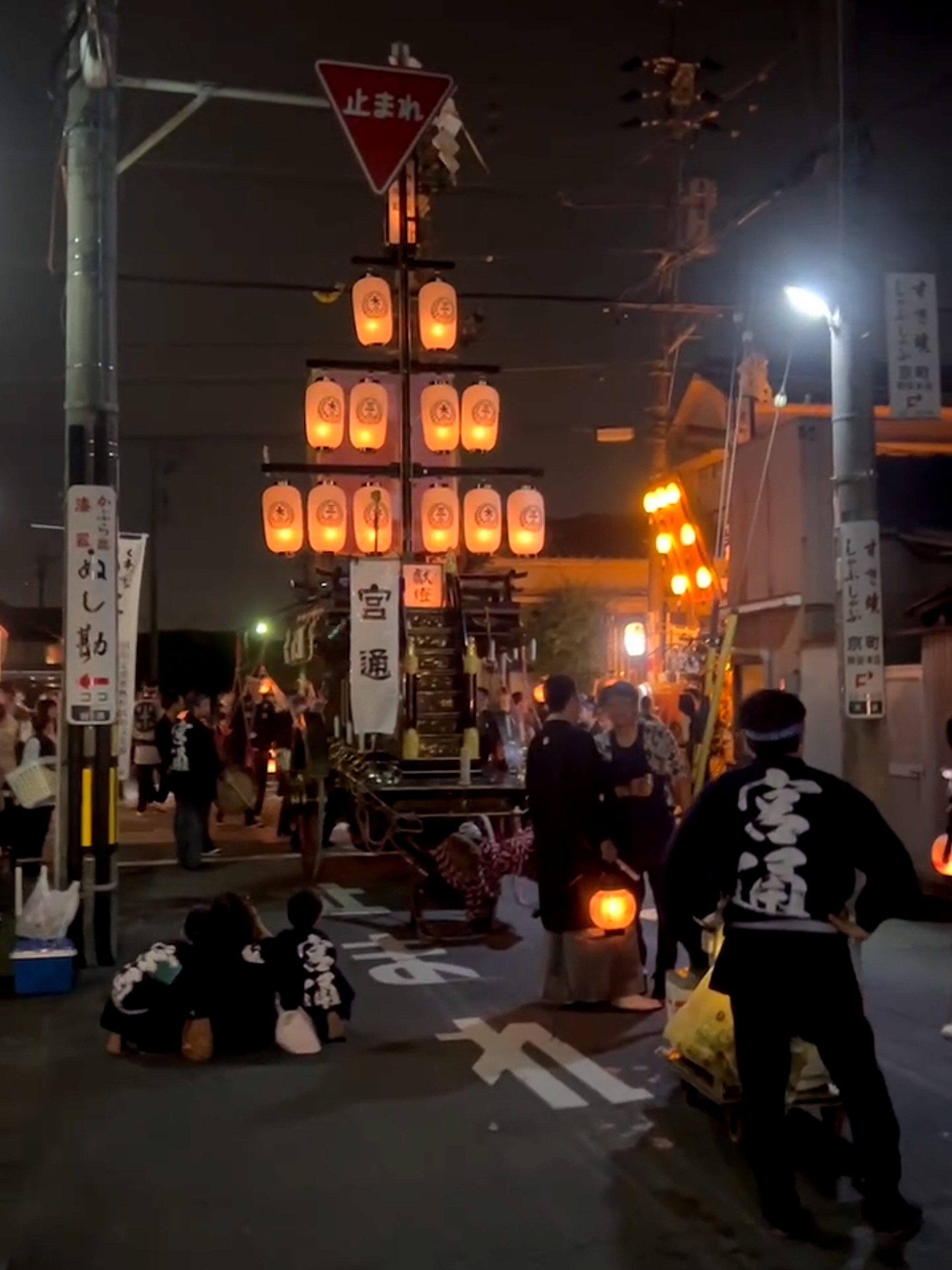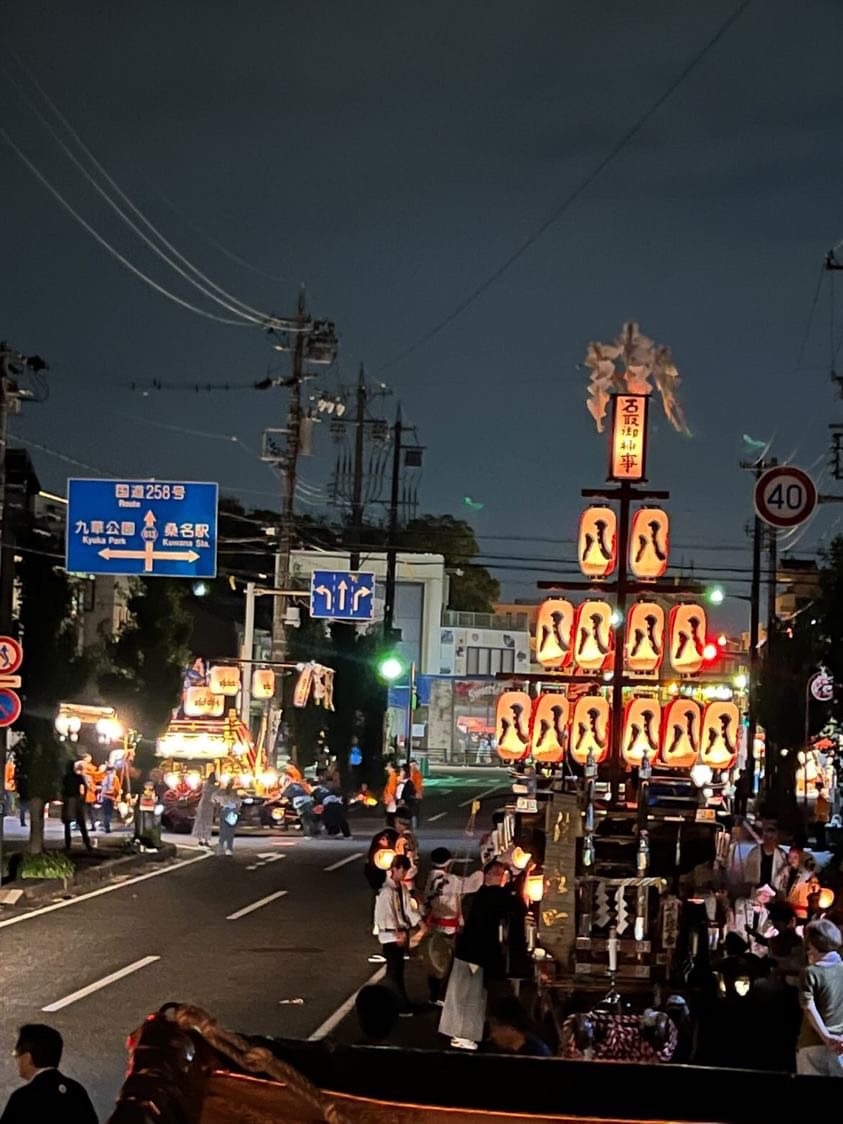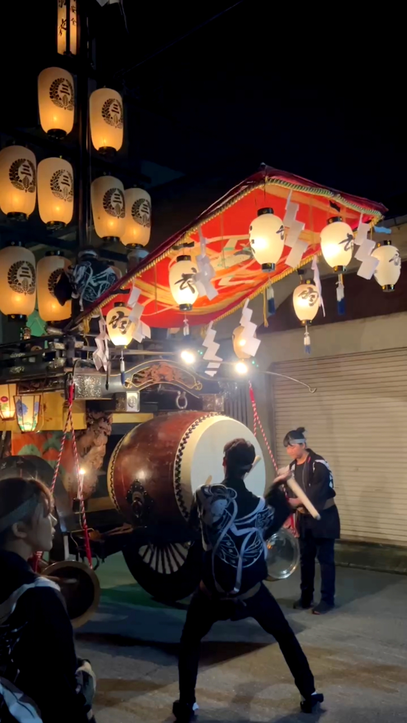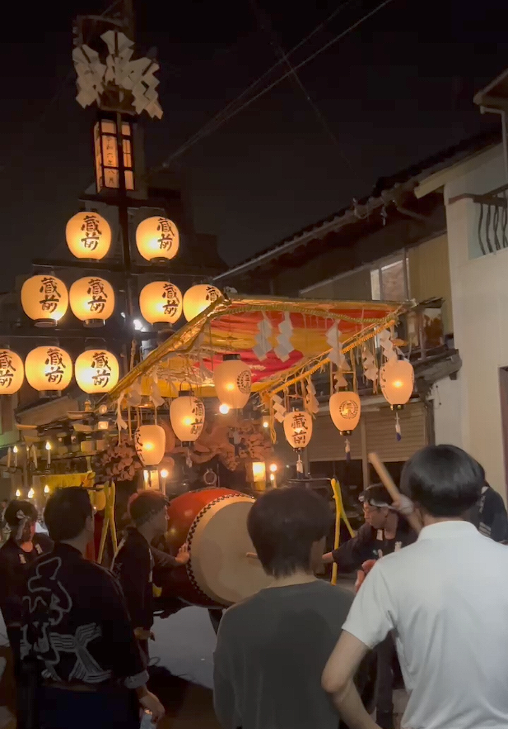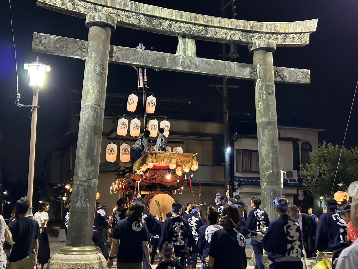 8/3 午後9時40分、第一組祭車は玉重橋でUターンをします!