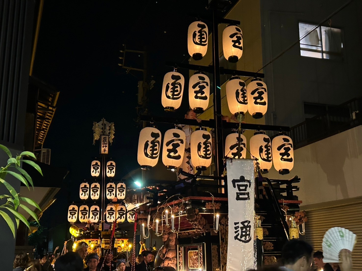 東向きに片町祭車、北向きに宮通祭車、西向きに京町祭車が着きます。