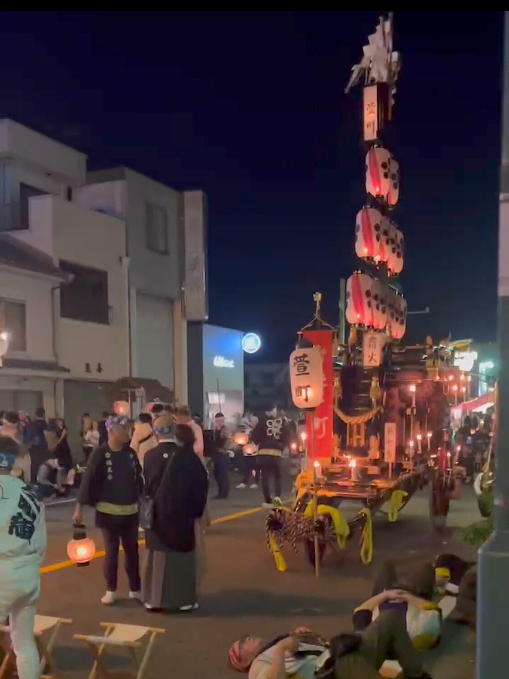 田町交差点での曳き別れが終わった祭車は、各組所定の待機場所で自組祭車が揃うのを待ちます。