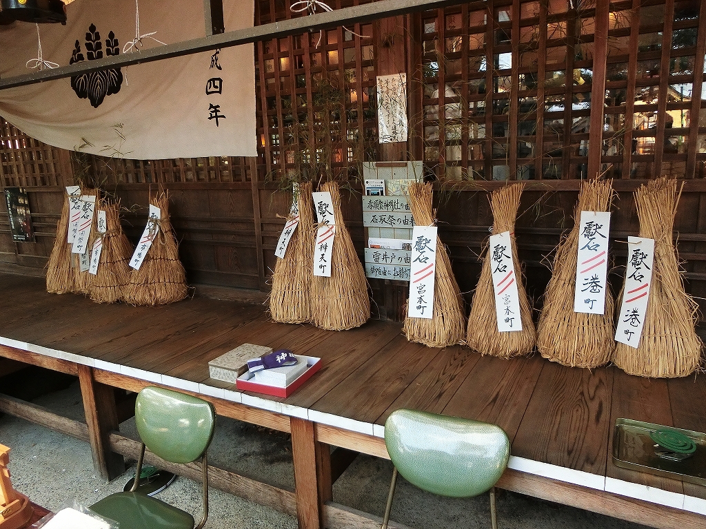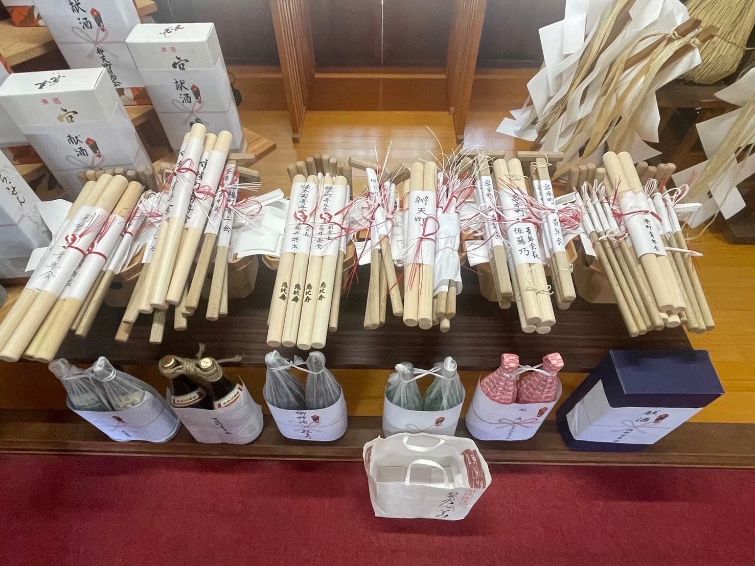 各町献酒を行い、叩き出し用の桴と檳榔子をお祓いしてもらいます。