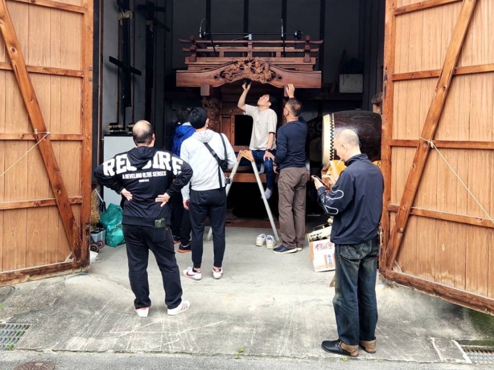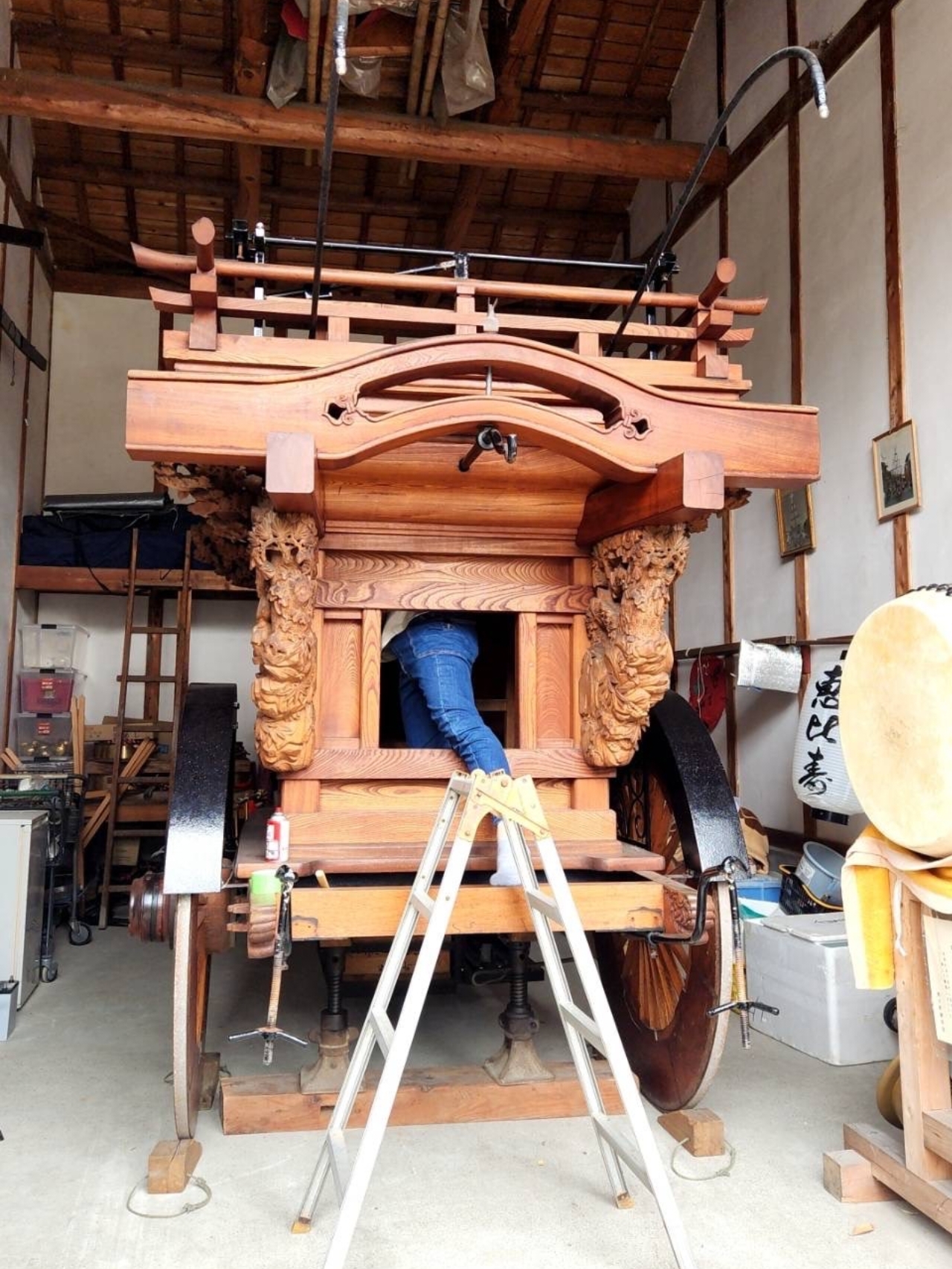 5/13 蛭子町祭車太鼓掛彫刻修復のため、彫刻が取り外されました。