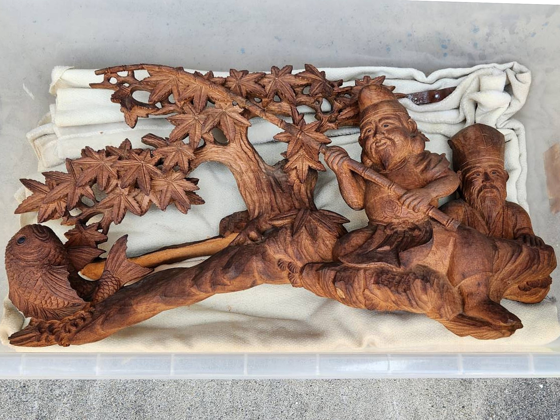 四節ほど欠けていた竹竿を彫り直し(四節分新調)、わからないように色付けして直しました。