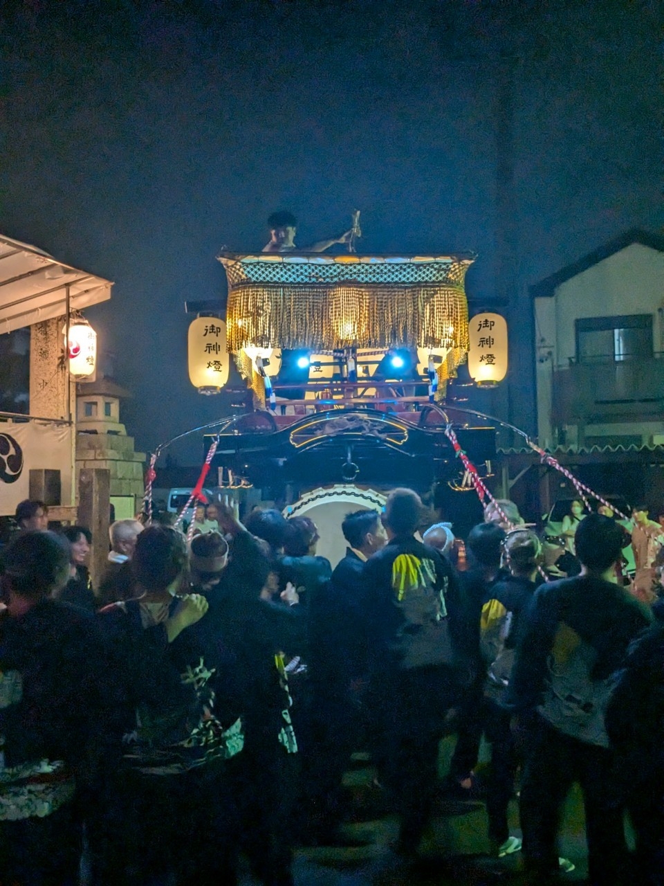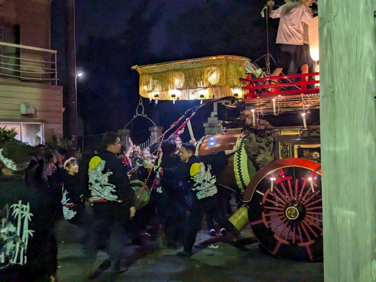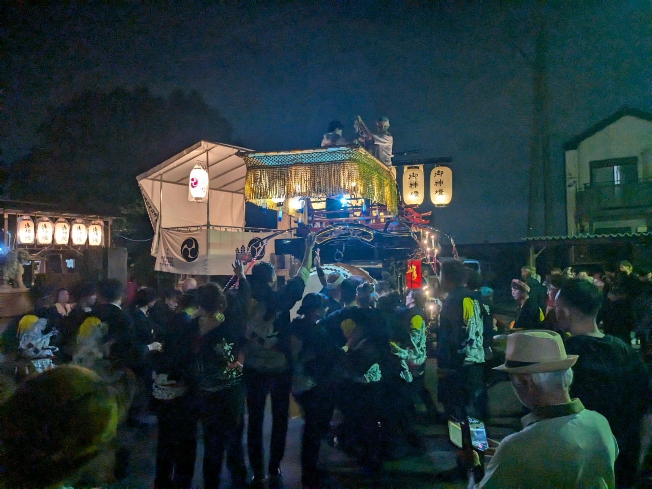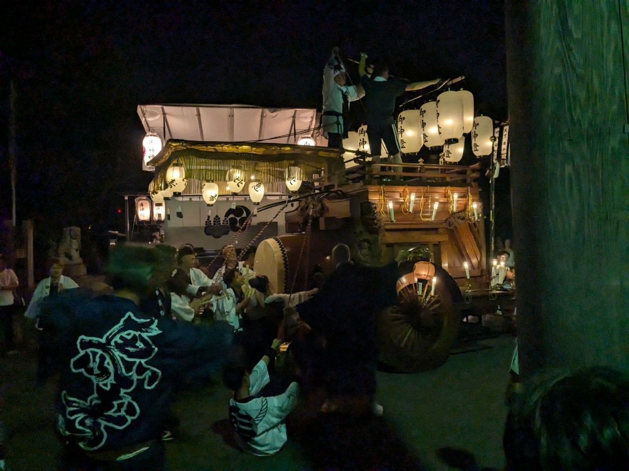 神明社前に曳き込みます。