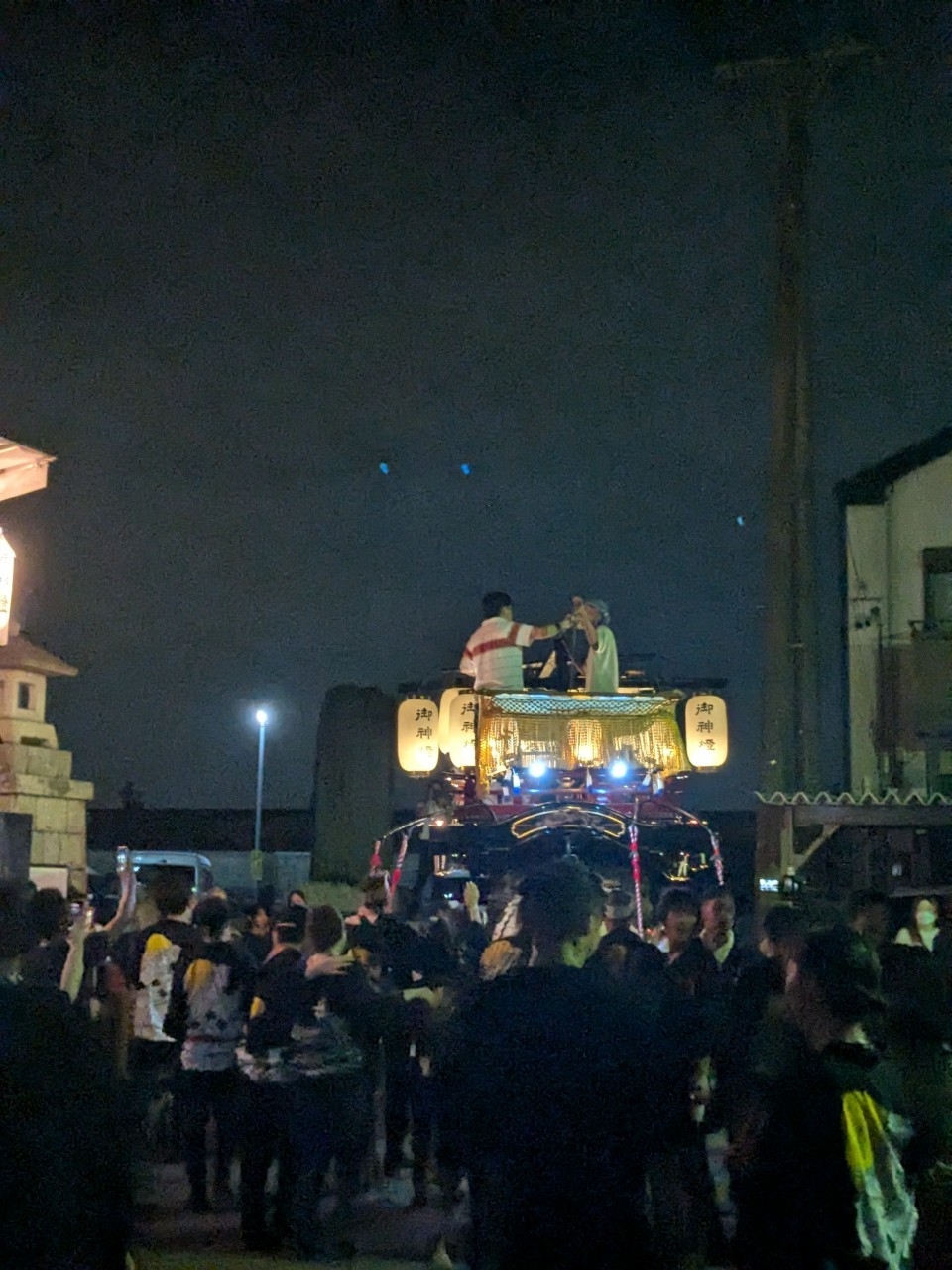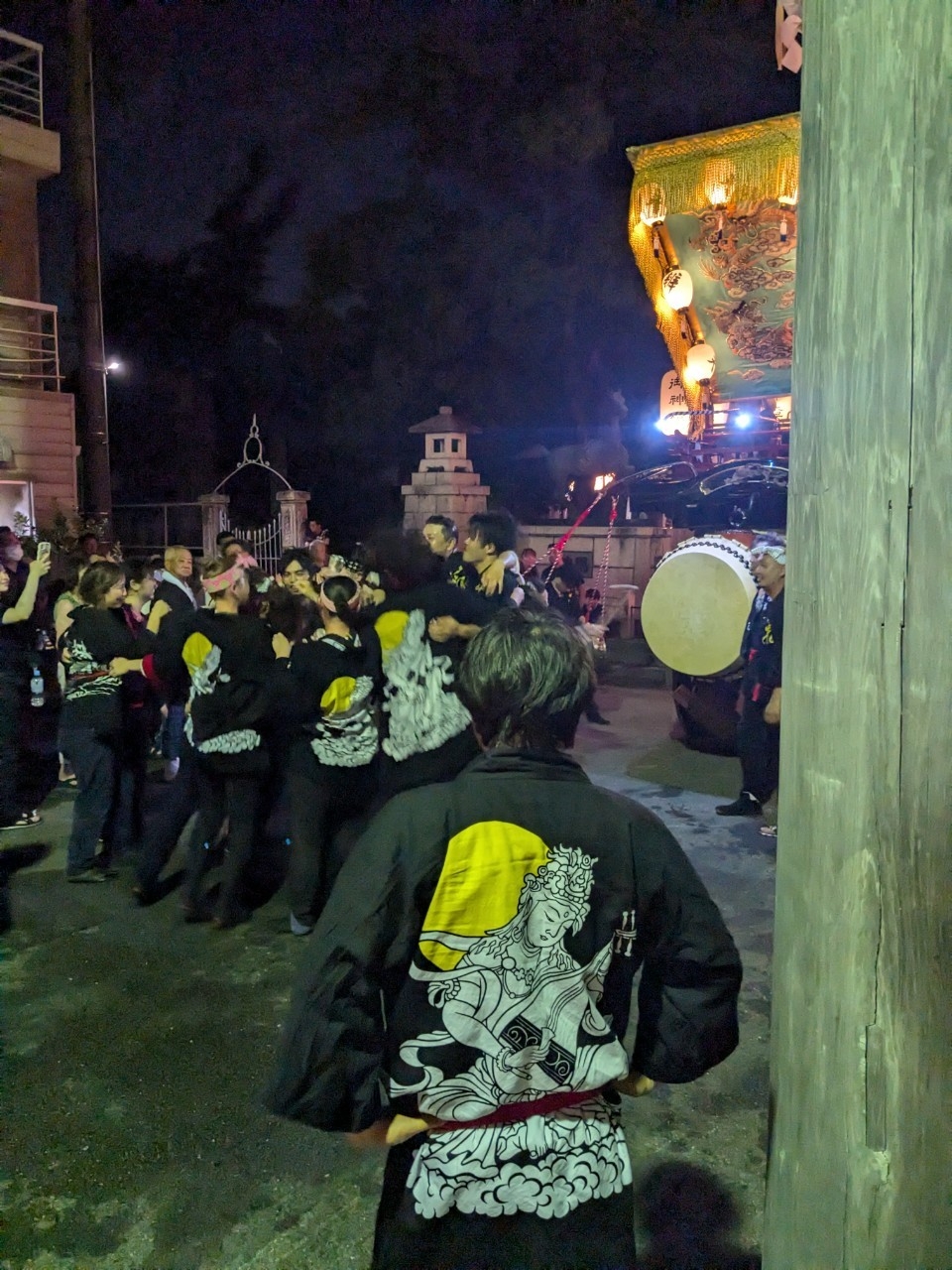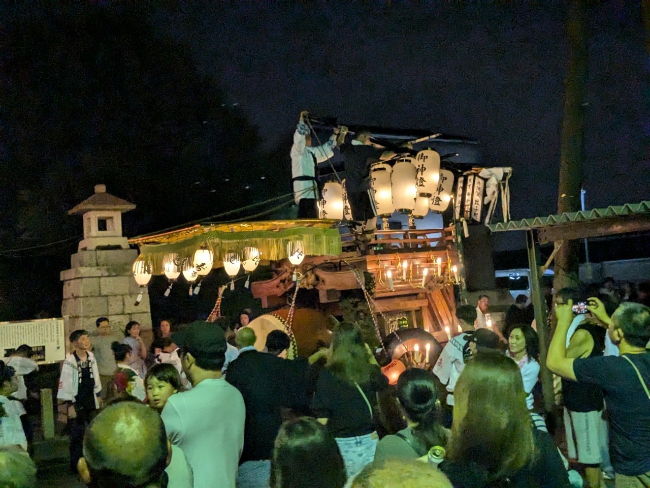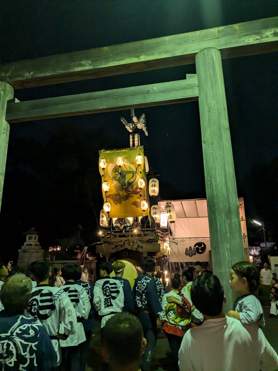 神明社前に曳き込みます。