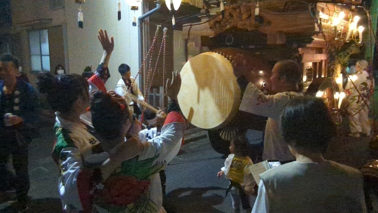 8/14 花車の蛭子町祭車は、神明社手前まで進みました!