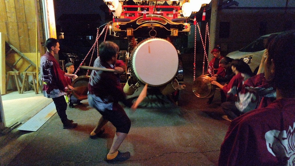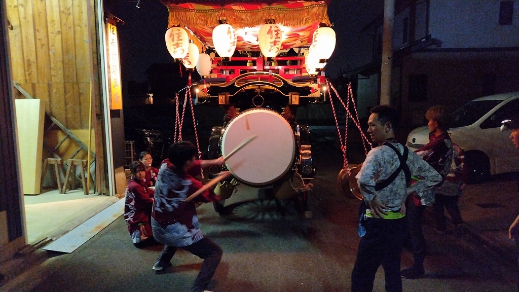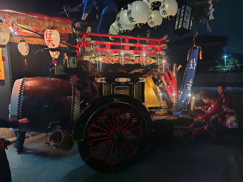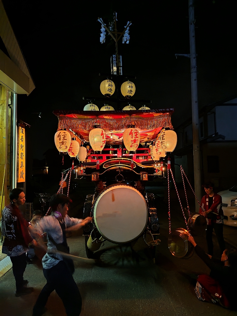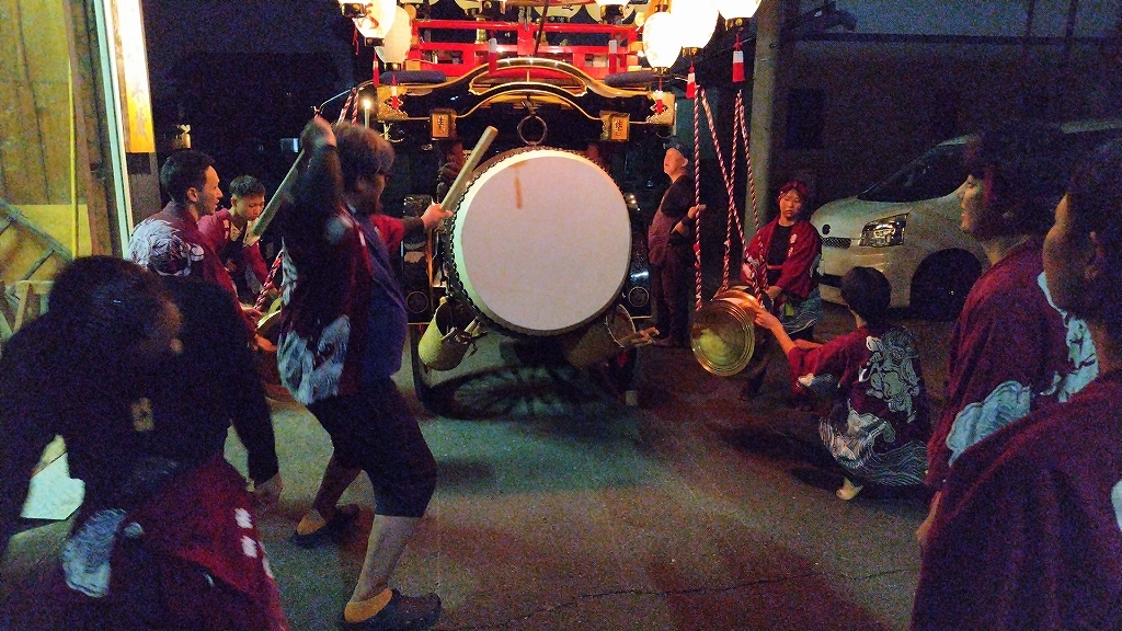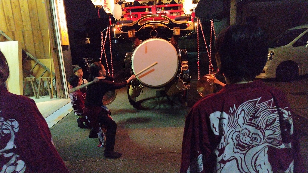 午後10時半、叩き納めて祭車蔵に入れます。