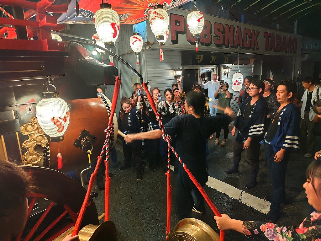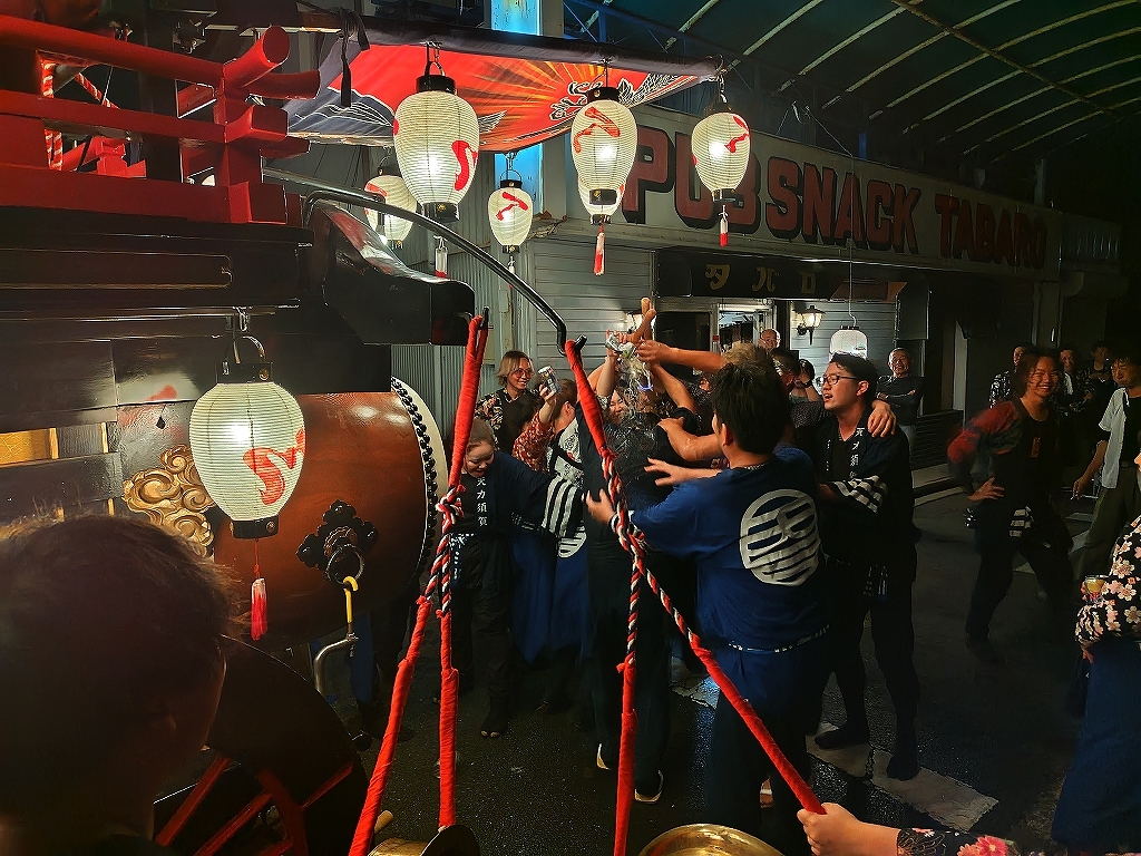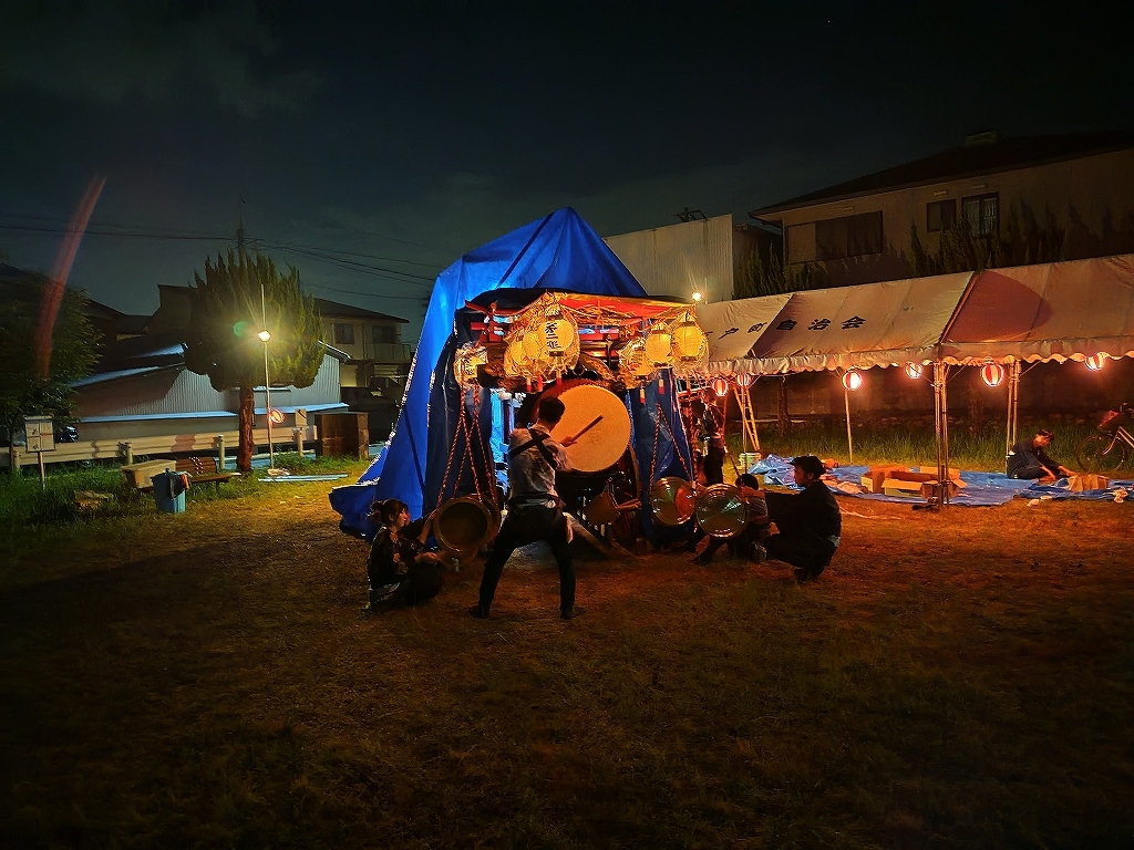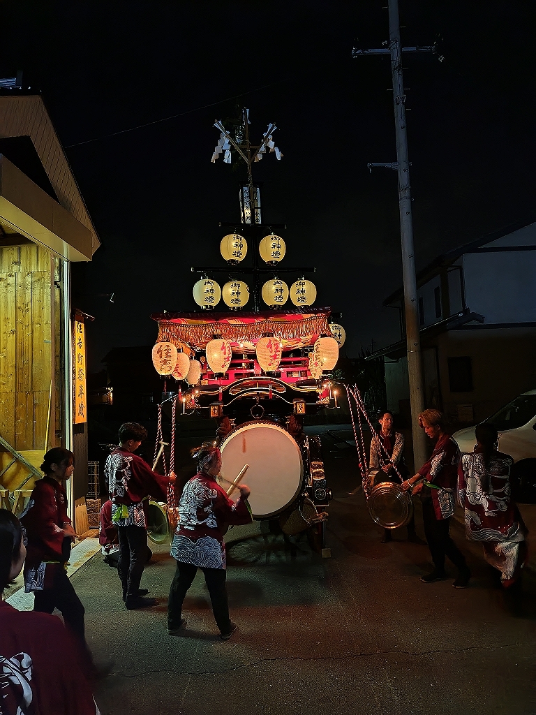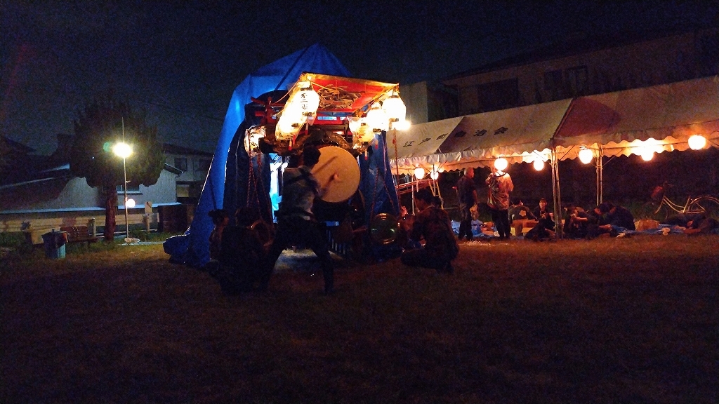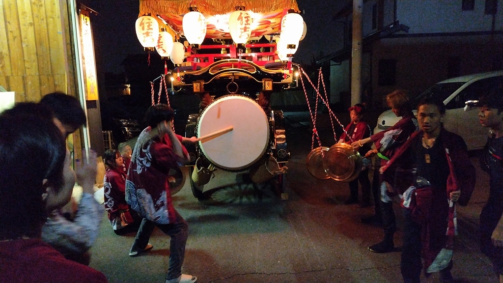 午後10時半、叩き納めて祭車蔵に入れます。