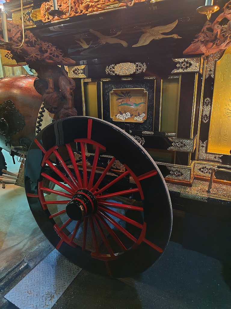 祭車蔵内では破魔隠しが当たるらしく、外してから祭車を入れます。