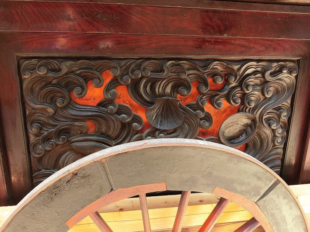 金箔押しされた彫刻を見ると、名古屋型山車との文化の近さを感じます。