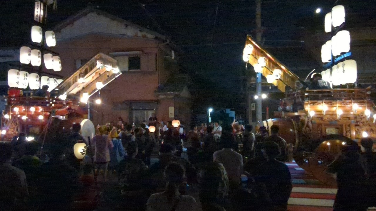 はまぐりプラザ前で曳き別れを行います。