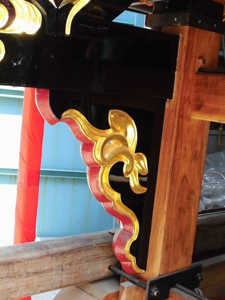 龍の金箔押し彫刻です。