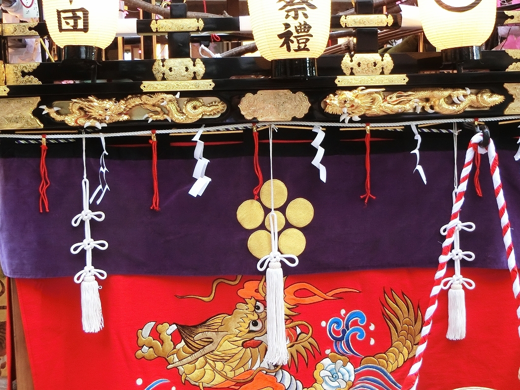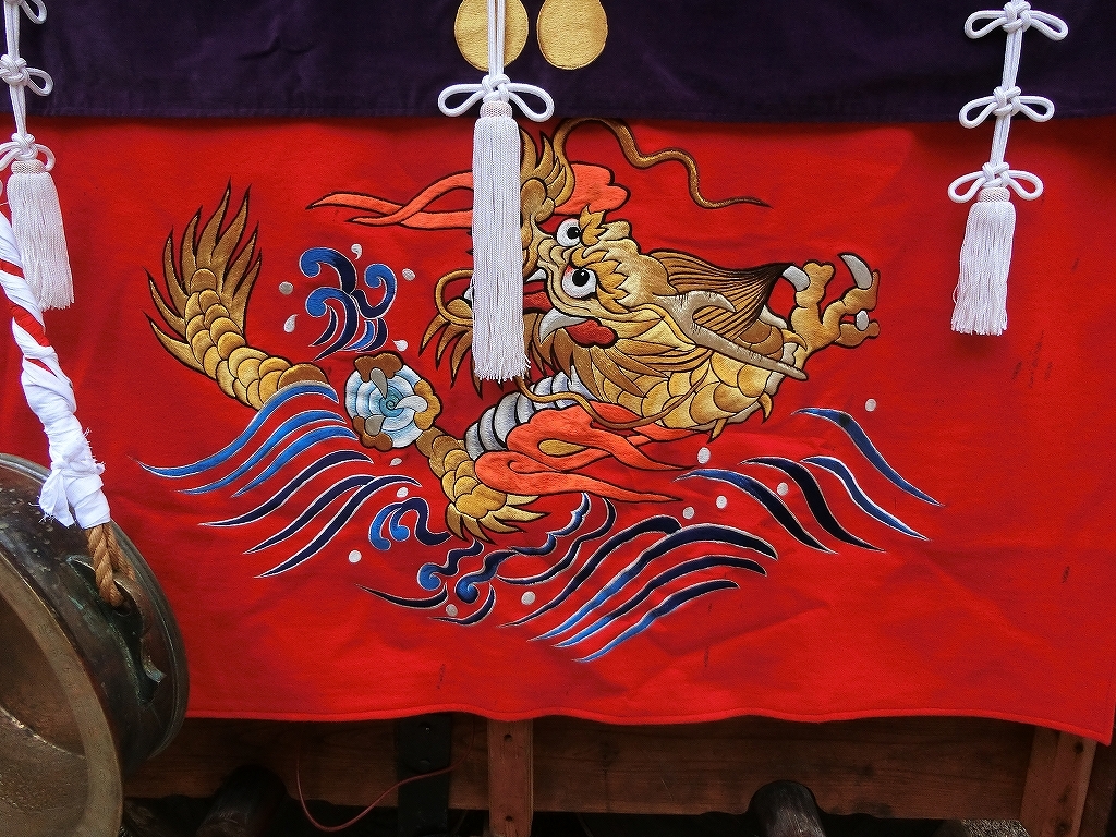 胴幕は赤地に波に龍の刺繍です。