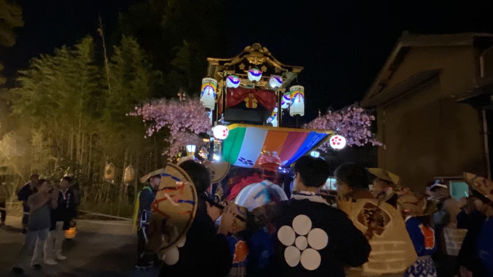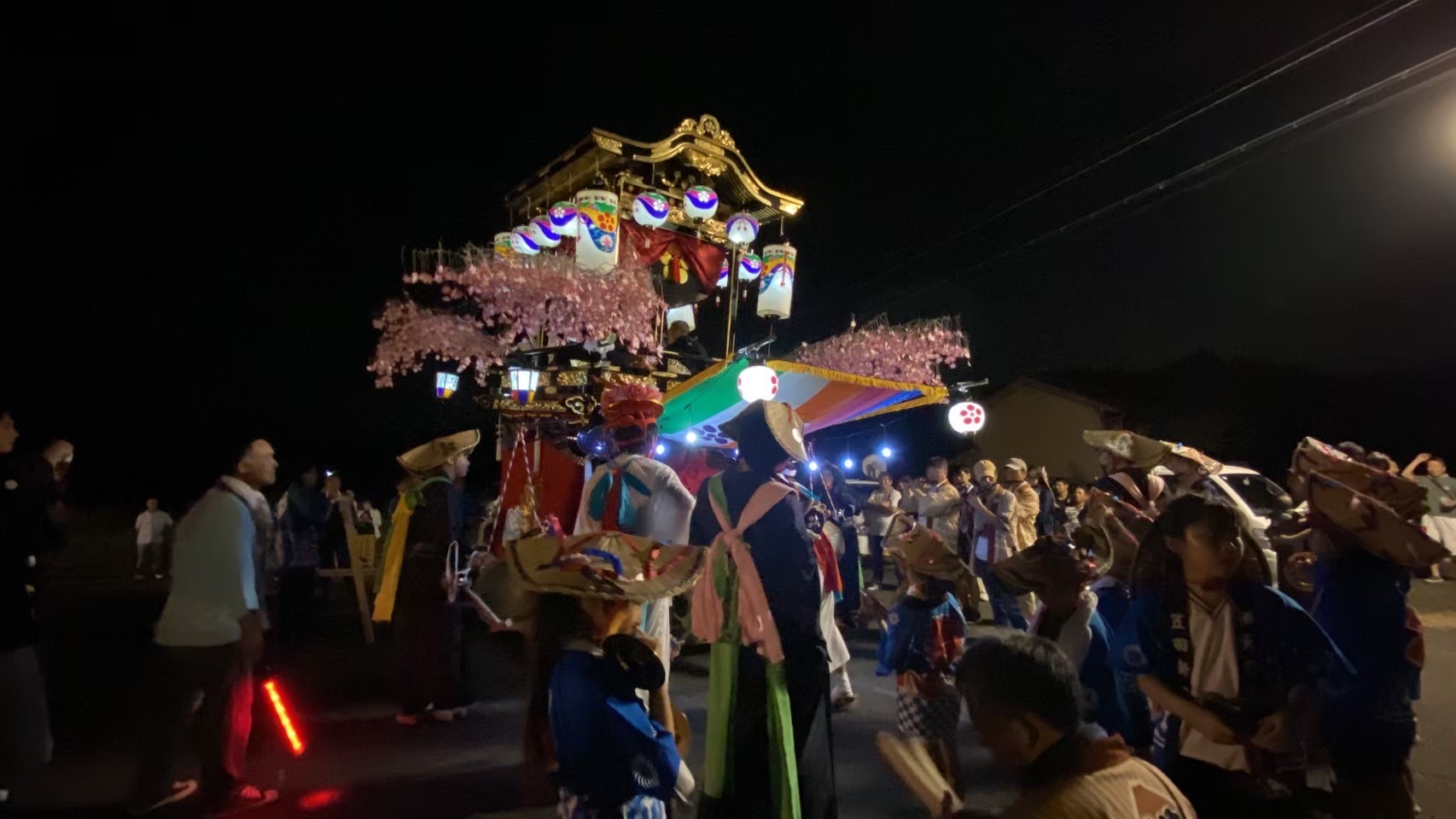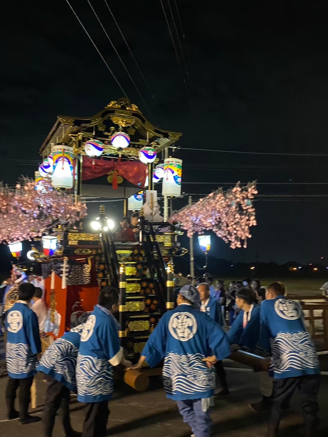 大泉新田神明社境内で出発を待つ、祭車にはシートが掛けられています。