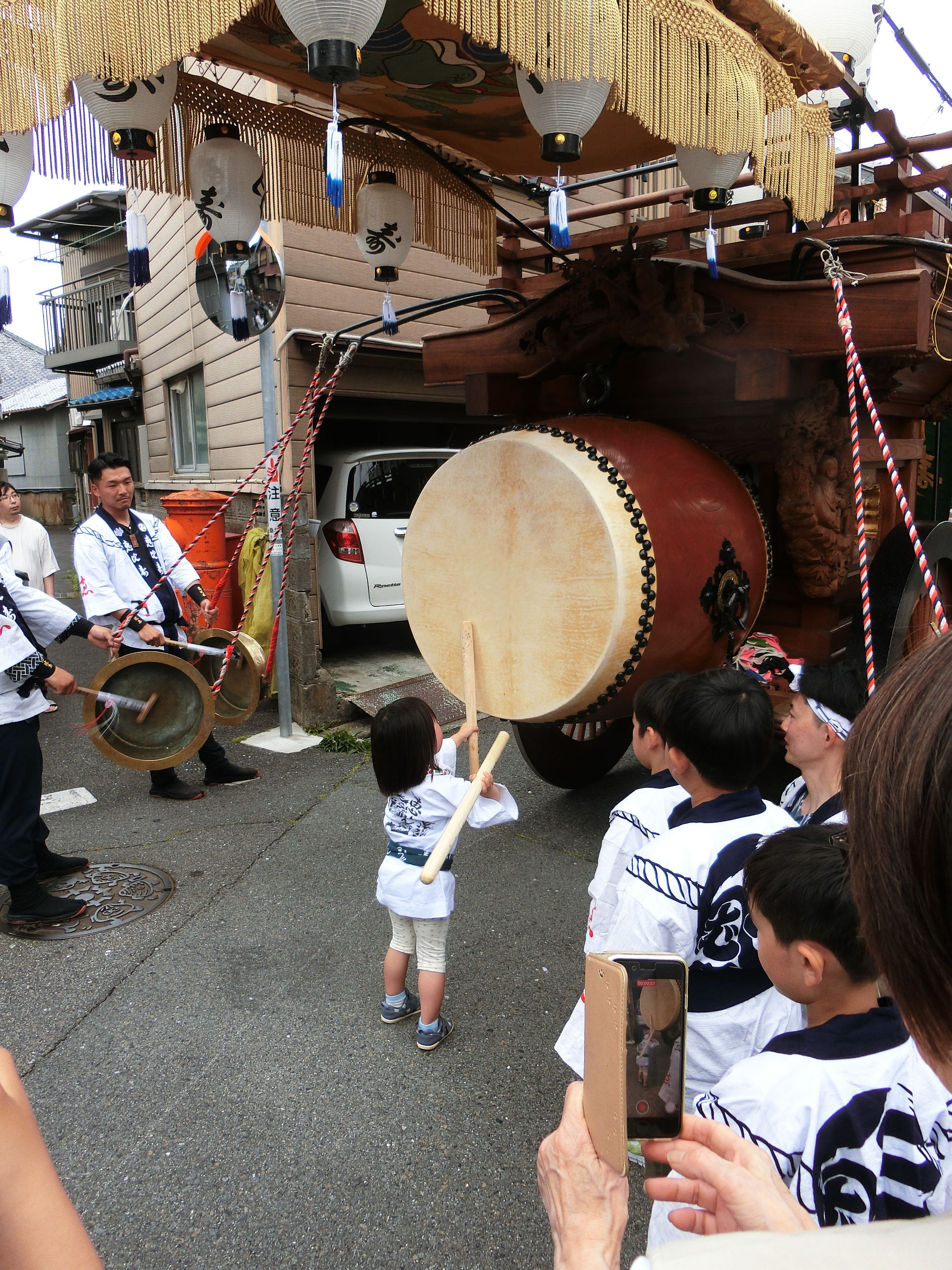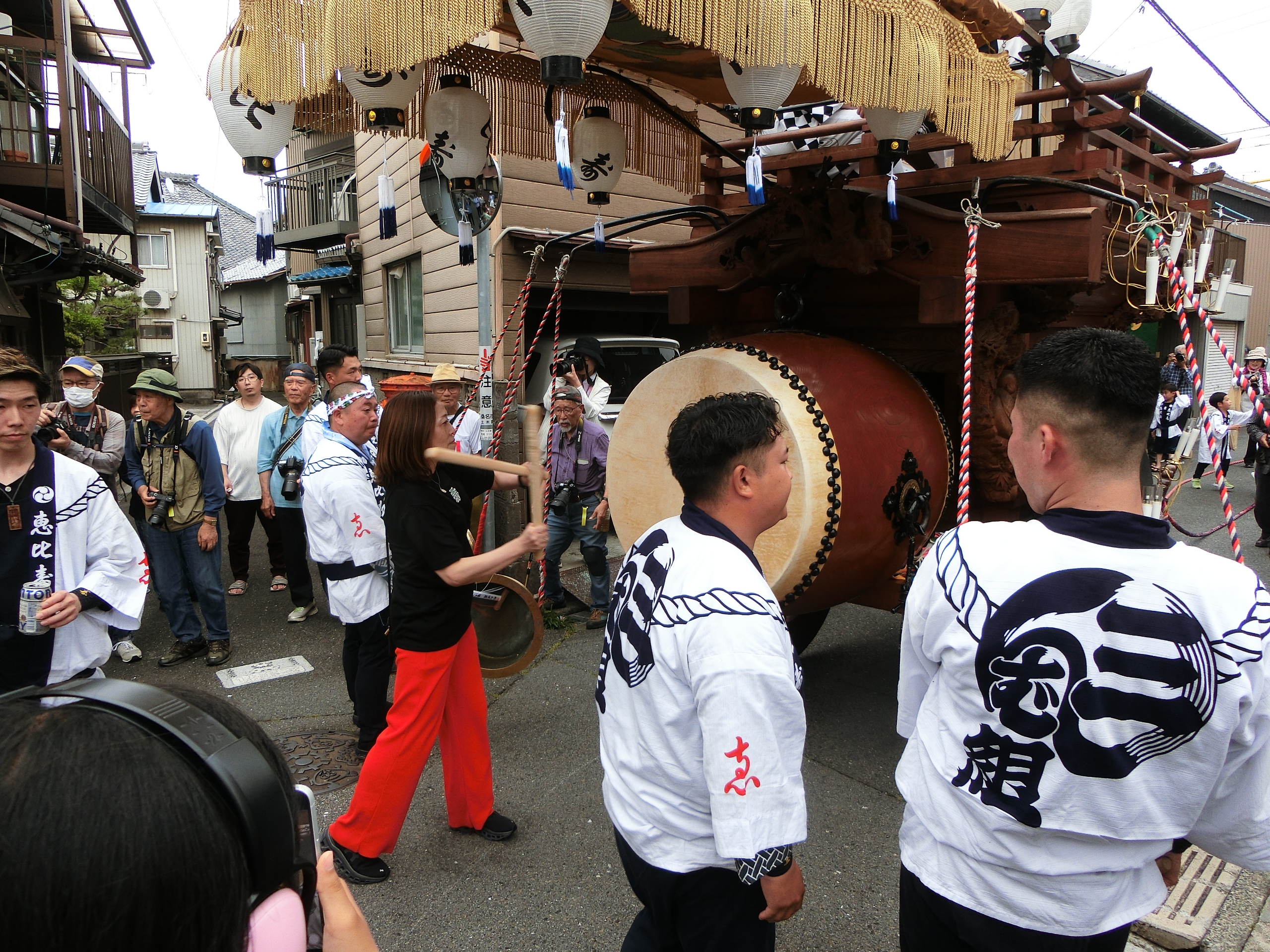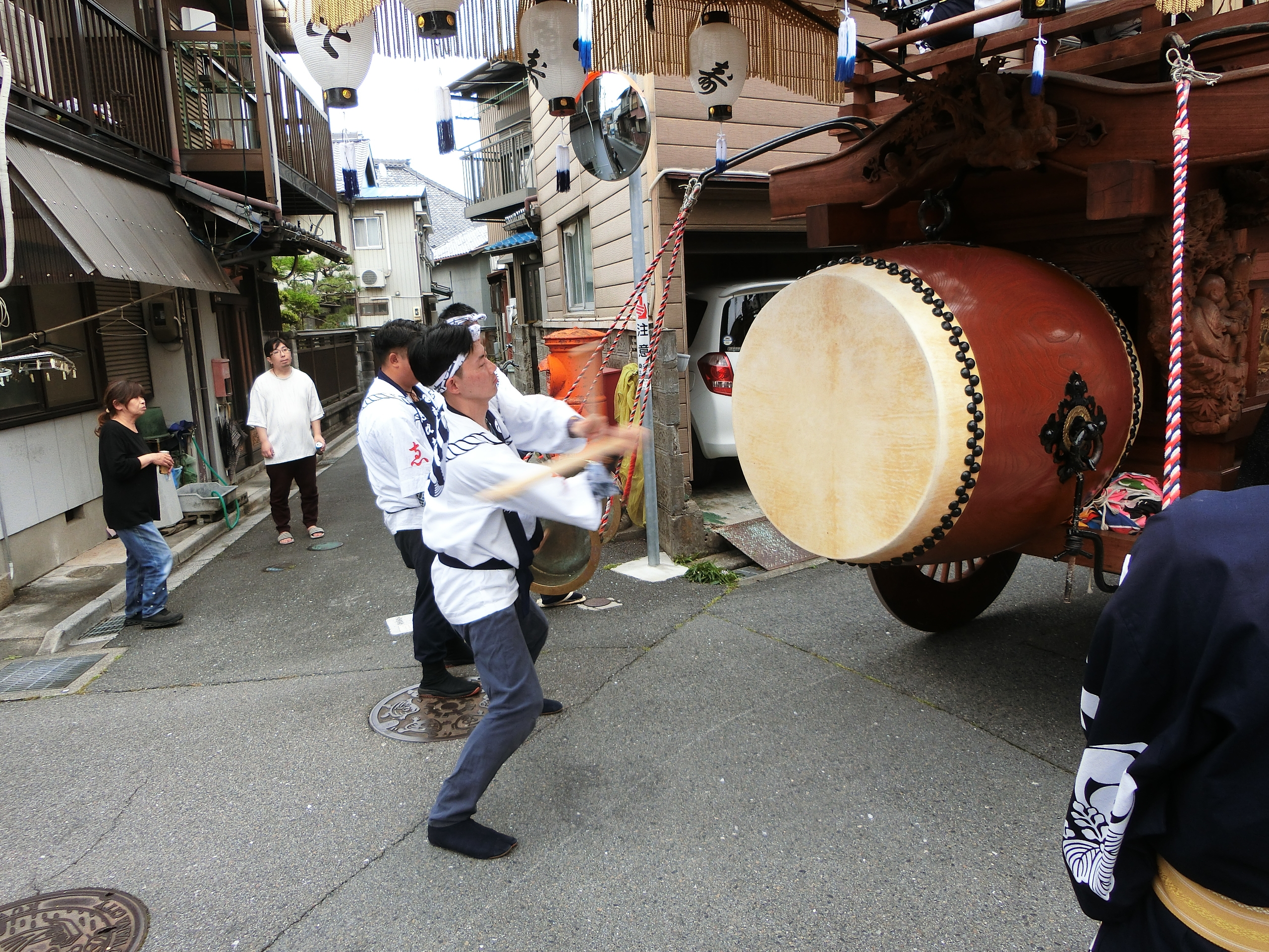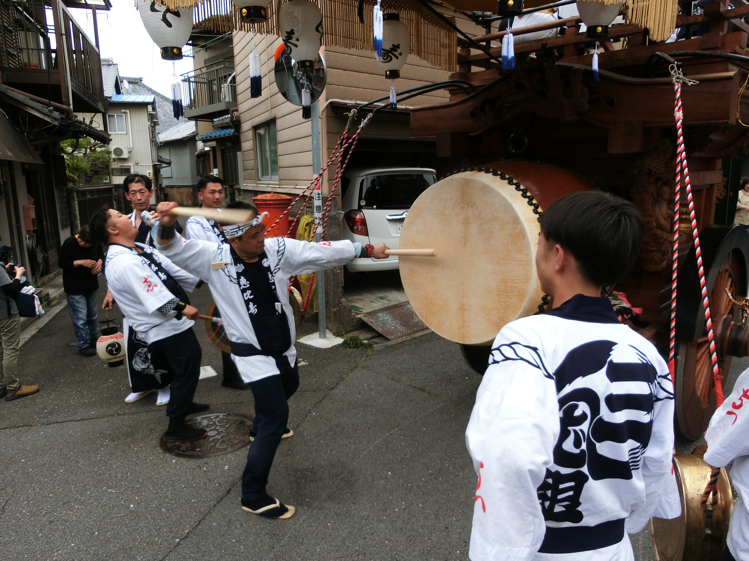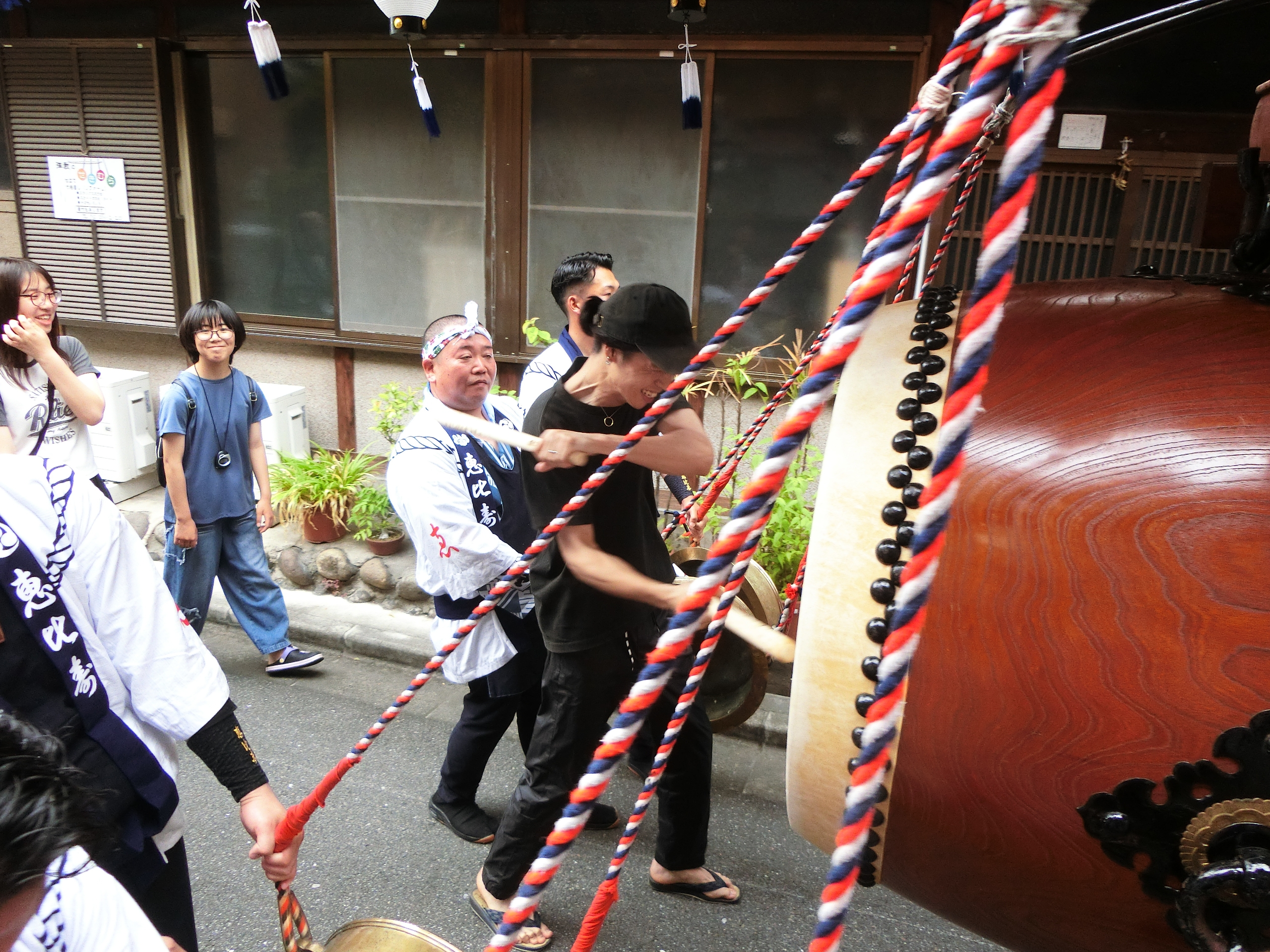 蛭子町関係者が順に叩きます。