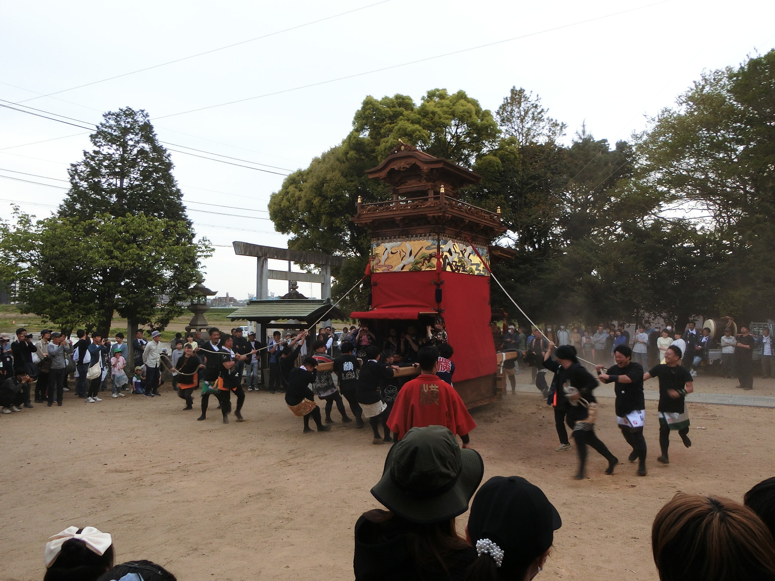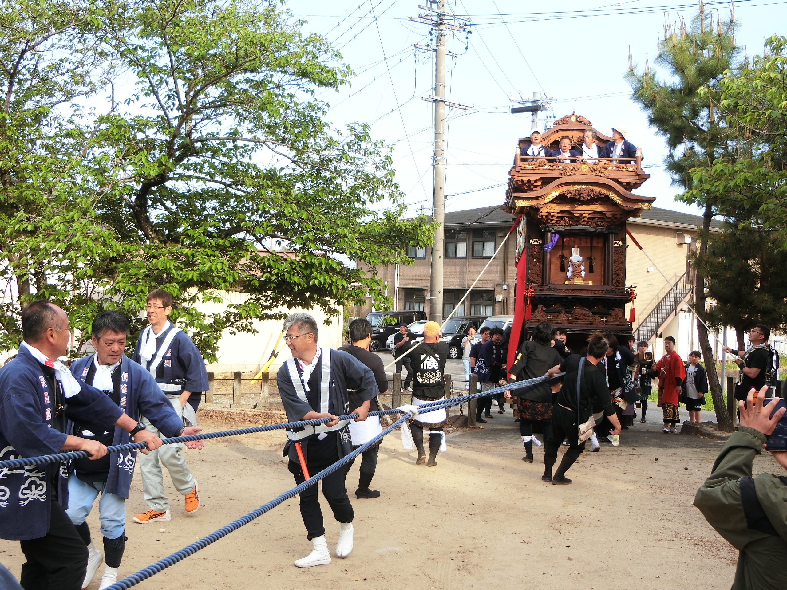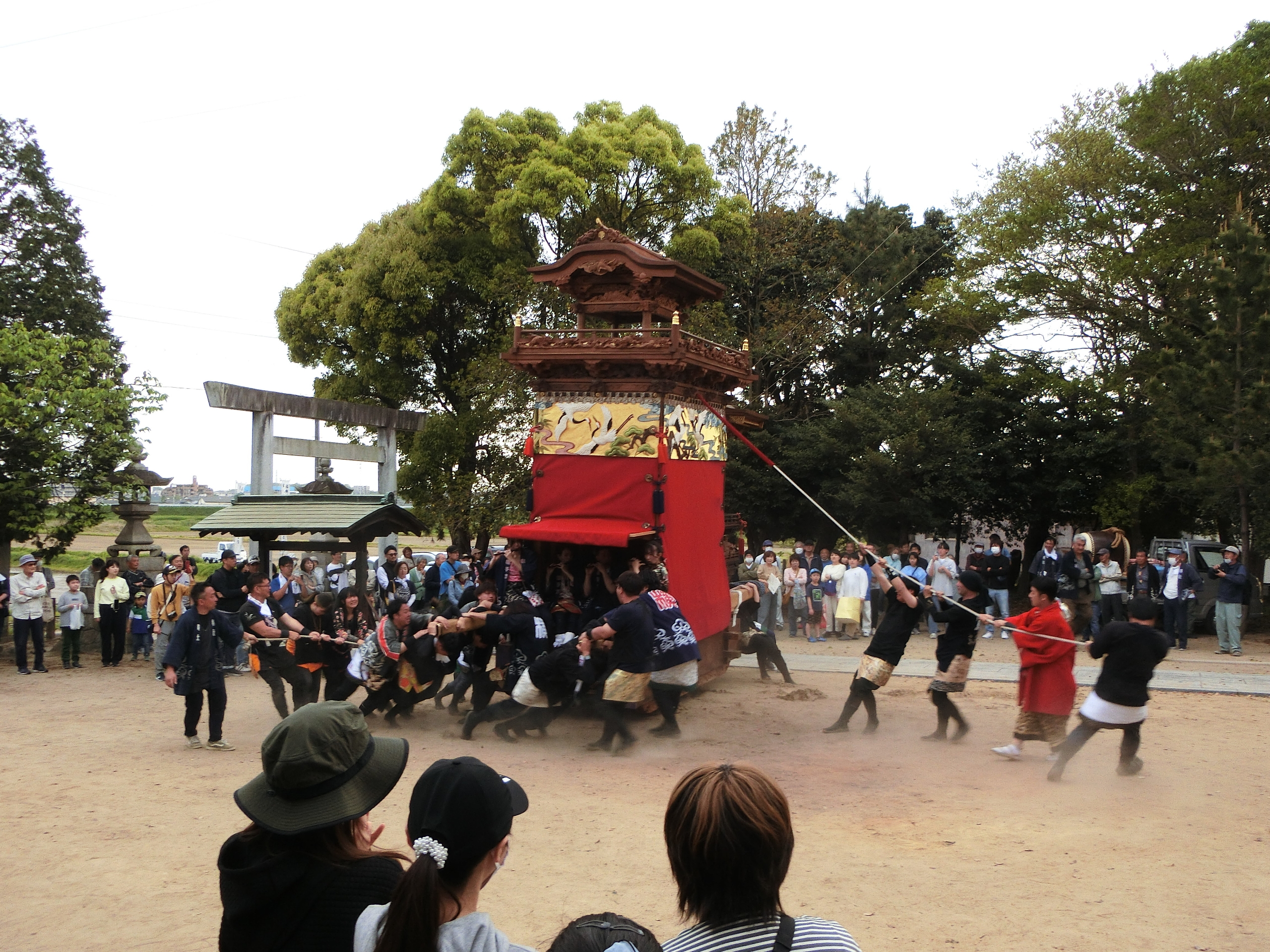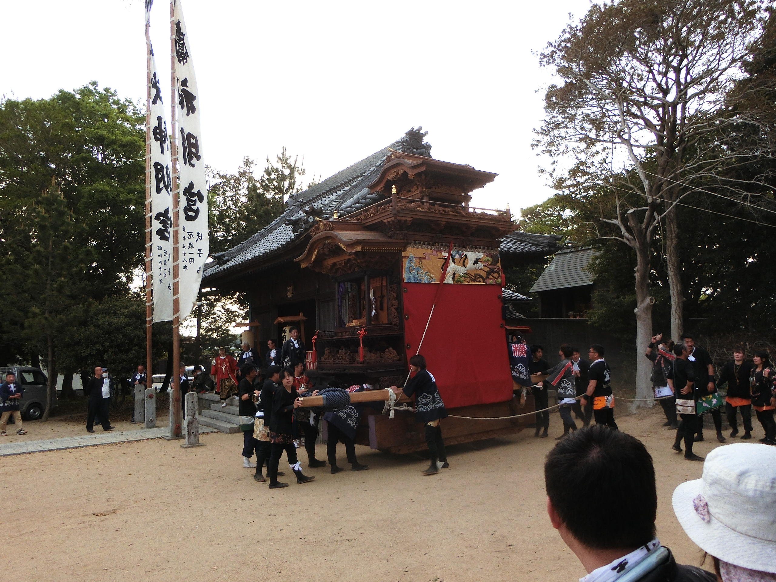 神明社へ曳き込みます。