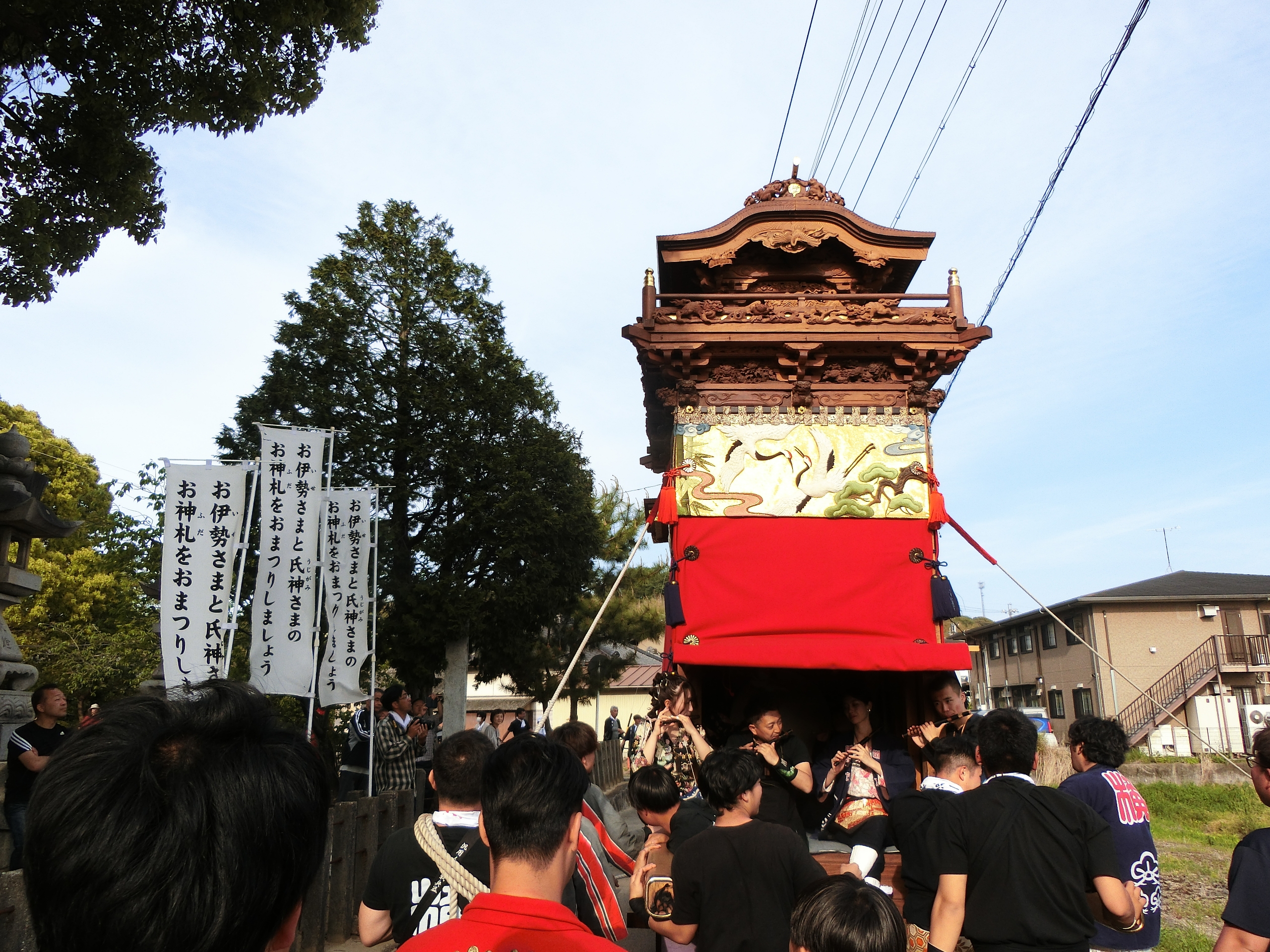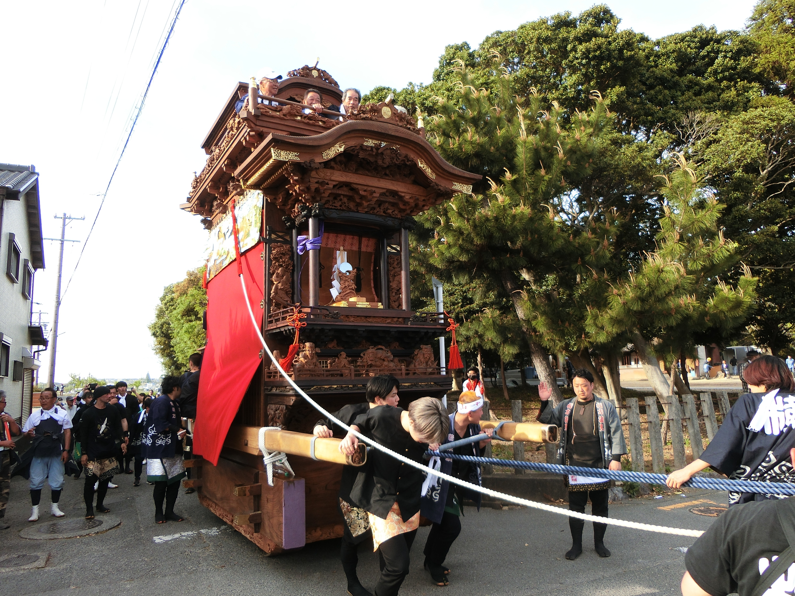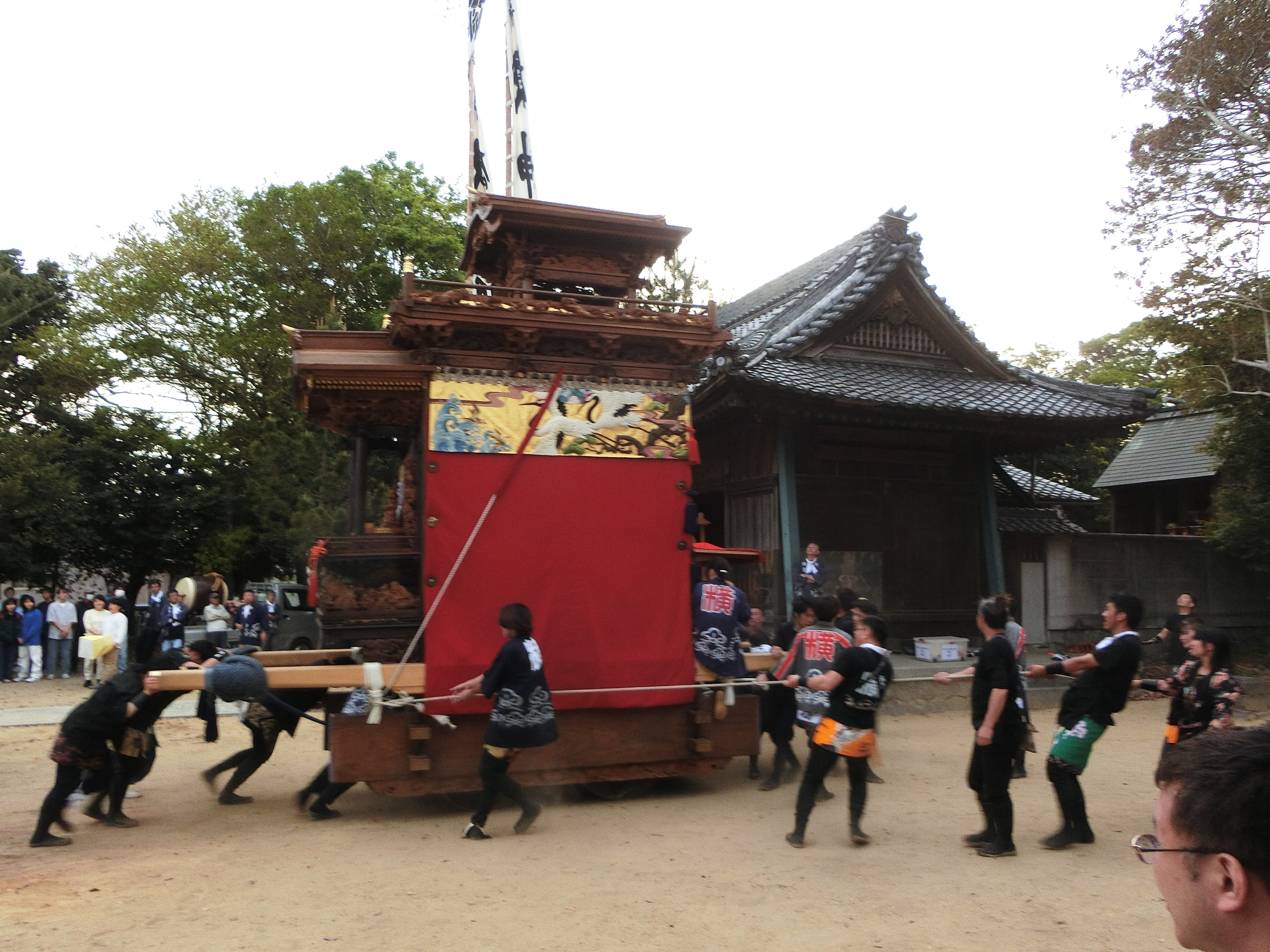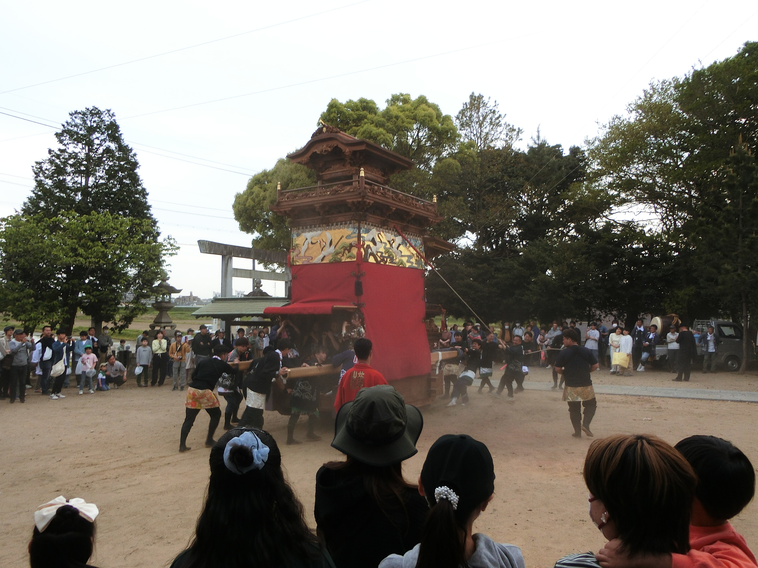 神明社へ曳き込みます。