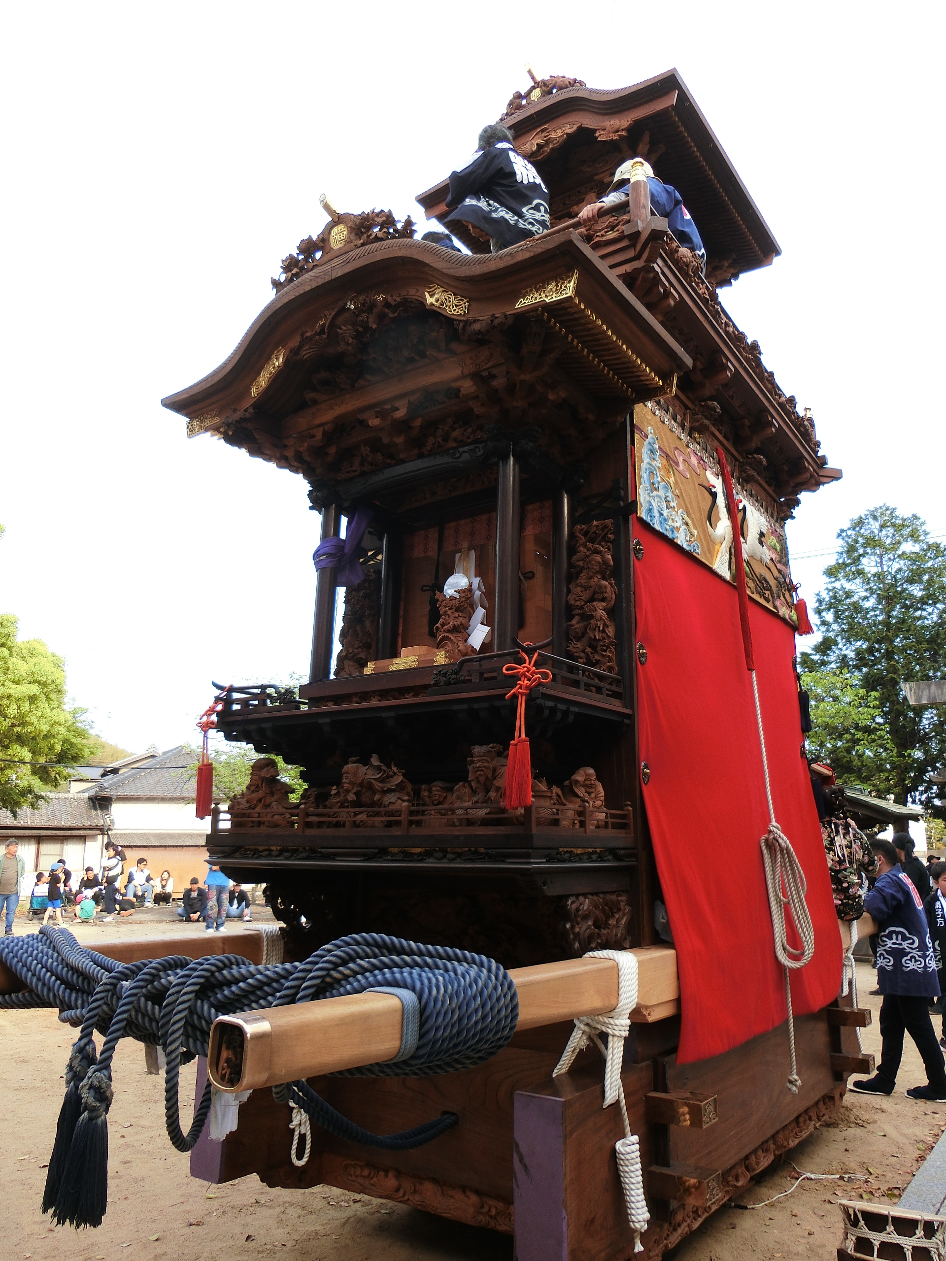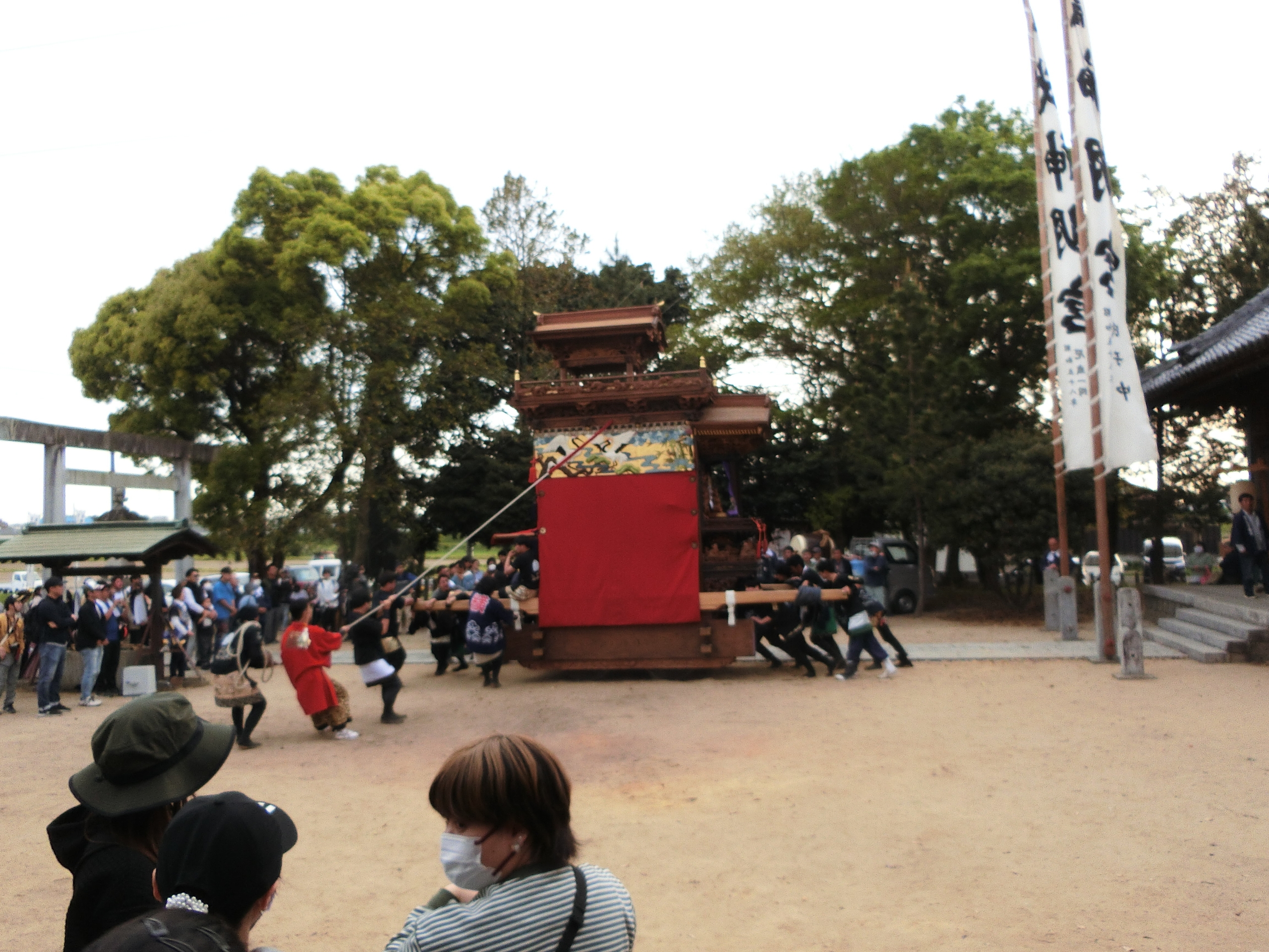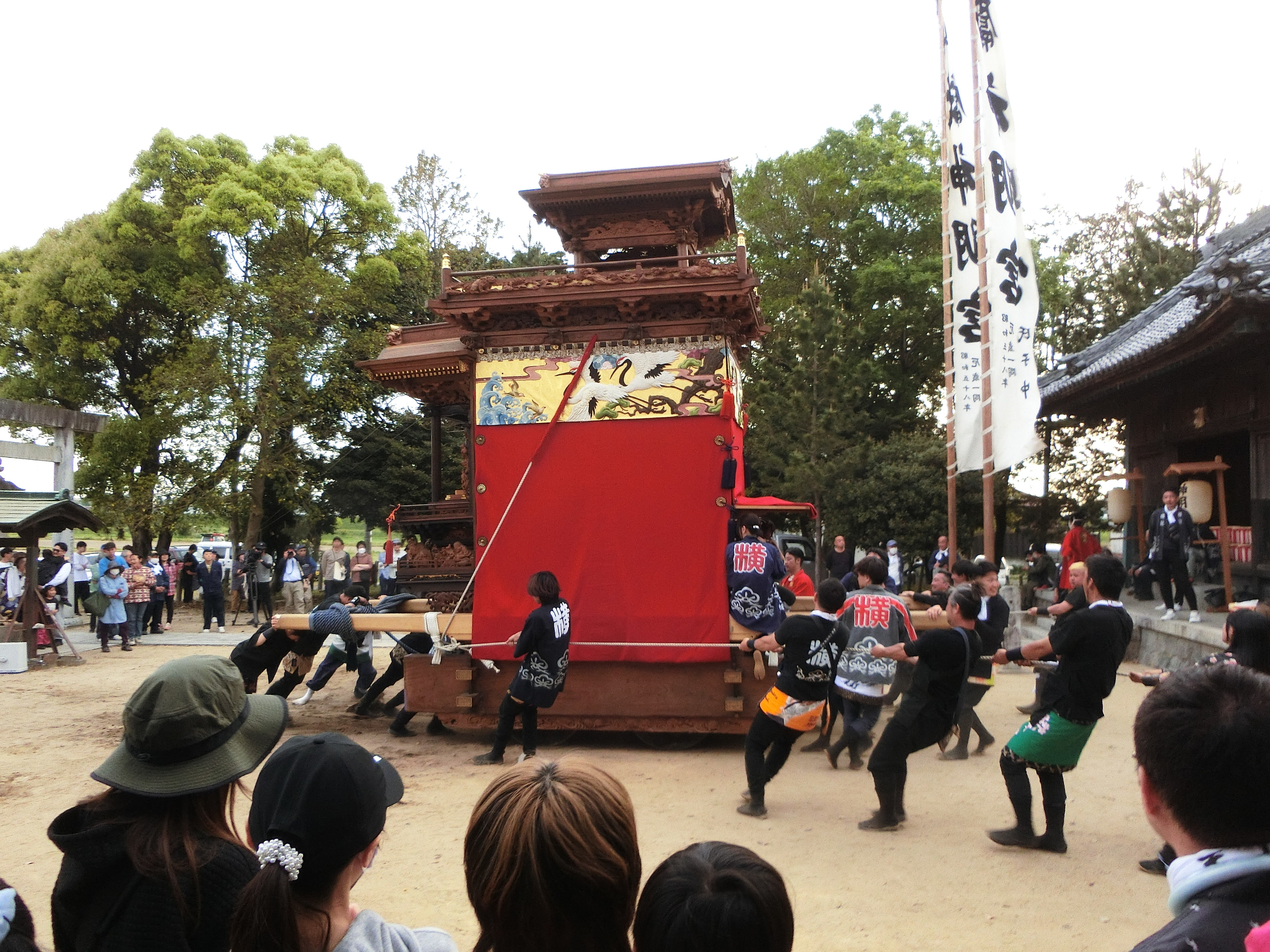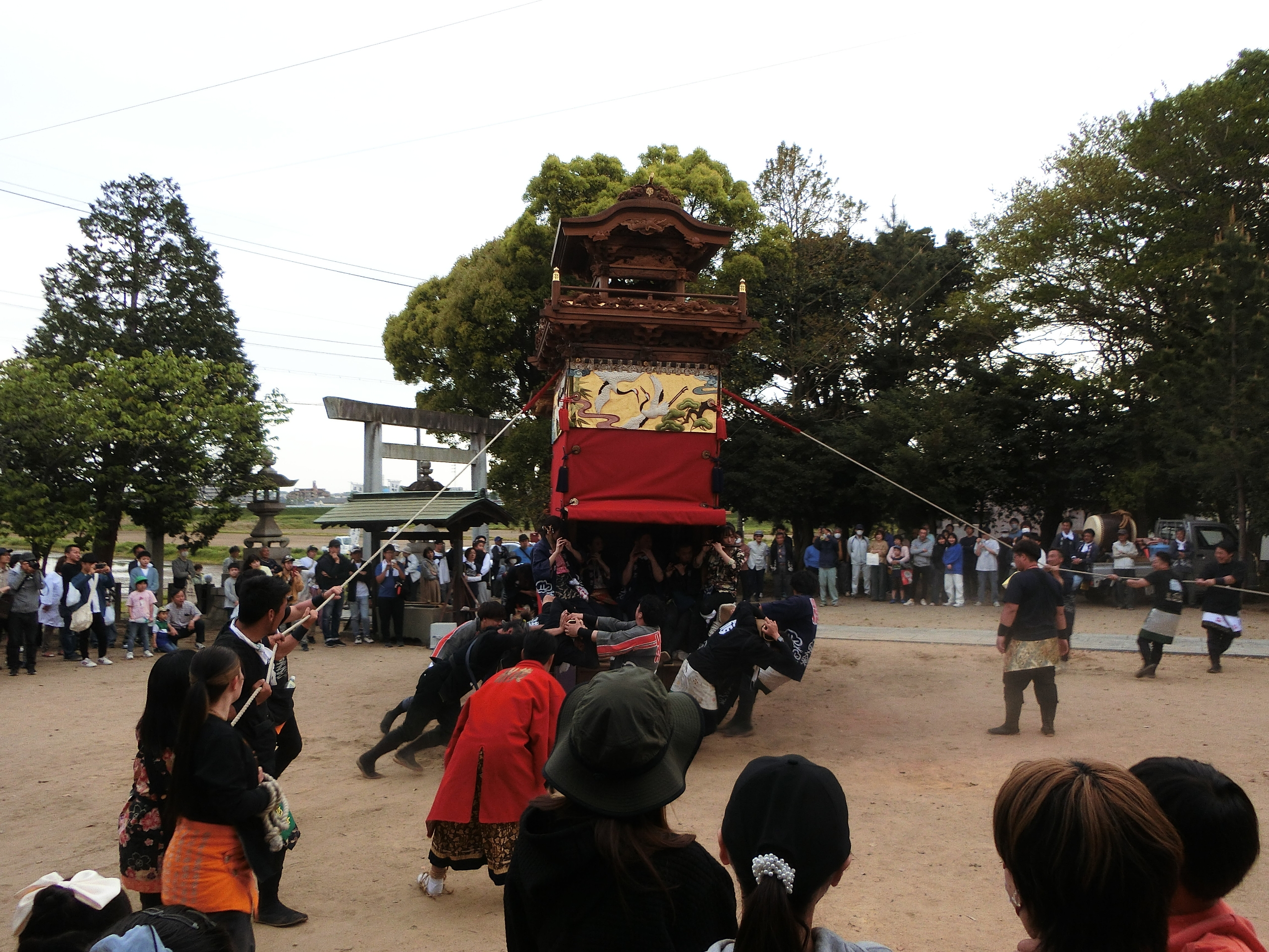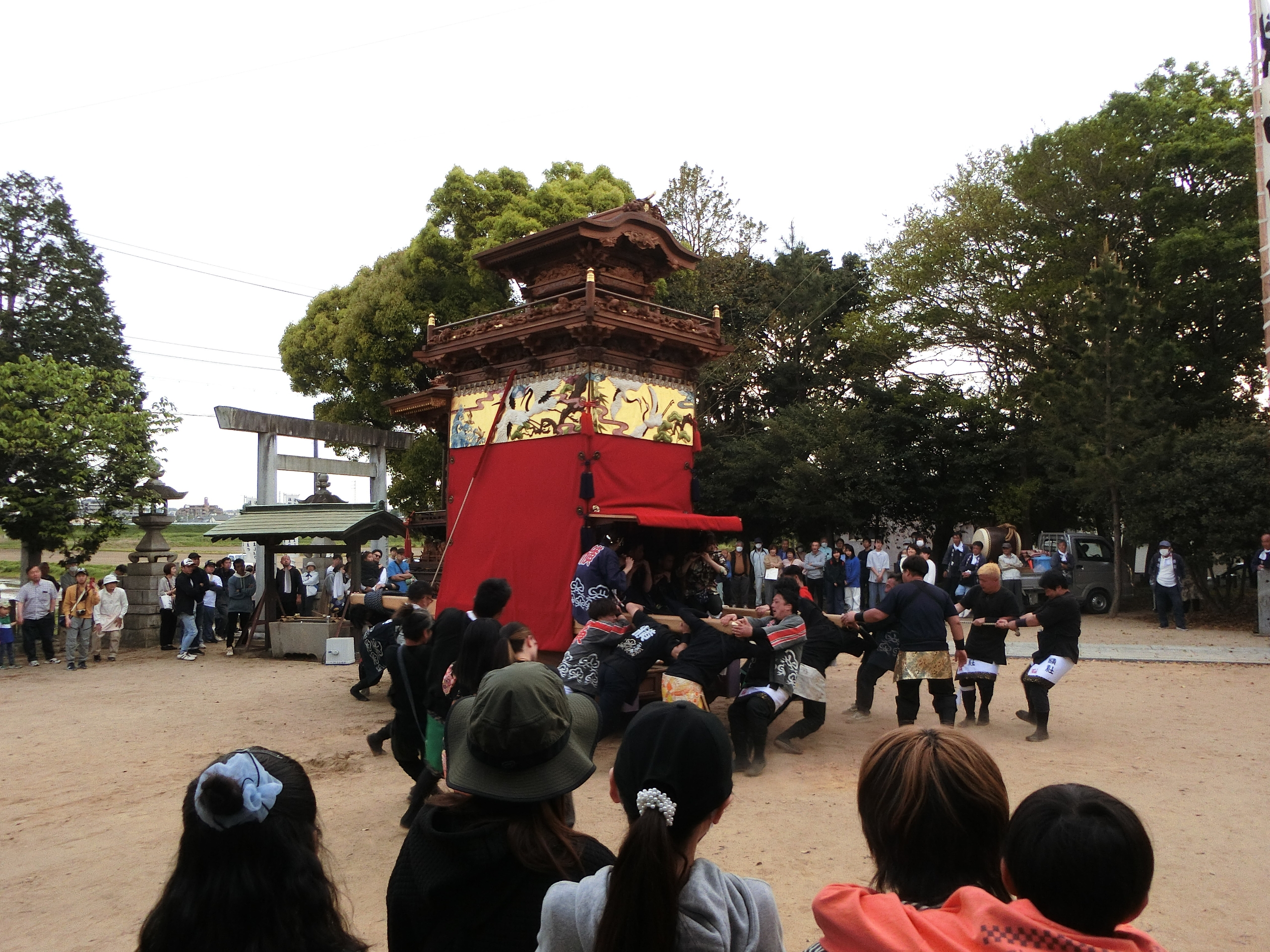 奉納が終わると、拝殿横へと山車を動かします。