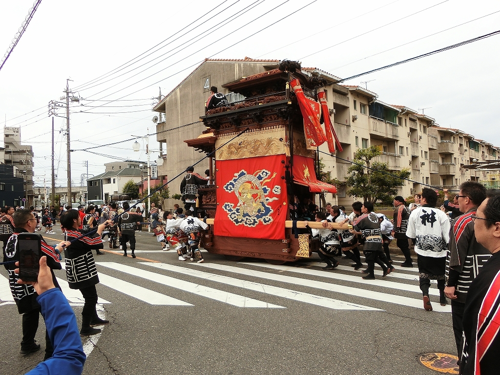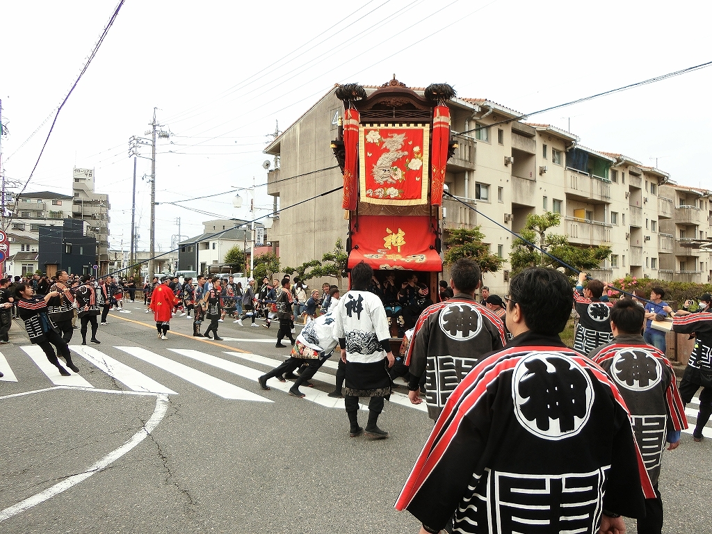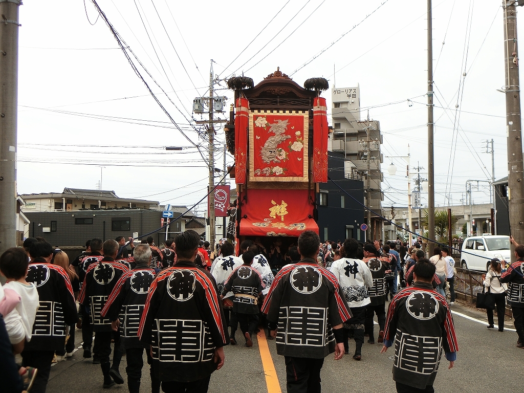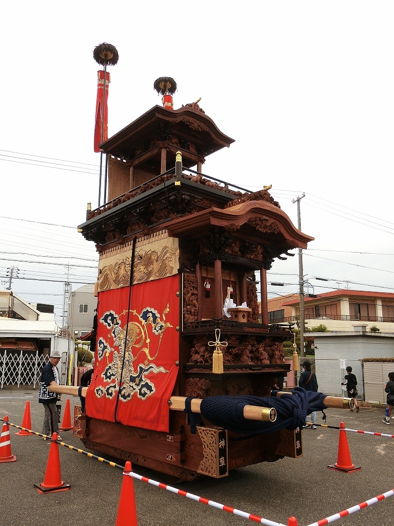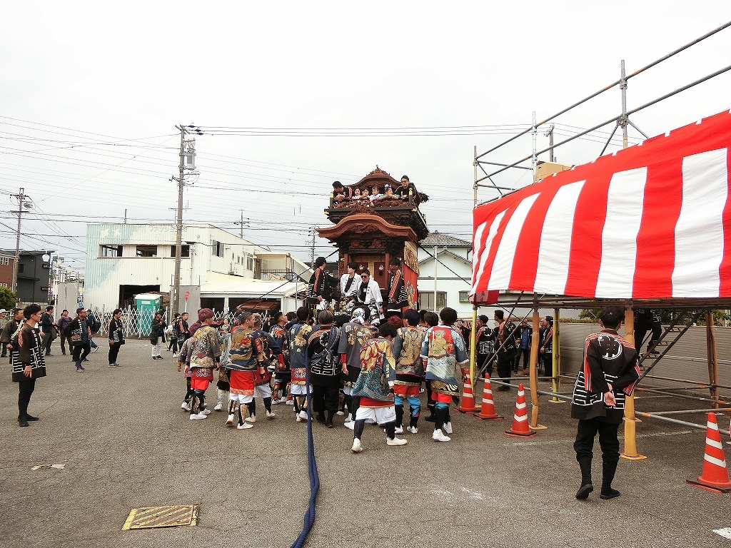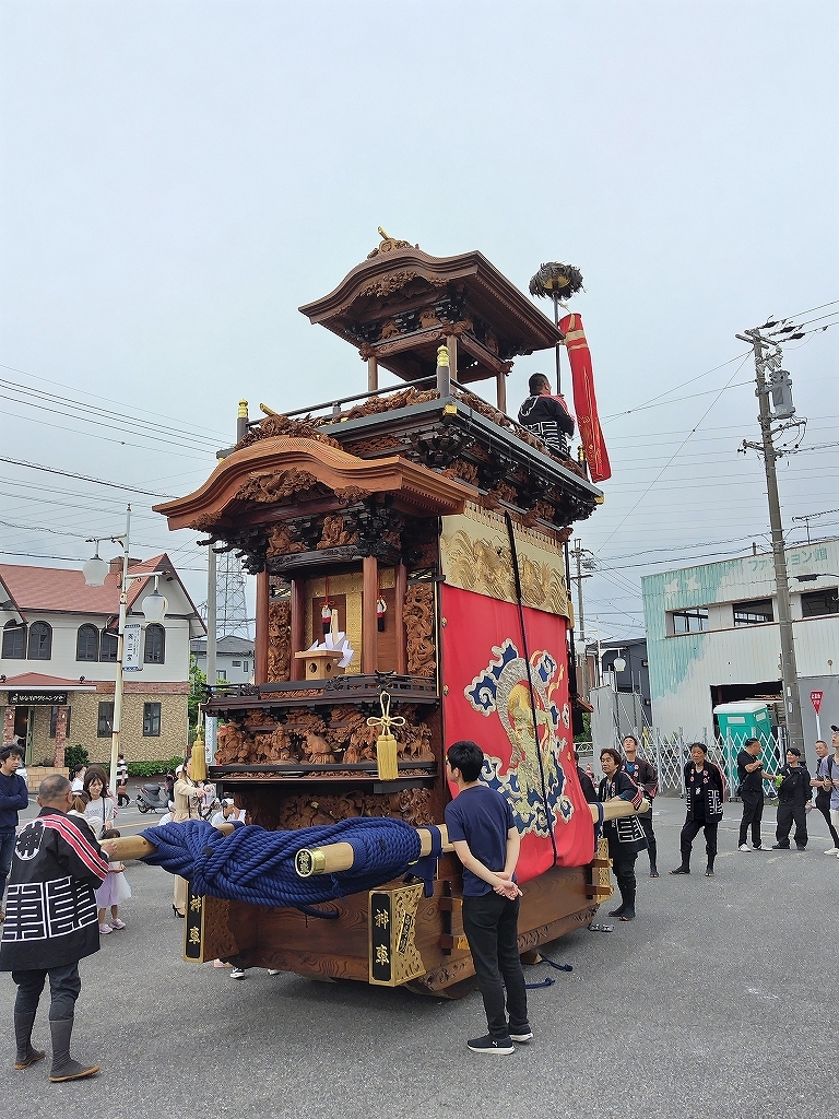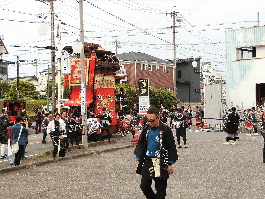 途中で雨が降りだしたため、傘を差して大太鼓を守りました。