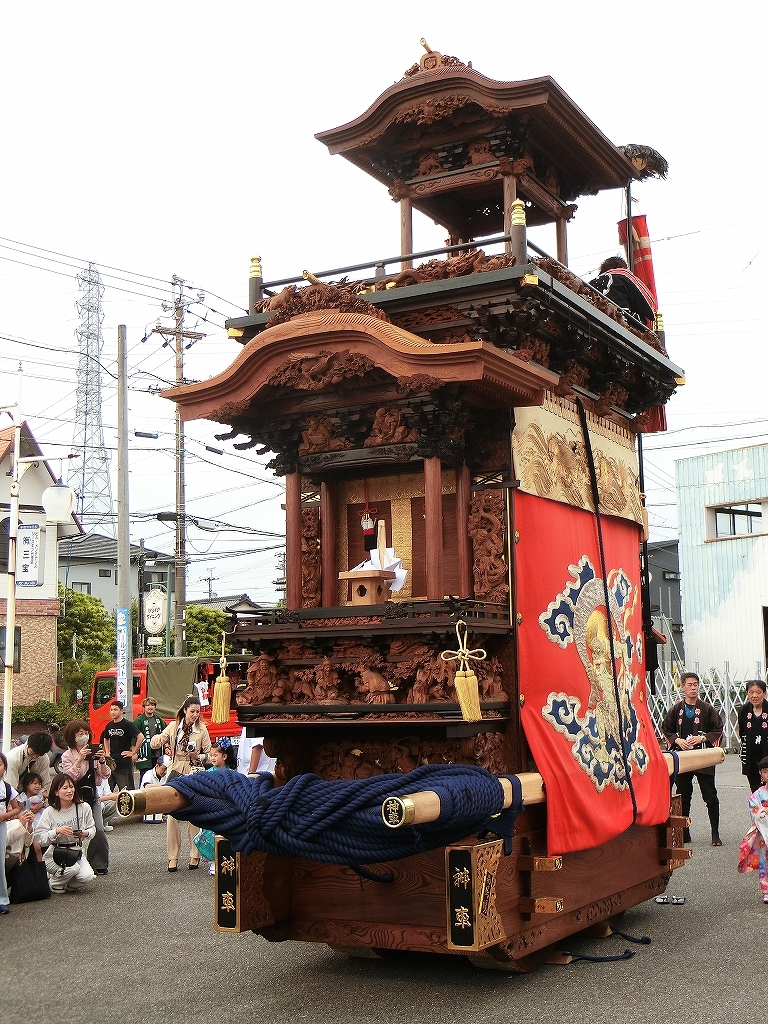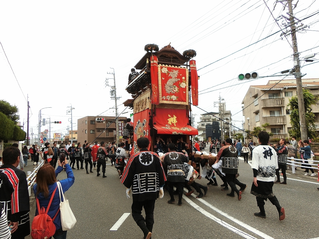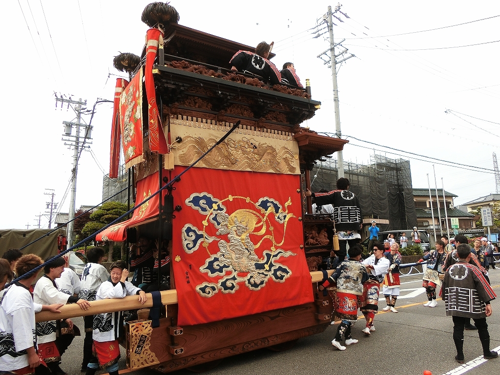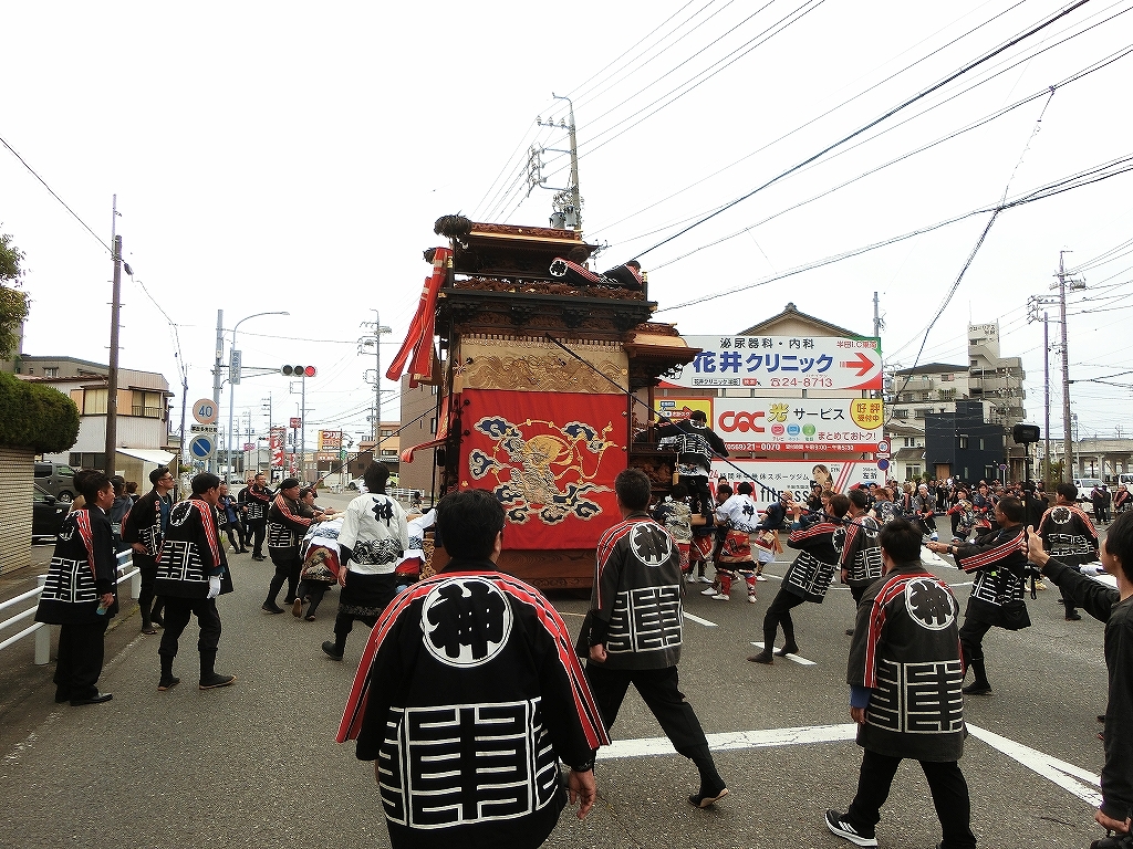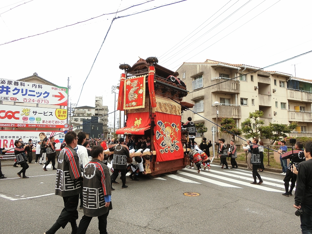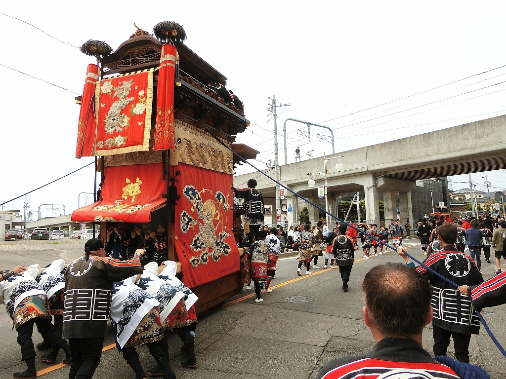 途中で雨が降りだしたため、傘を差して大太鼓を守りました。