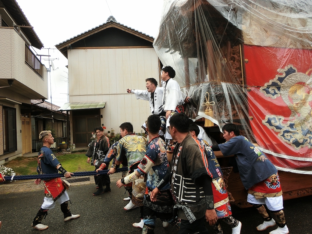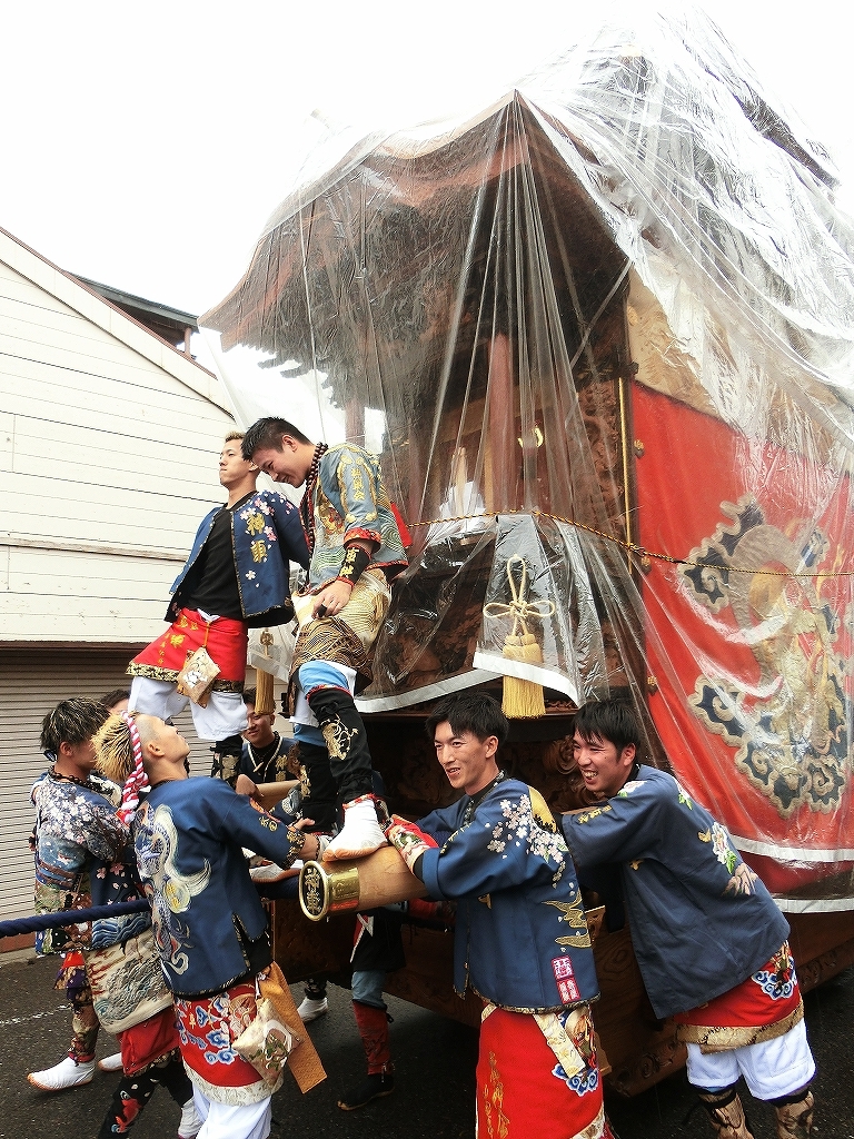 若衆は見に来ていた他組の若衆と酒を飲んでいました。