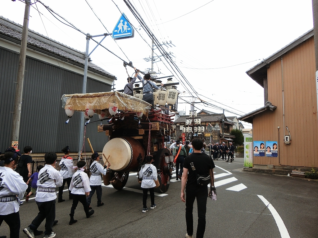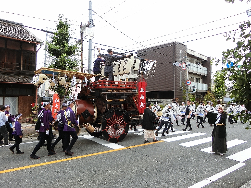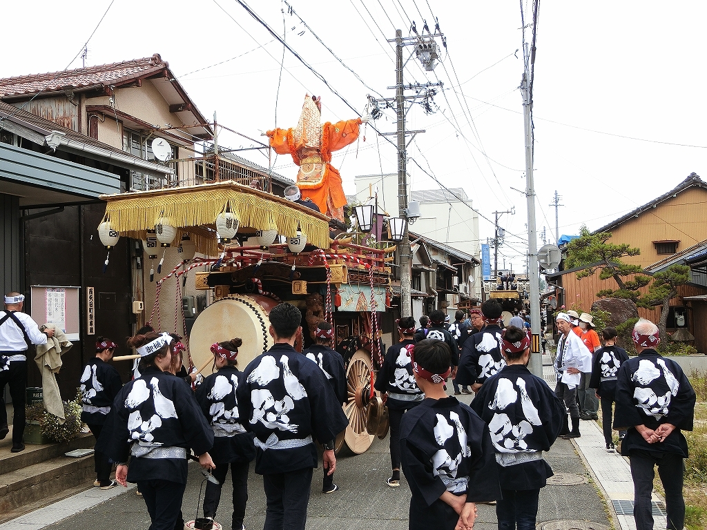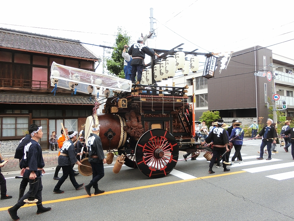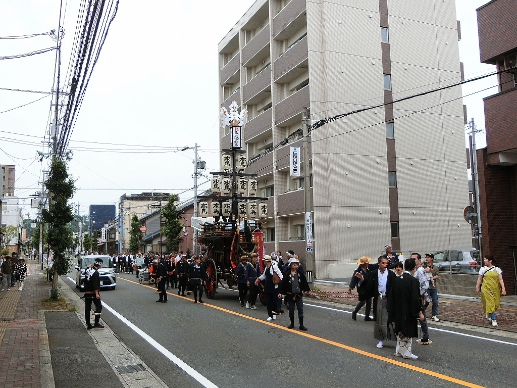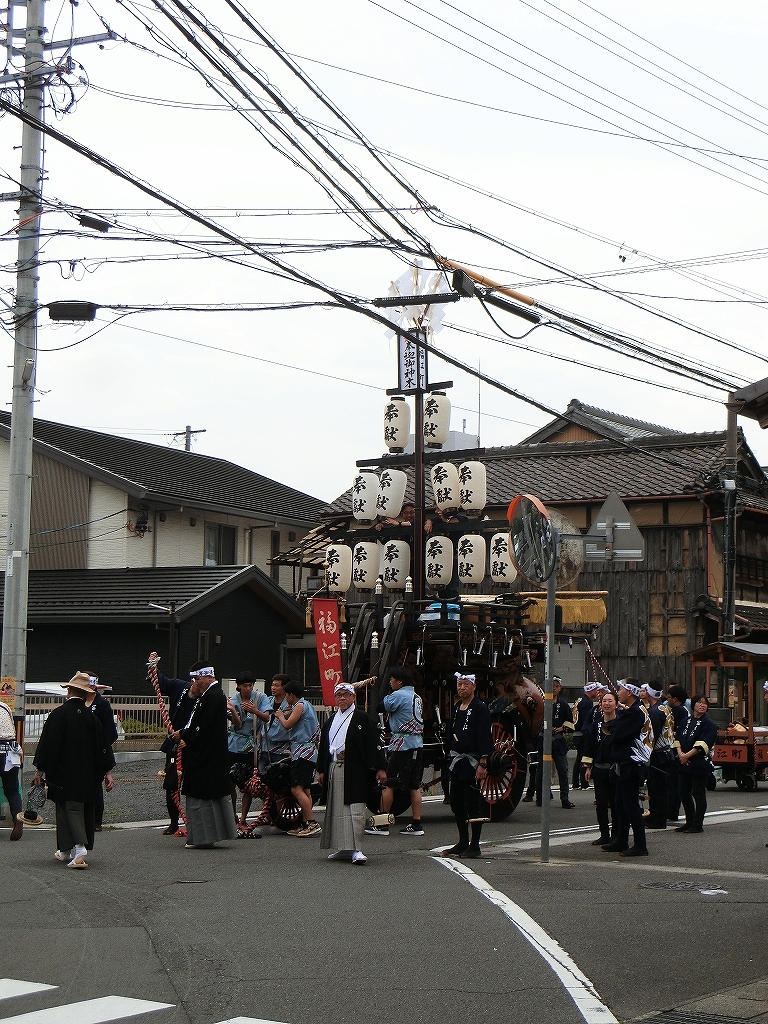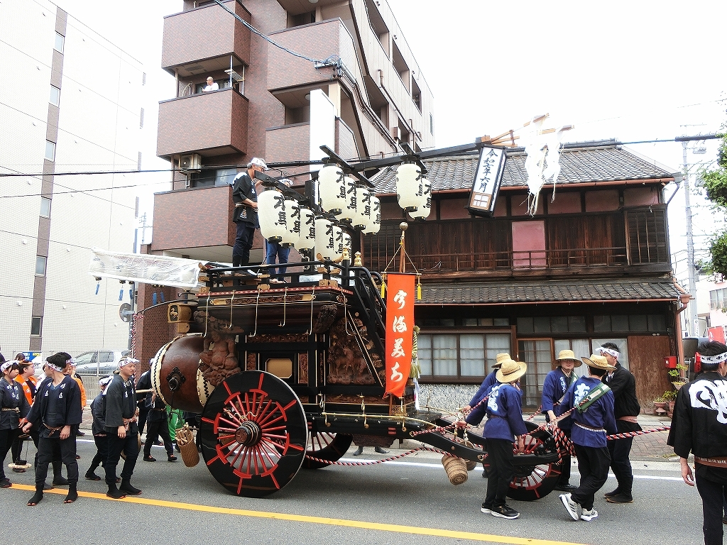 第十組祭車通過後、福江町祭車が曳き出しました。