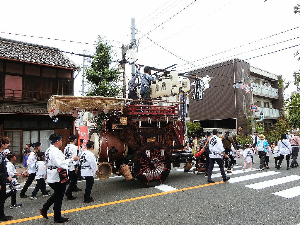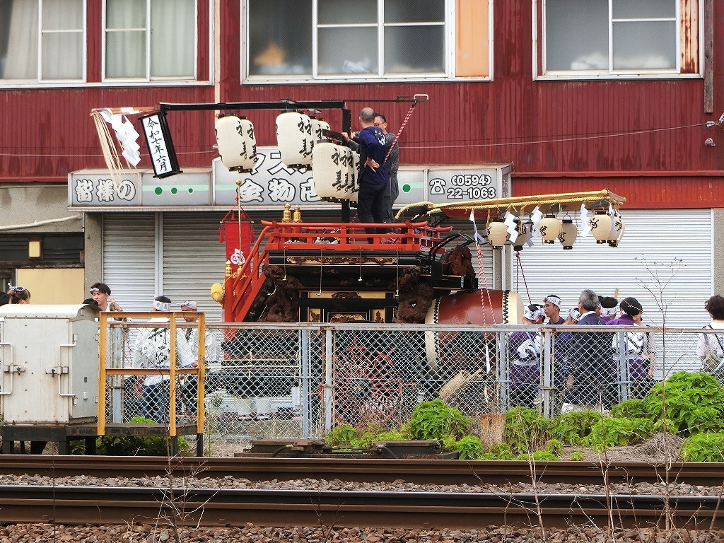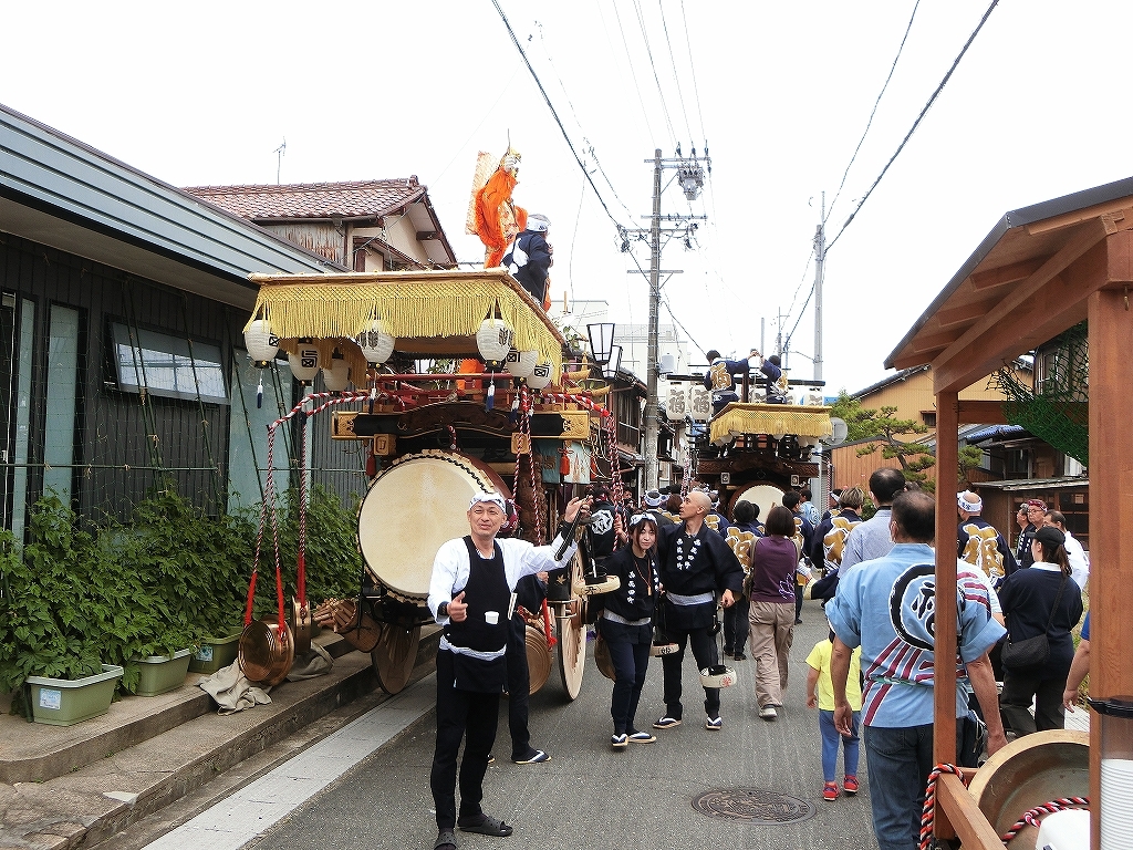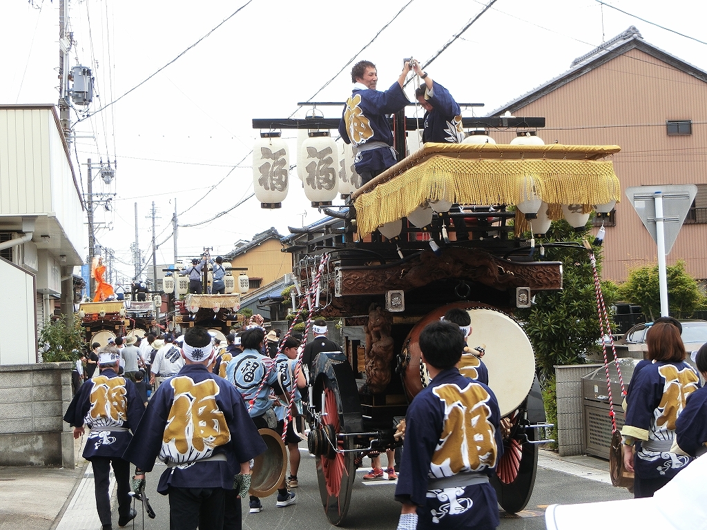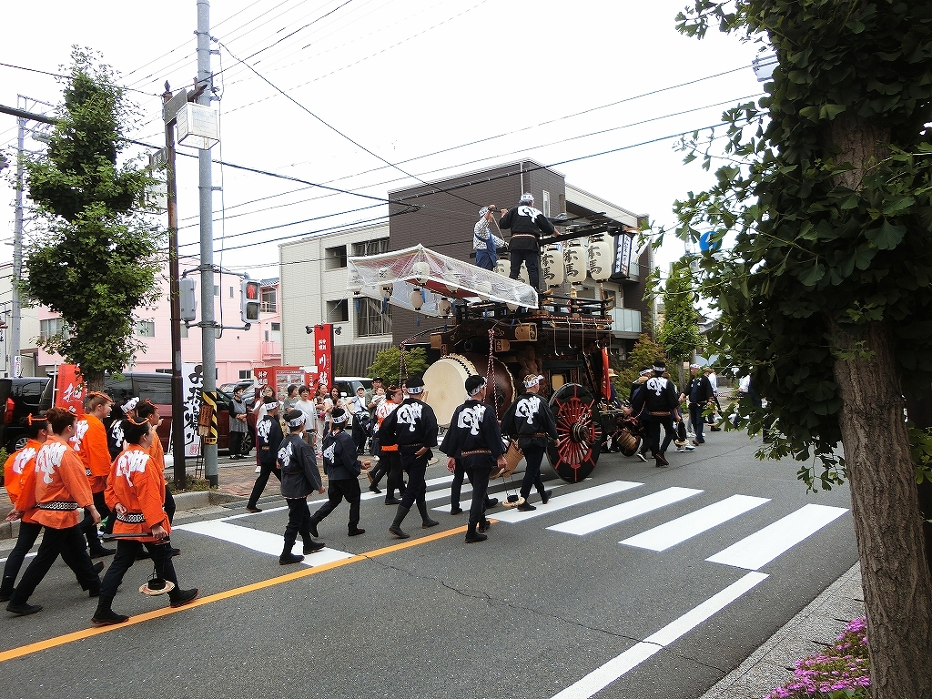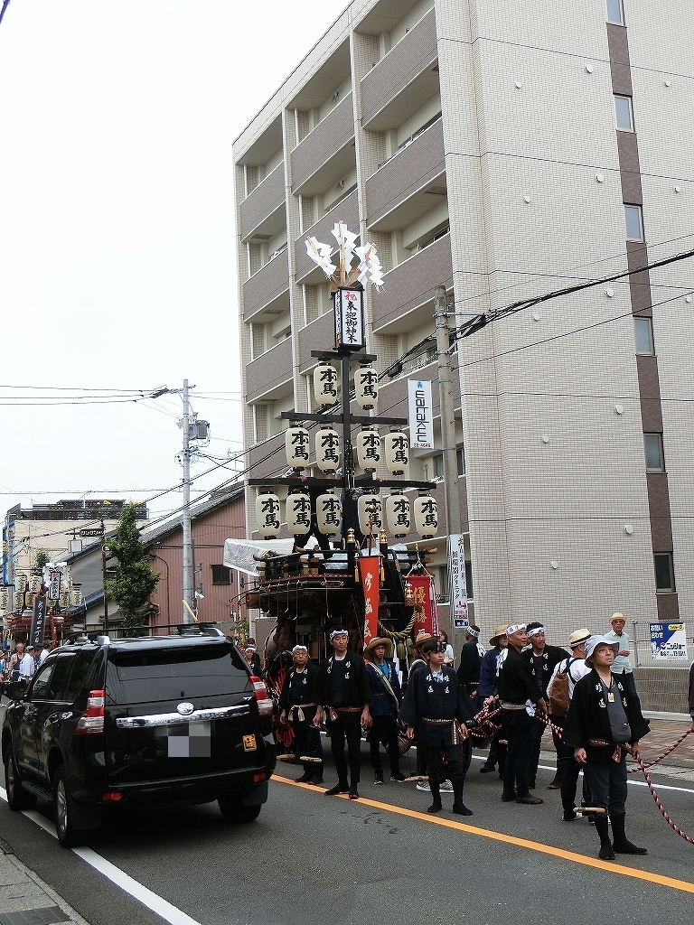 第十組祭車通過後、福江町祭車が曳き出しました。