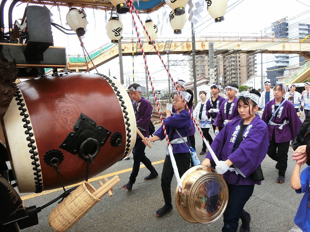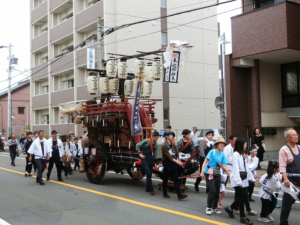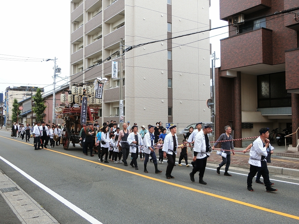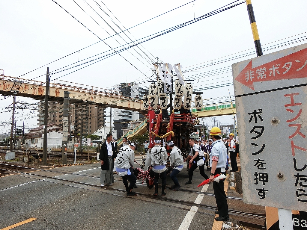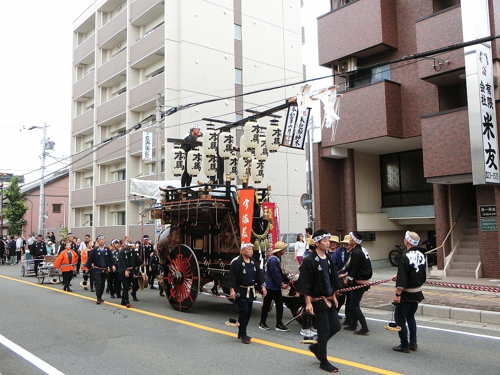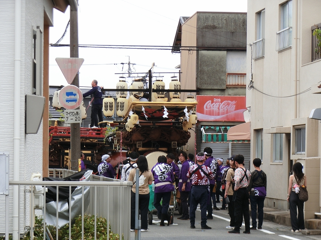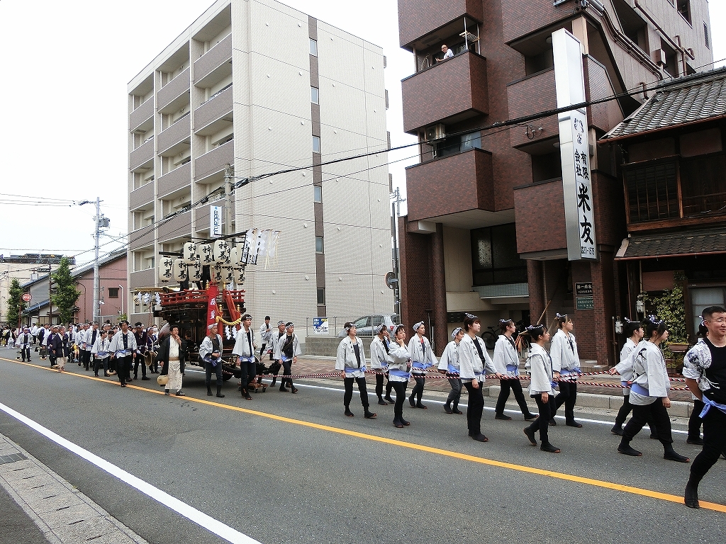 第十組祭車通過後、福江町祭車が曳き出しました。