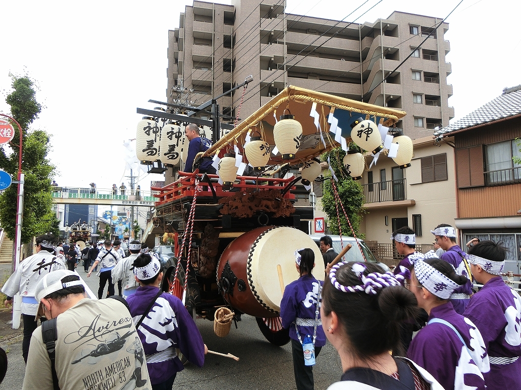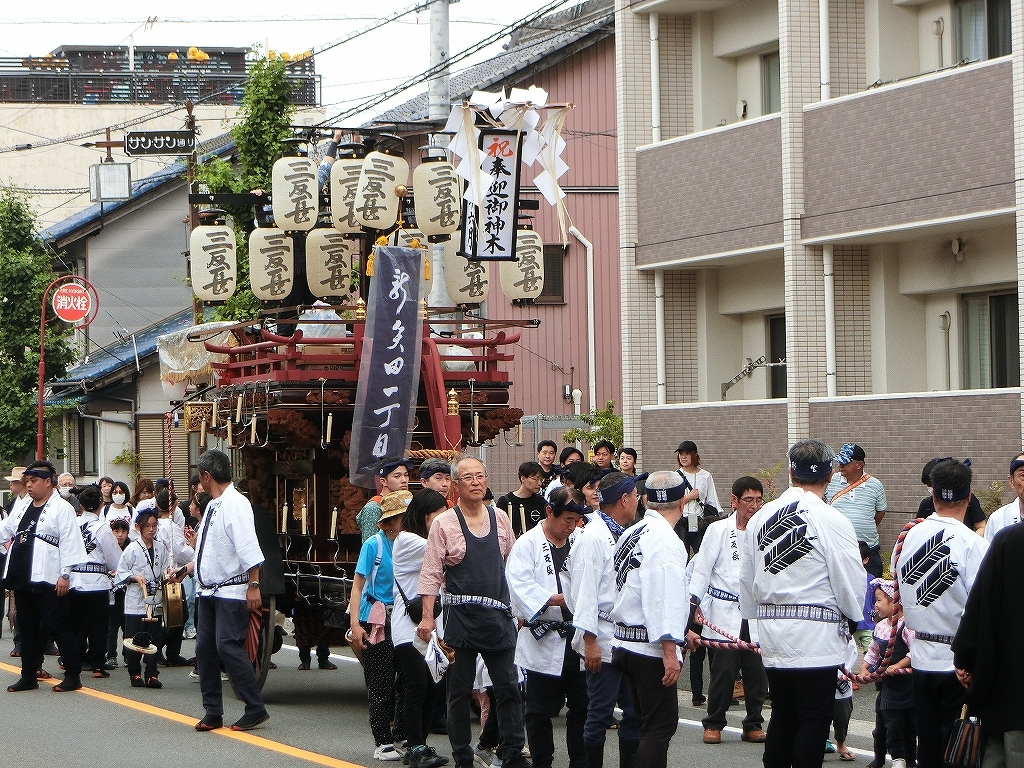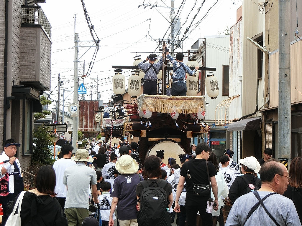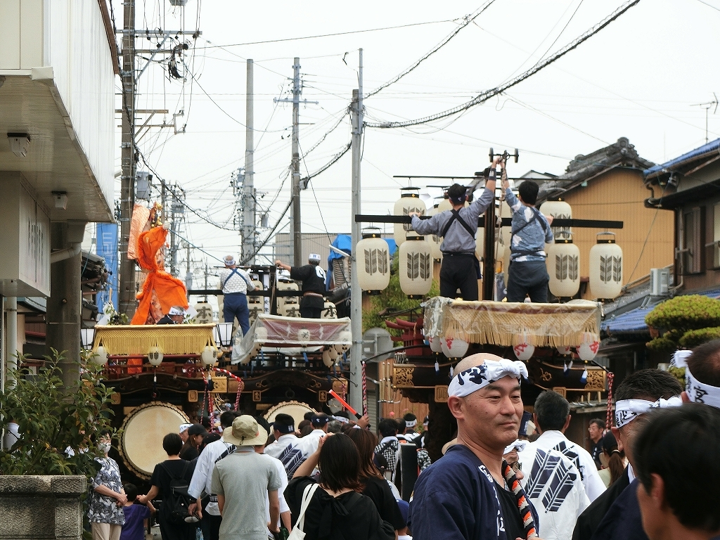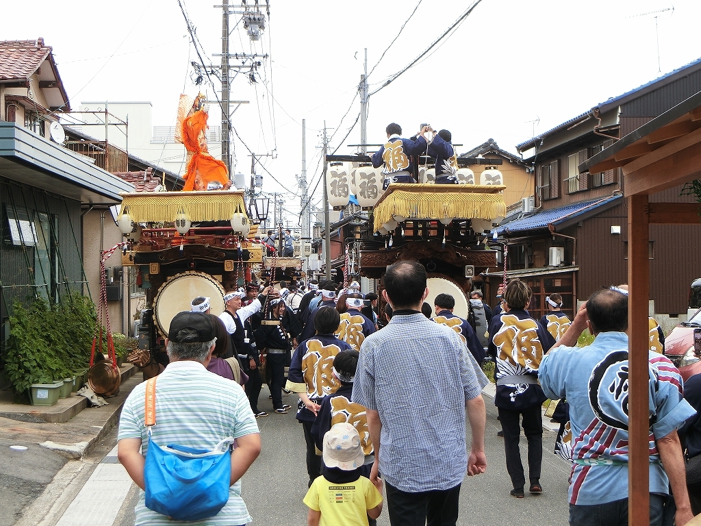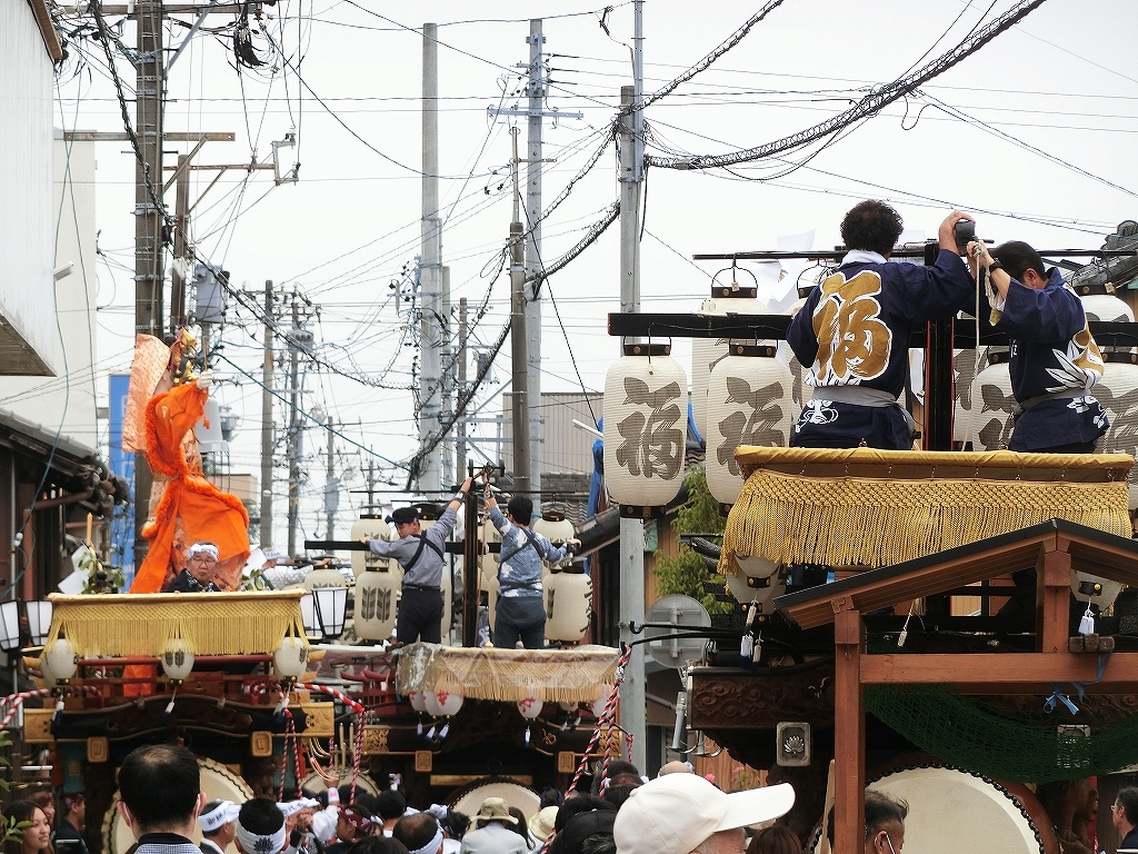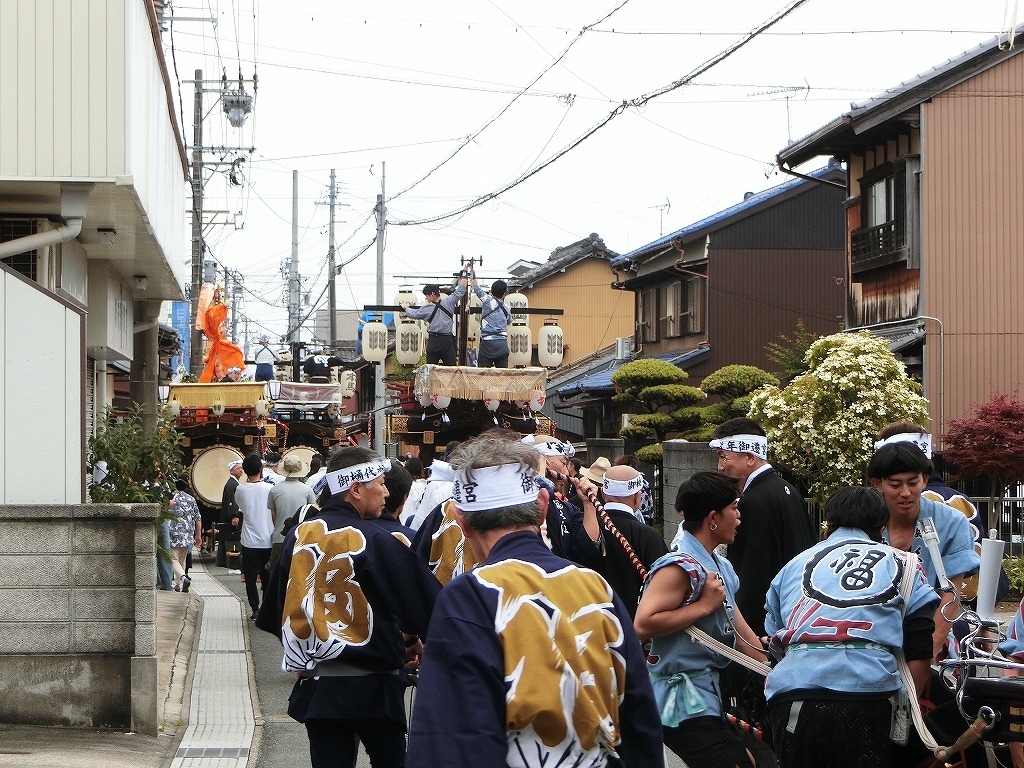 第十組祭車が西矢田町祭車を追い越します。