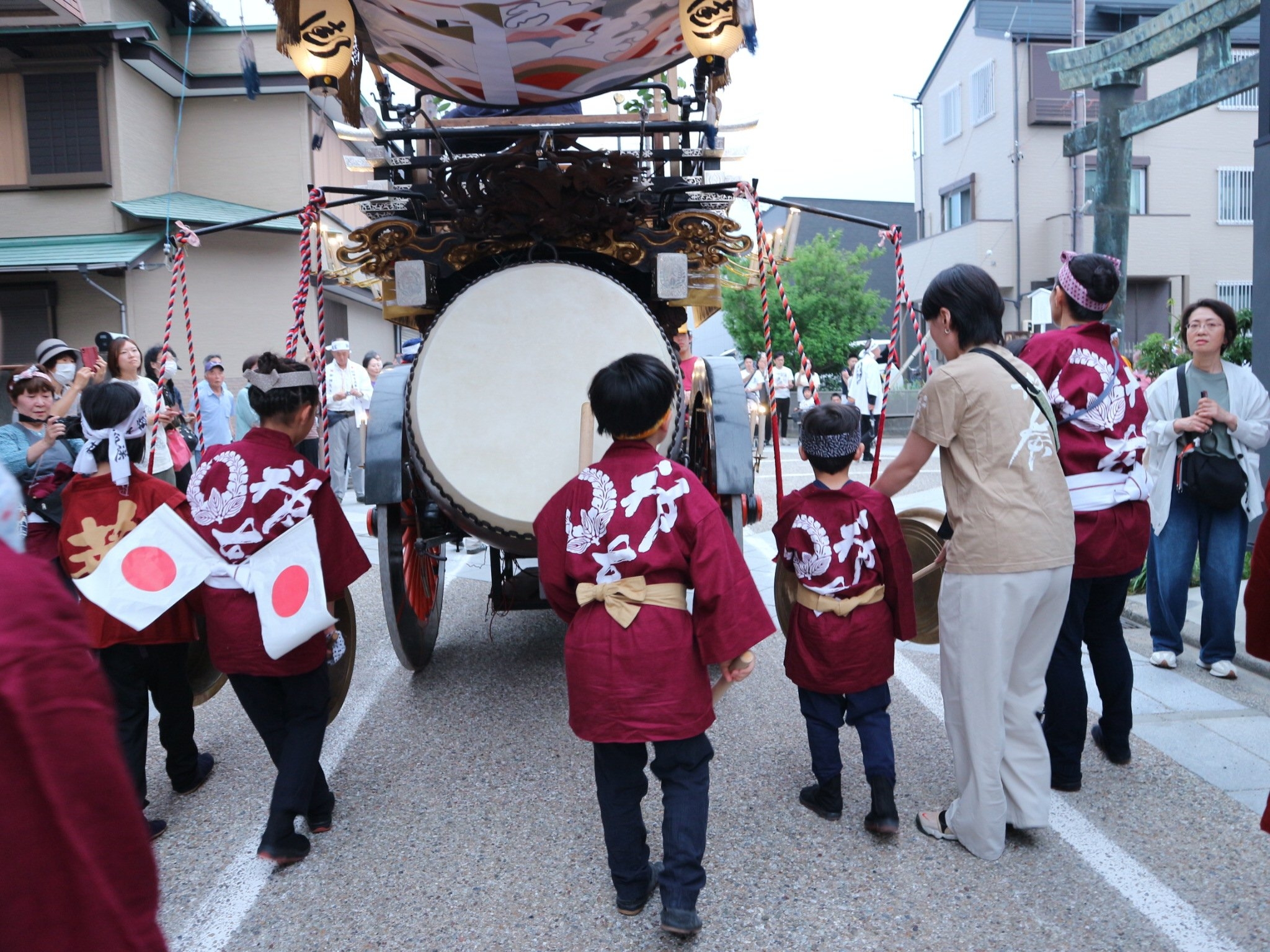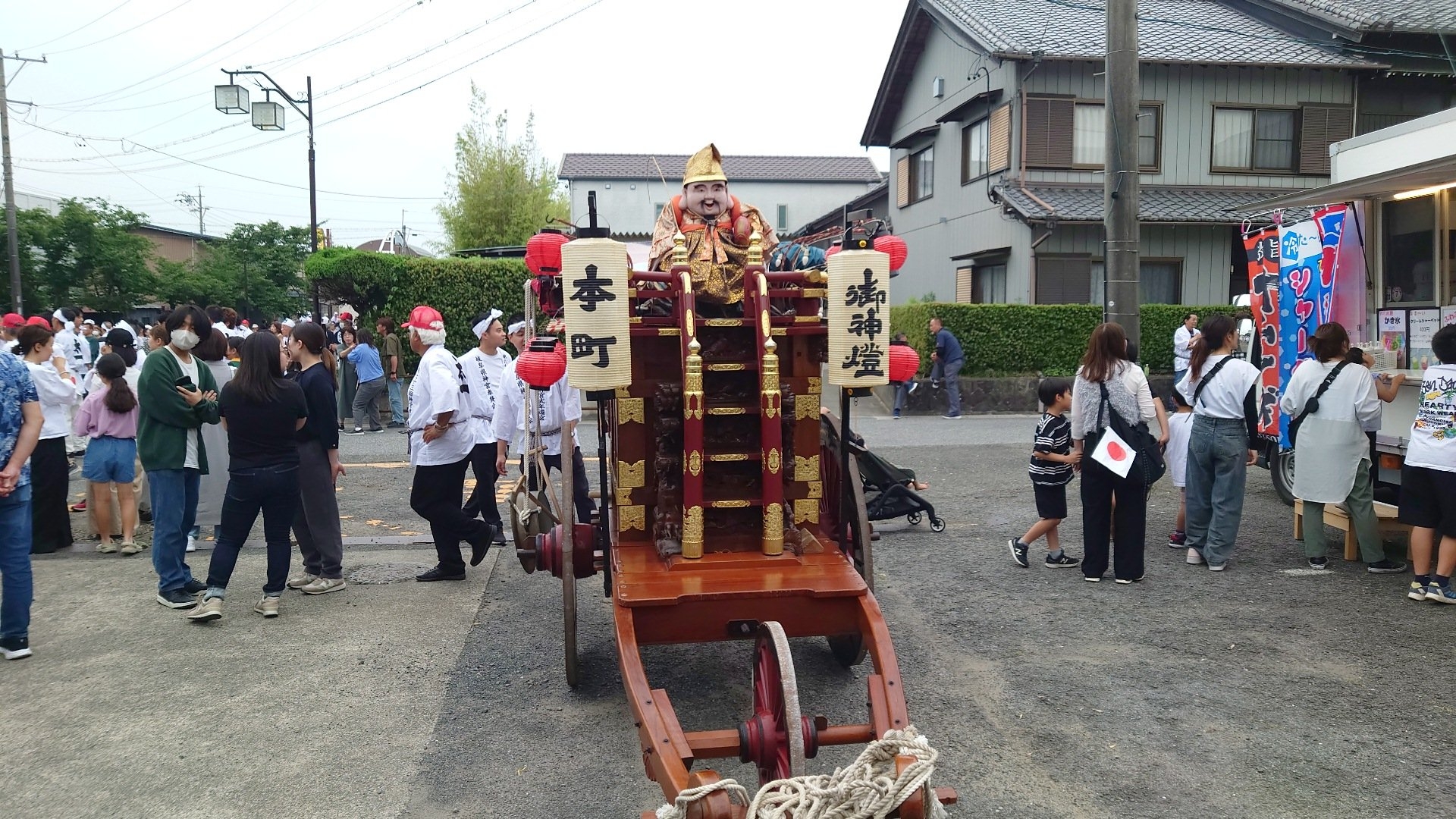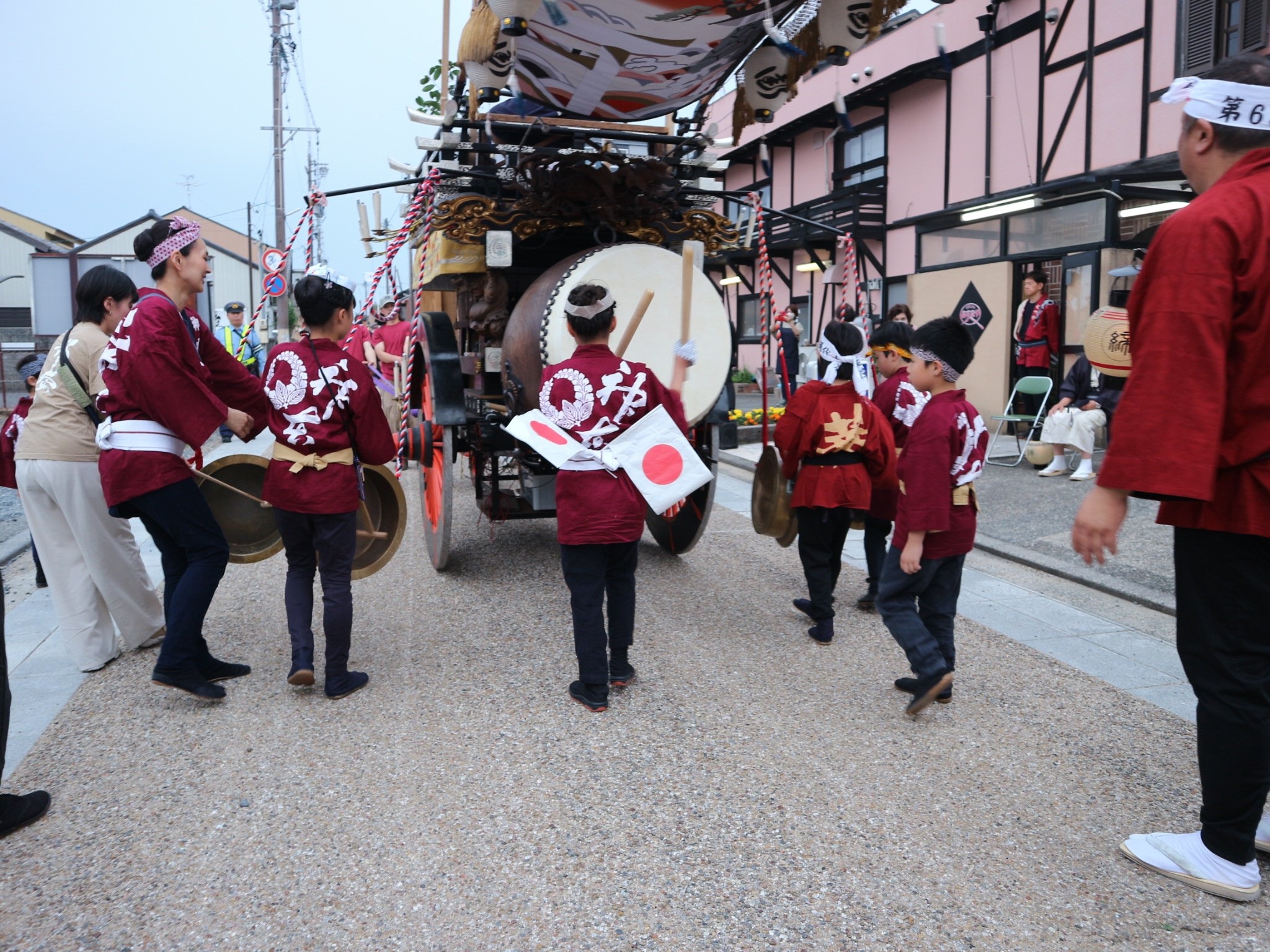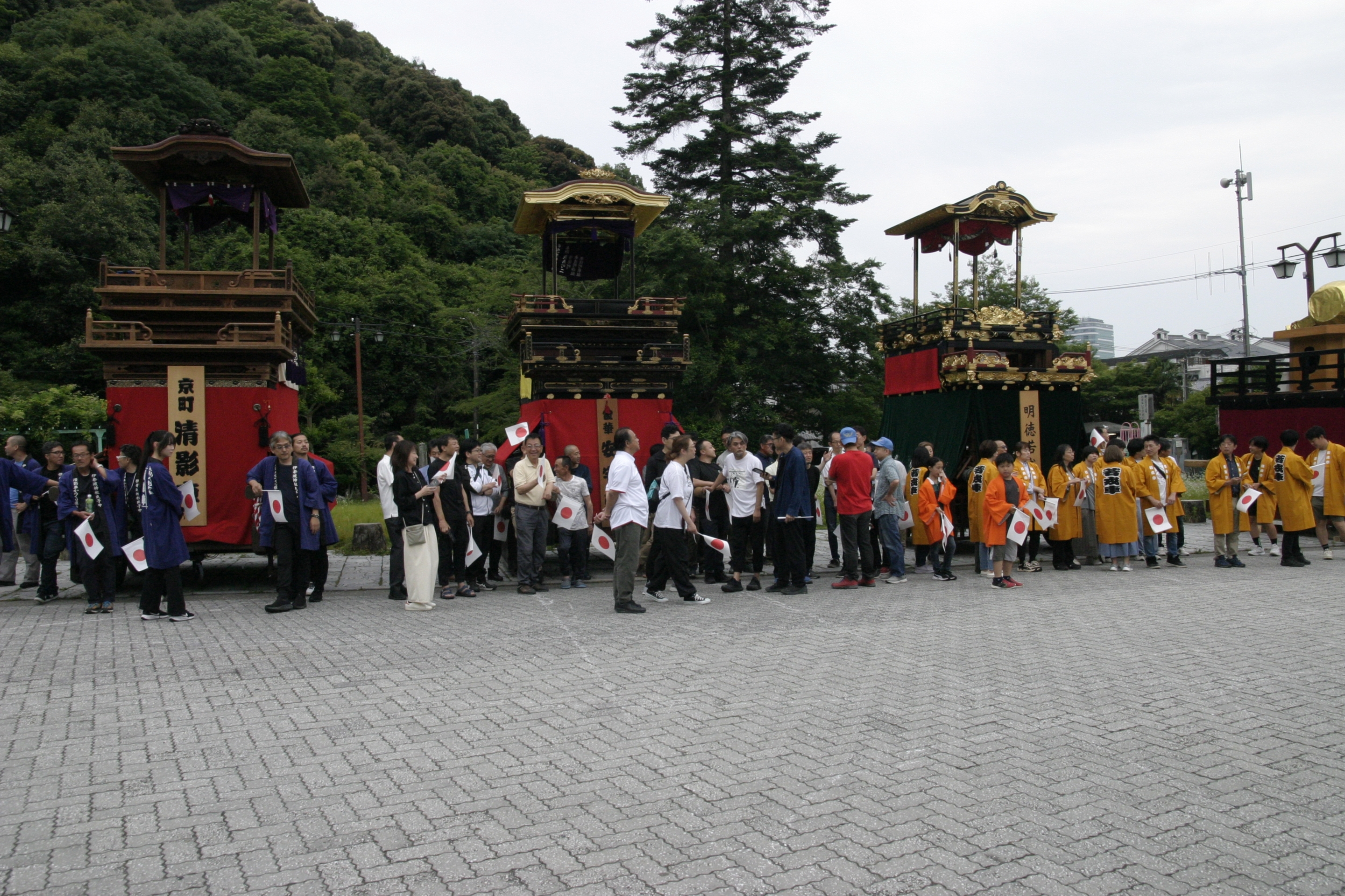清影車、安宅車、若戎車のからくり山車と踊り山車が奉迎送に参加しました。