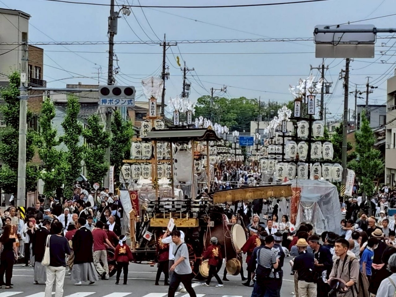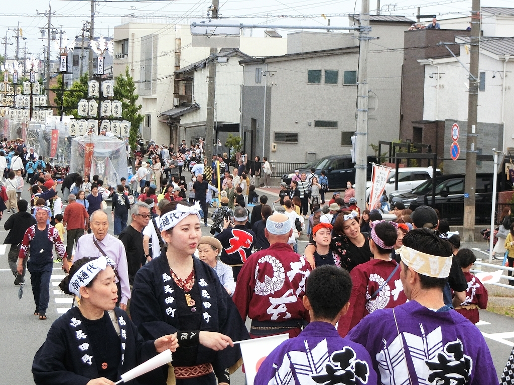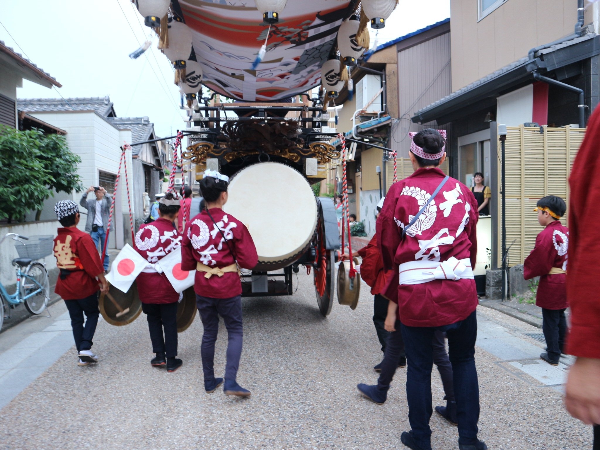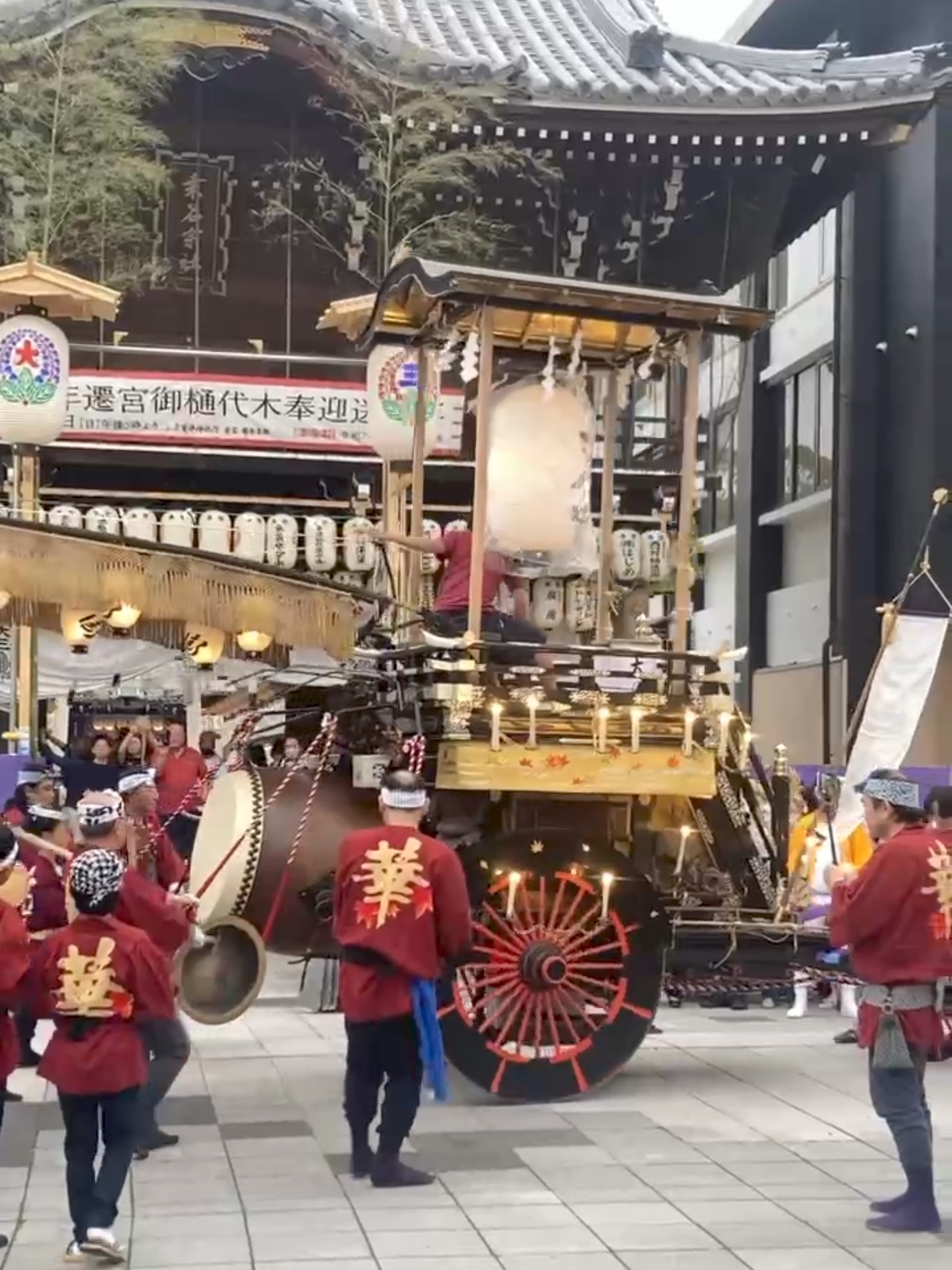 清影車、安宅車、若戎車のからくり山車と踊り山車が奉迎送に参加しました。