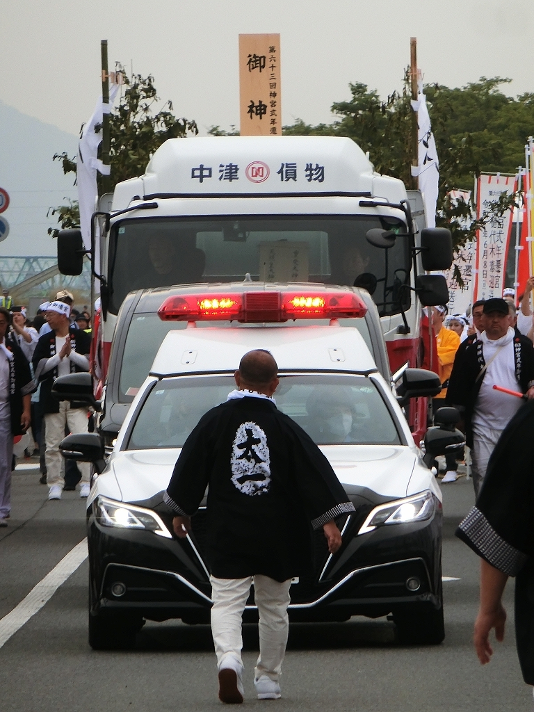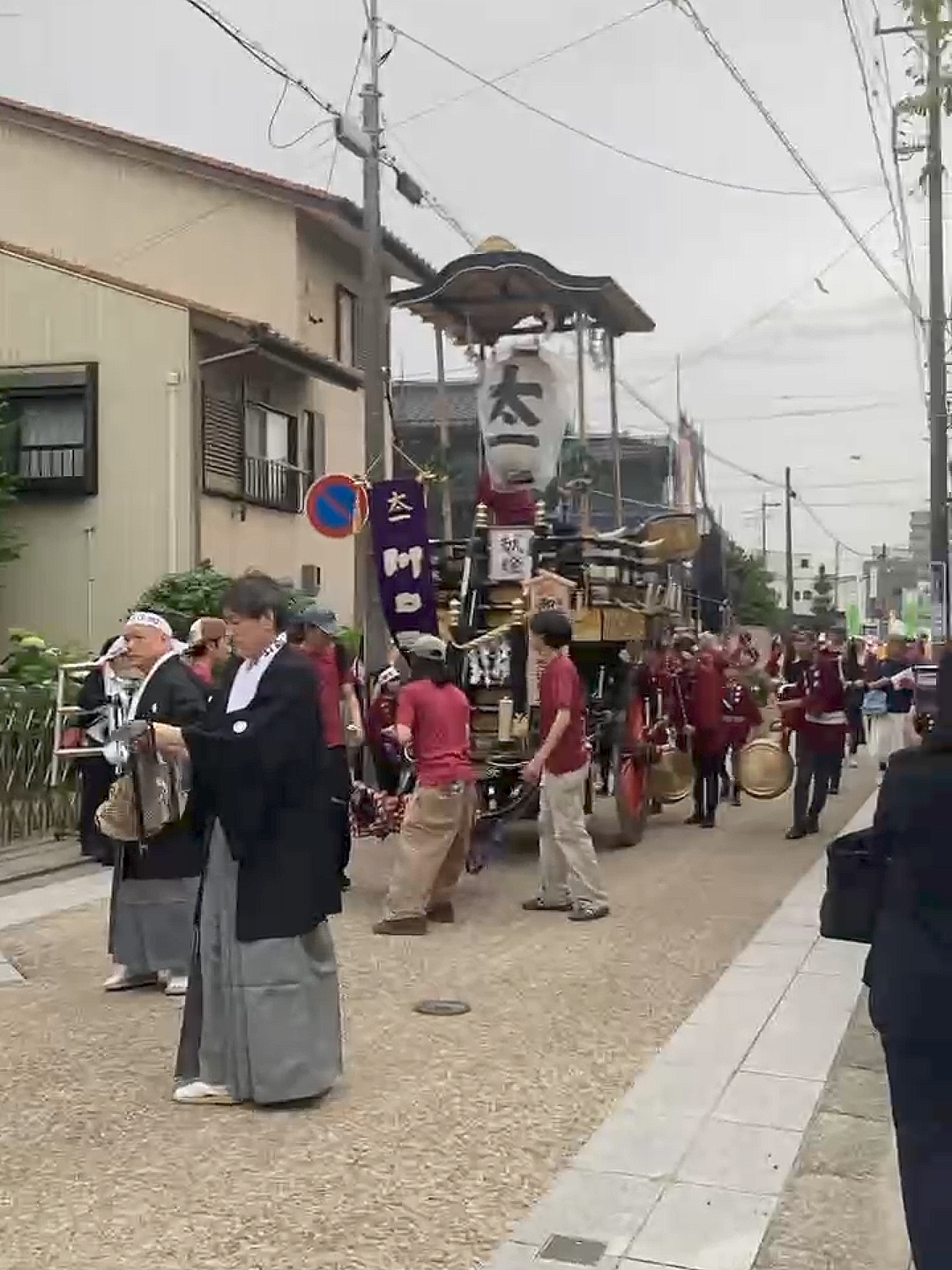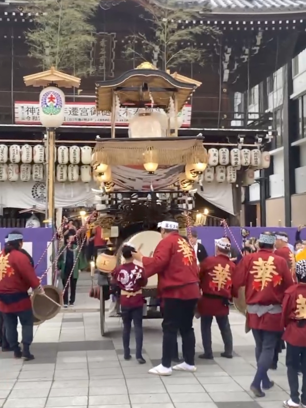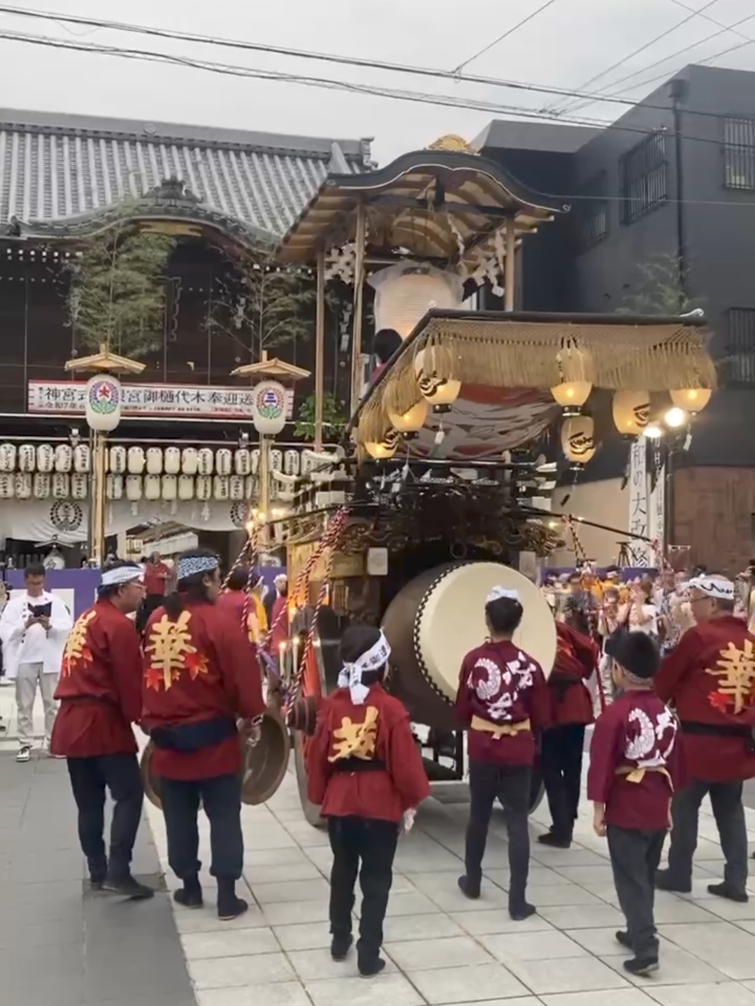 清影車、安宅車、若戎車のからくり山車と踊り山車が奉迎送に参加しました。