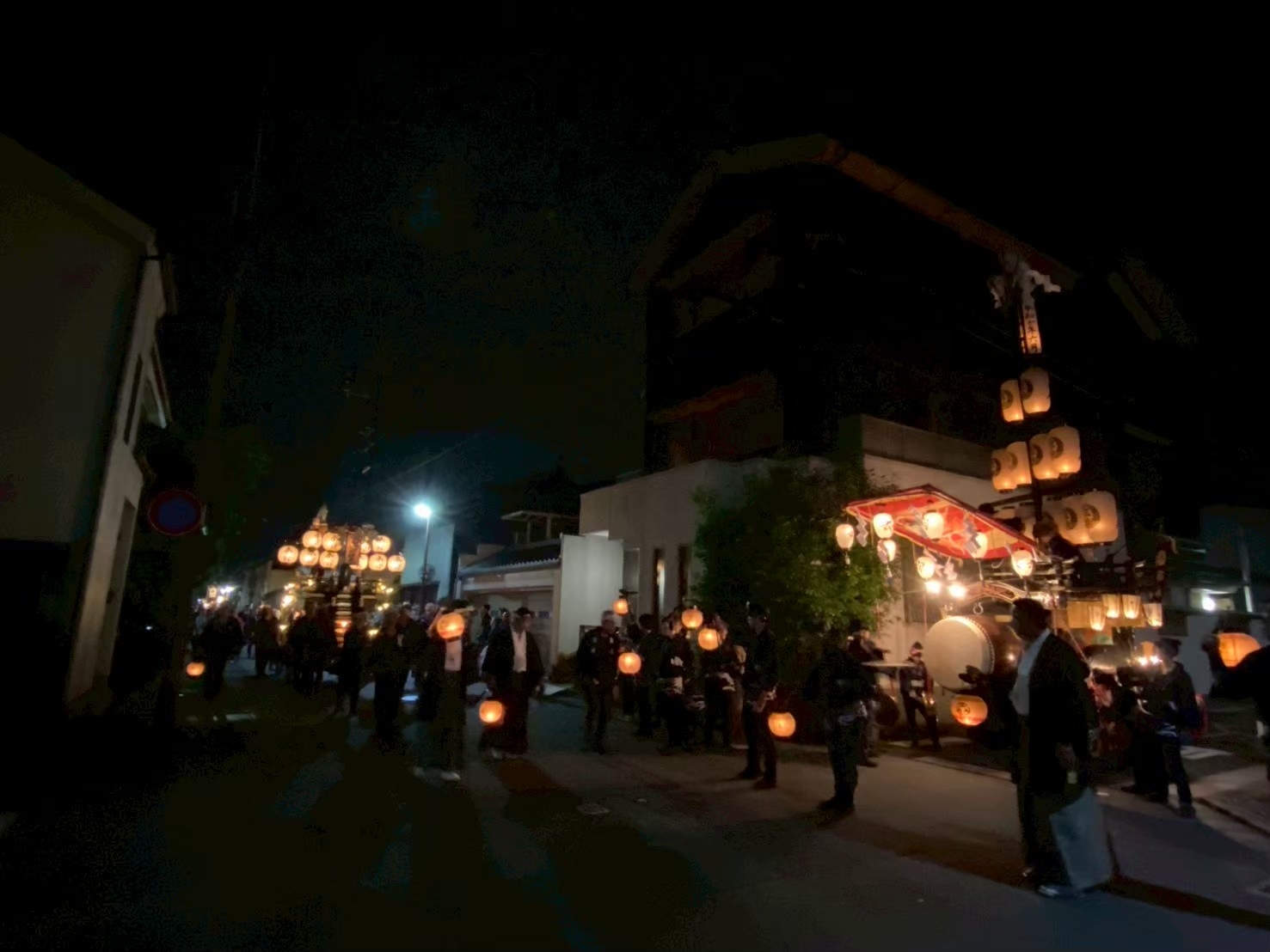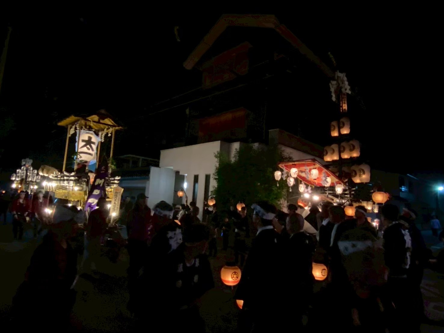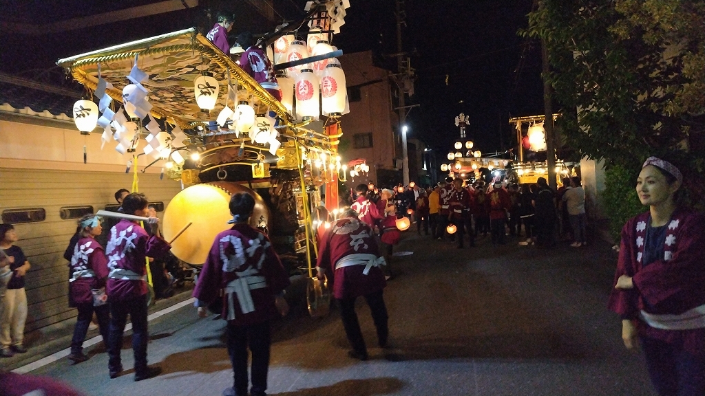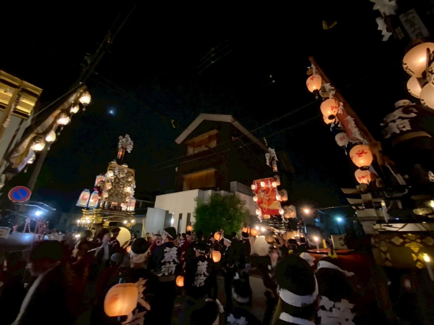 上本町祭車が全祭車に追い抜かれたのは、曳き別れ位置で南向きになるためです。