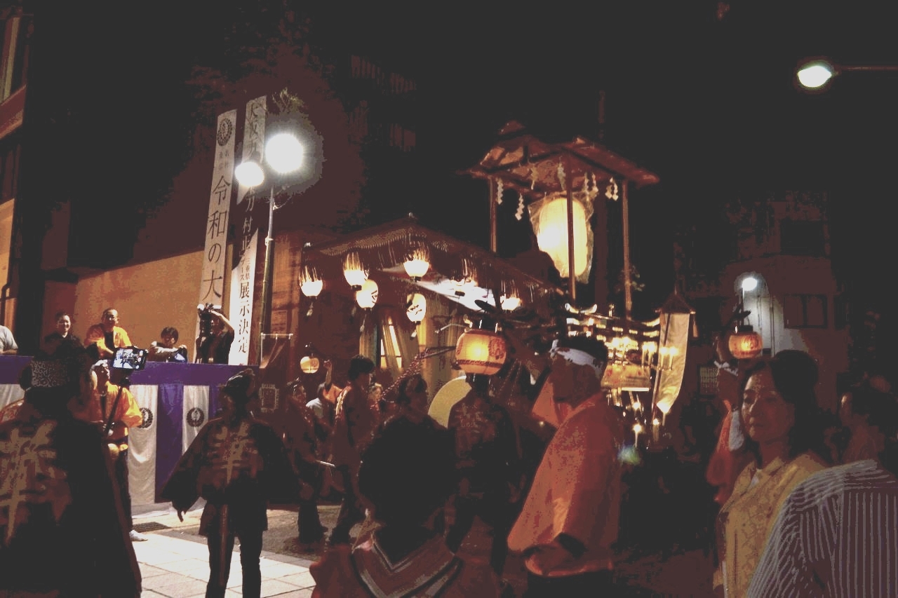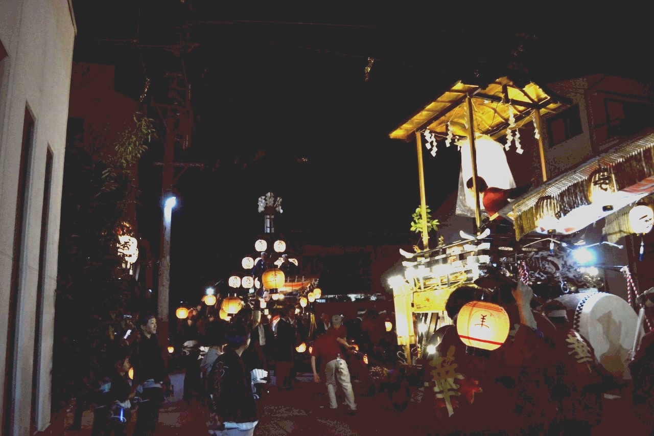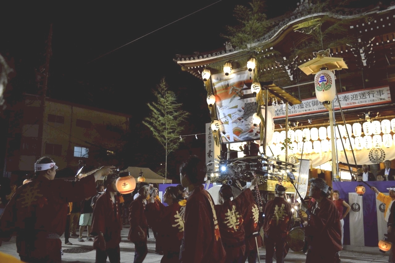 上本町祭車が全祭車に追い抜かれたのは、曳き別れ位置で南向きになるためです。