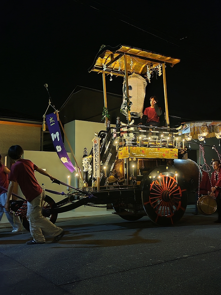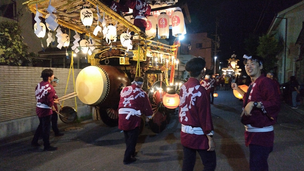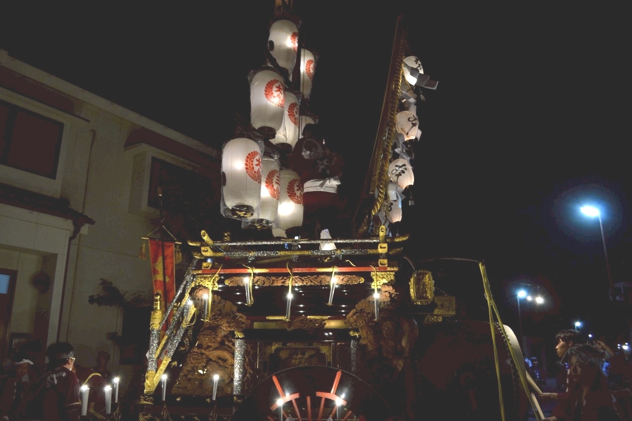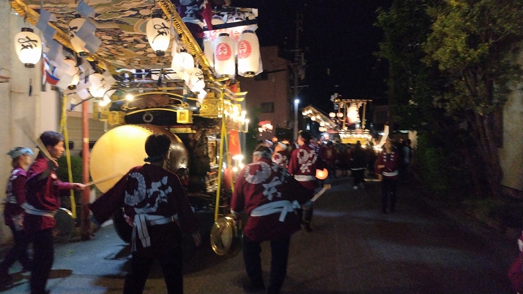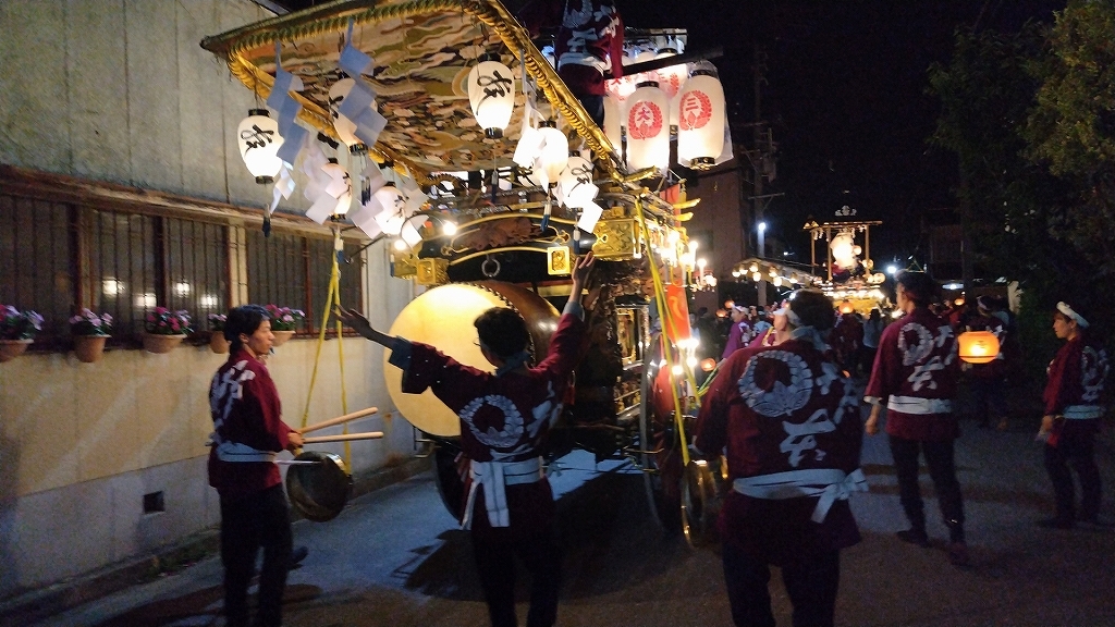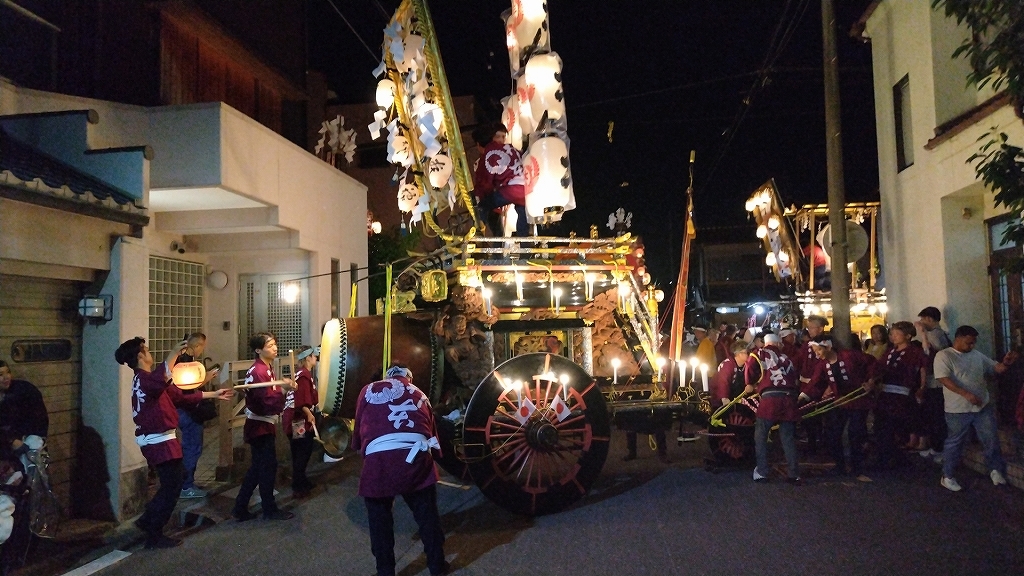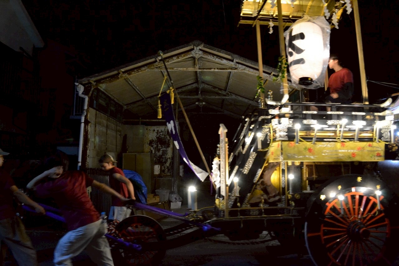 組内一番の上本町祭車は中本町で他祭車が過ぎるのを待ちます。