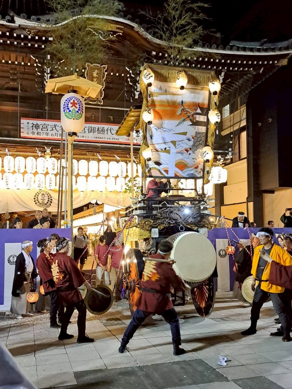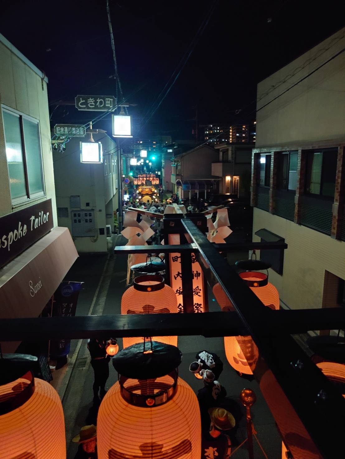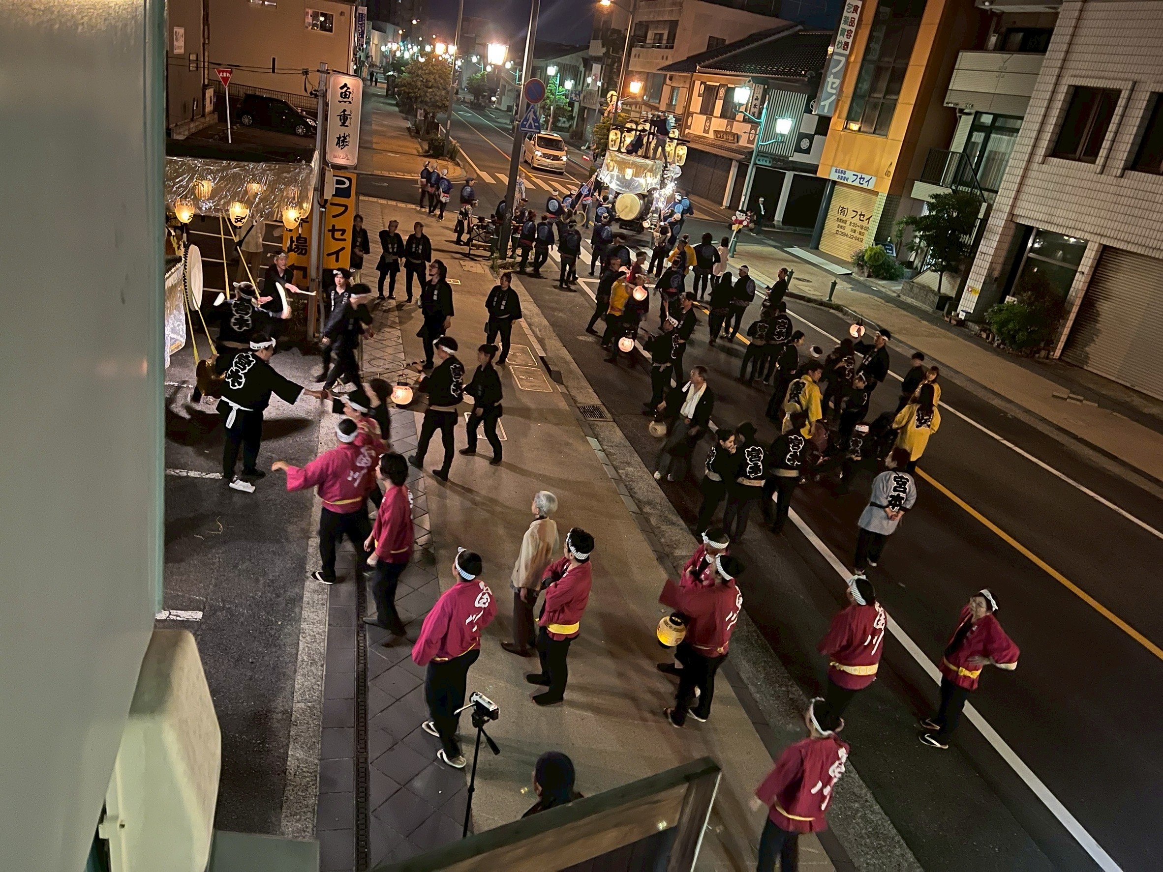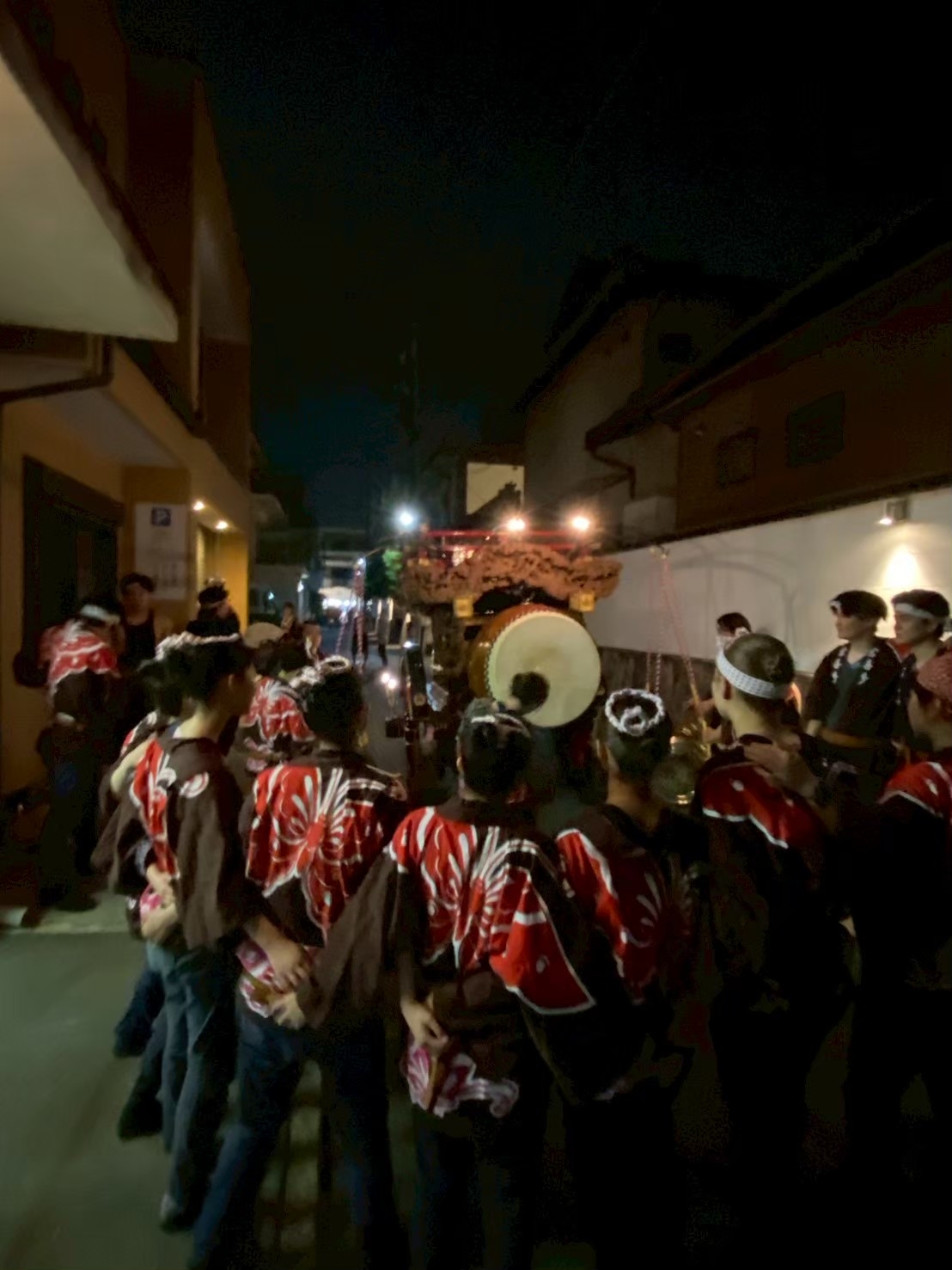 組内一番の上本町祭車は中本町で他祭車が過ぎるのを待ちます。