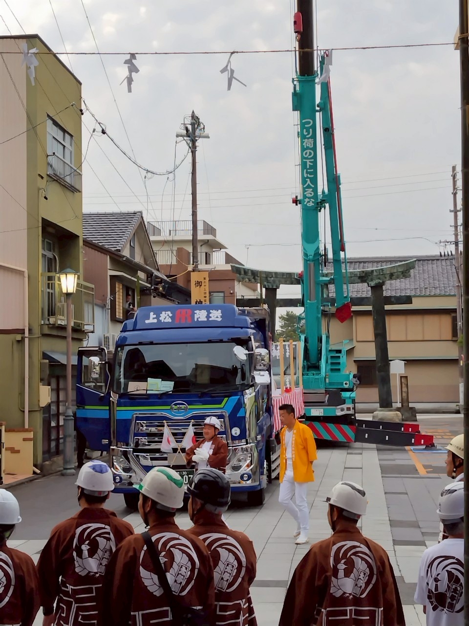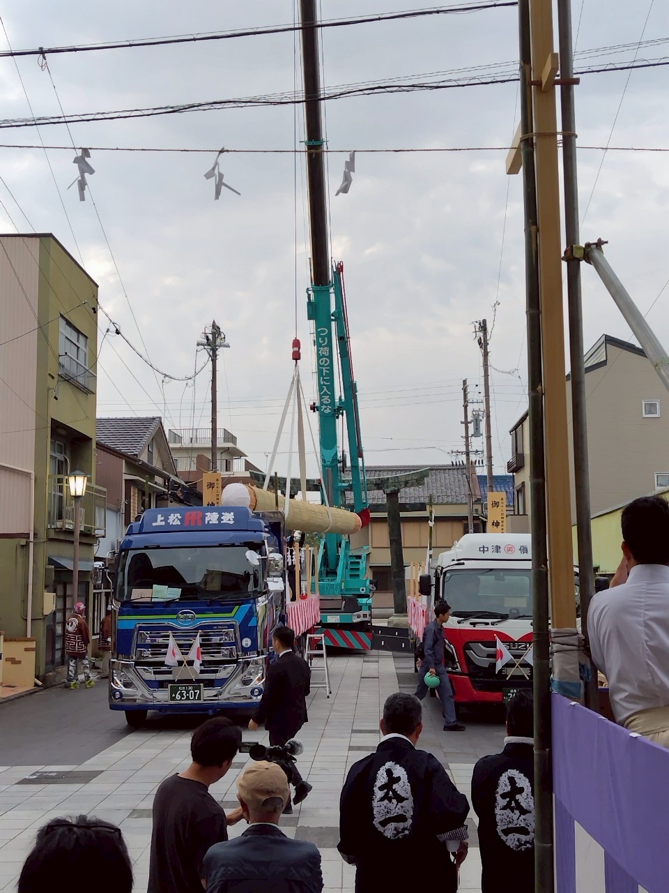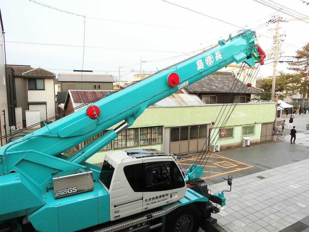 午前5時半前、裏木曽のトラックが広小路に入る前に、吊り上げる作業を開始しました。