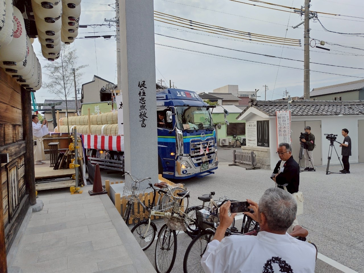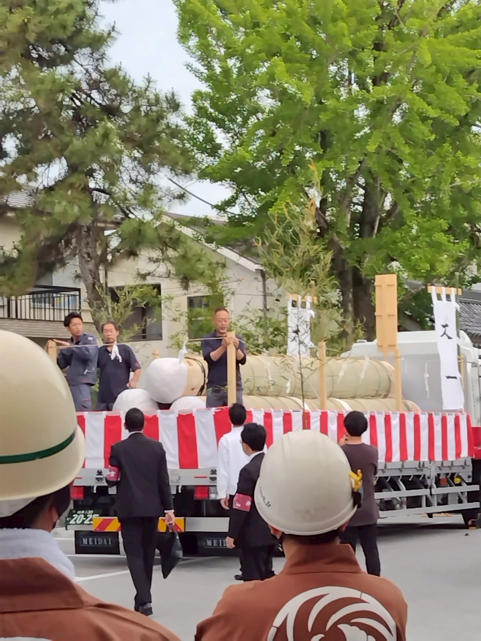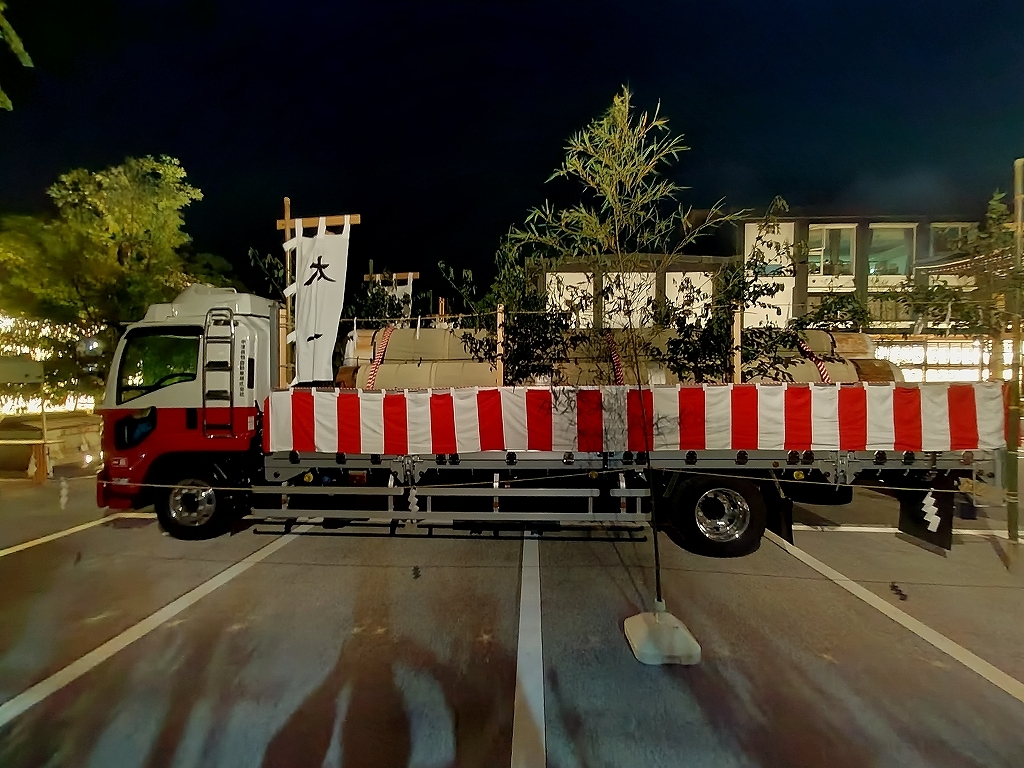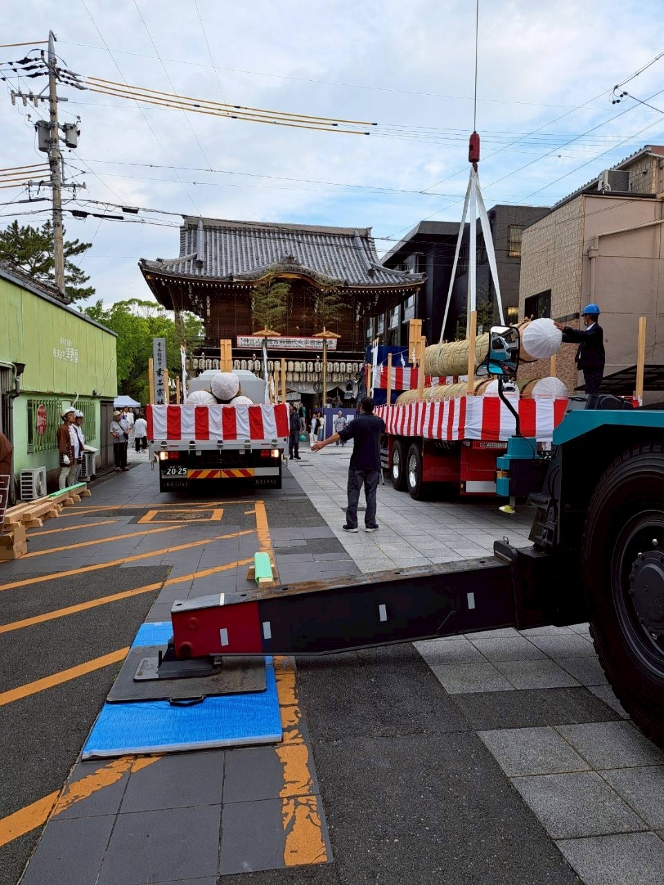 午前5時半前、裏木曽のトラックが広小路に入る前に、吊り上げる作業を開始しました。