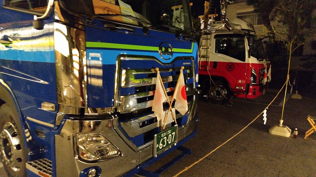 トラックの前には交差旗にされた日章旗が付いていました。