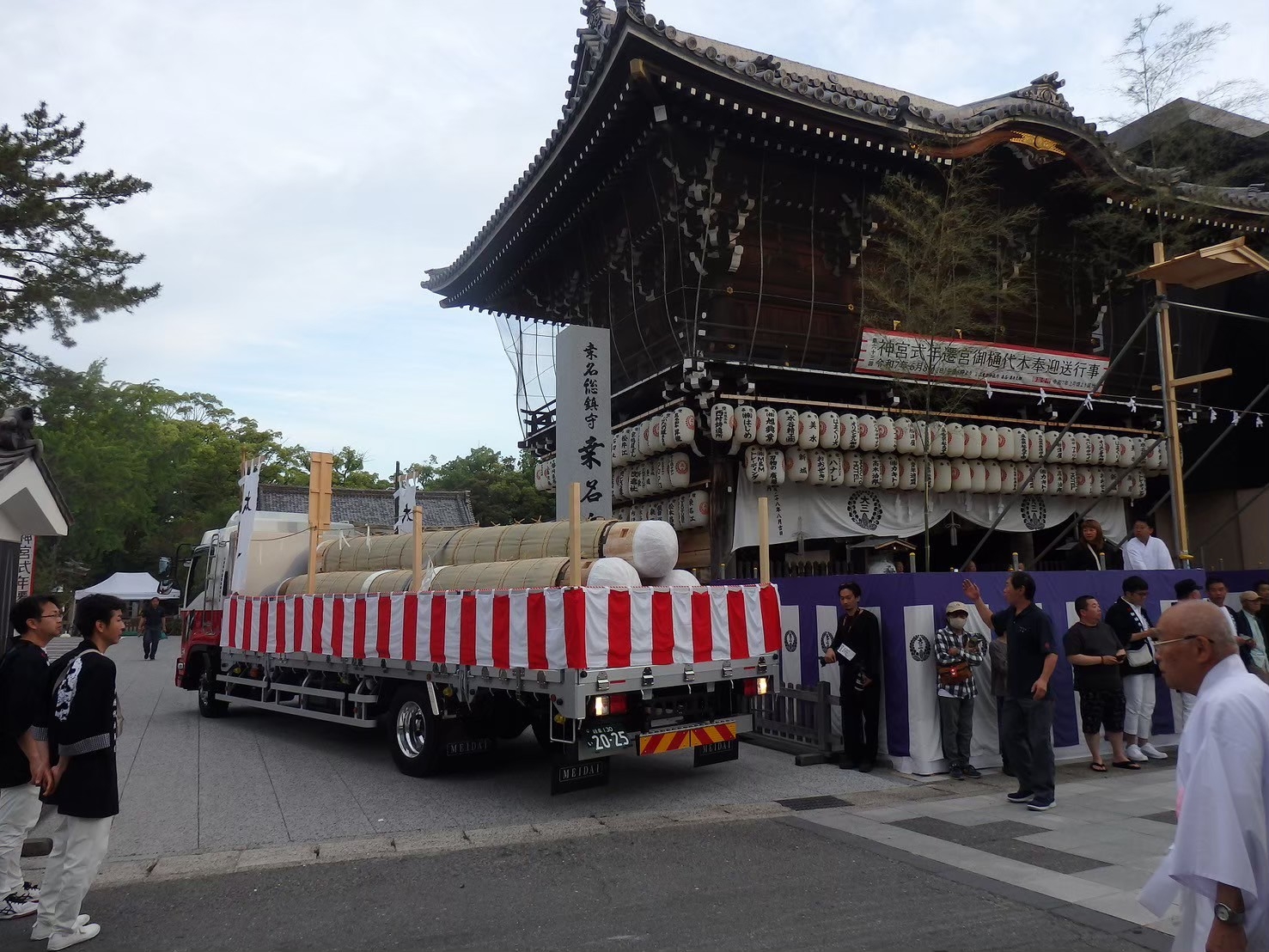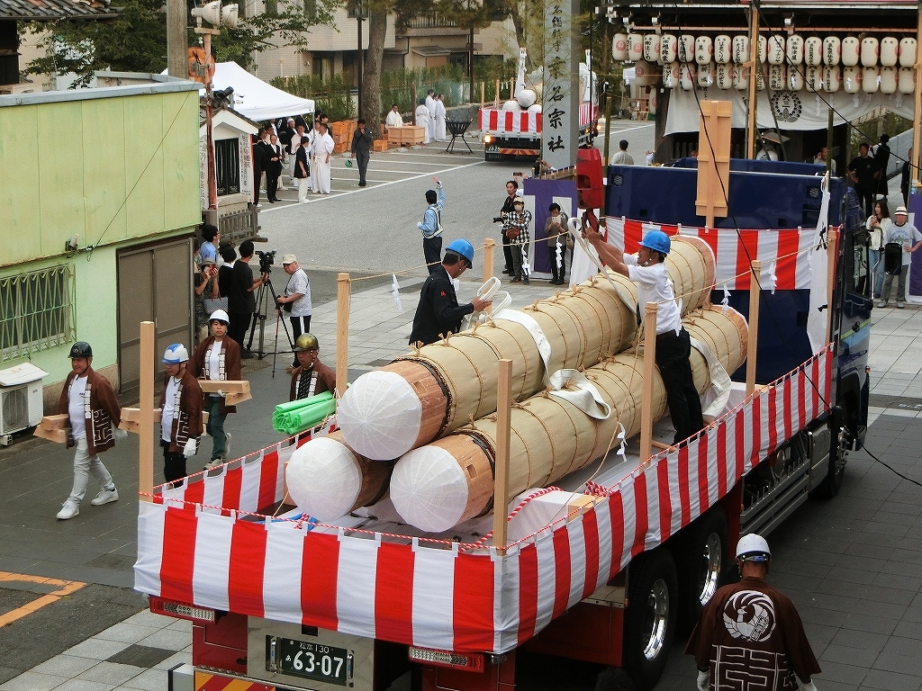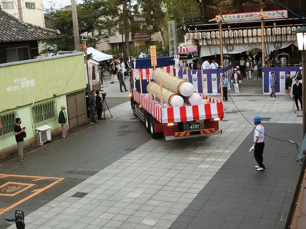 朝日が昇ると、御神木の積み替えが行われました。