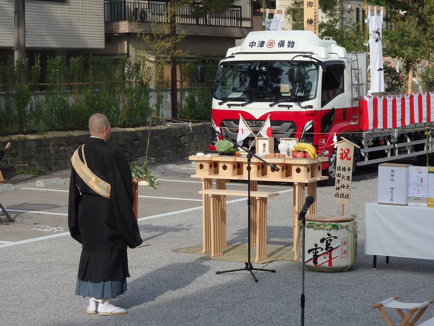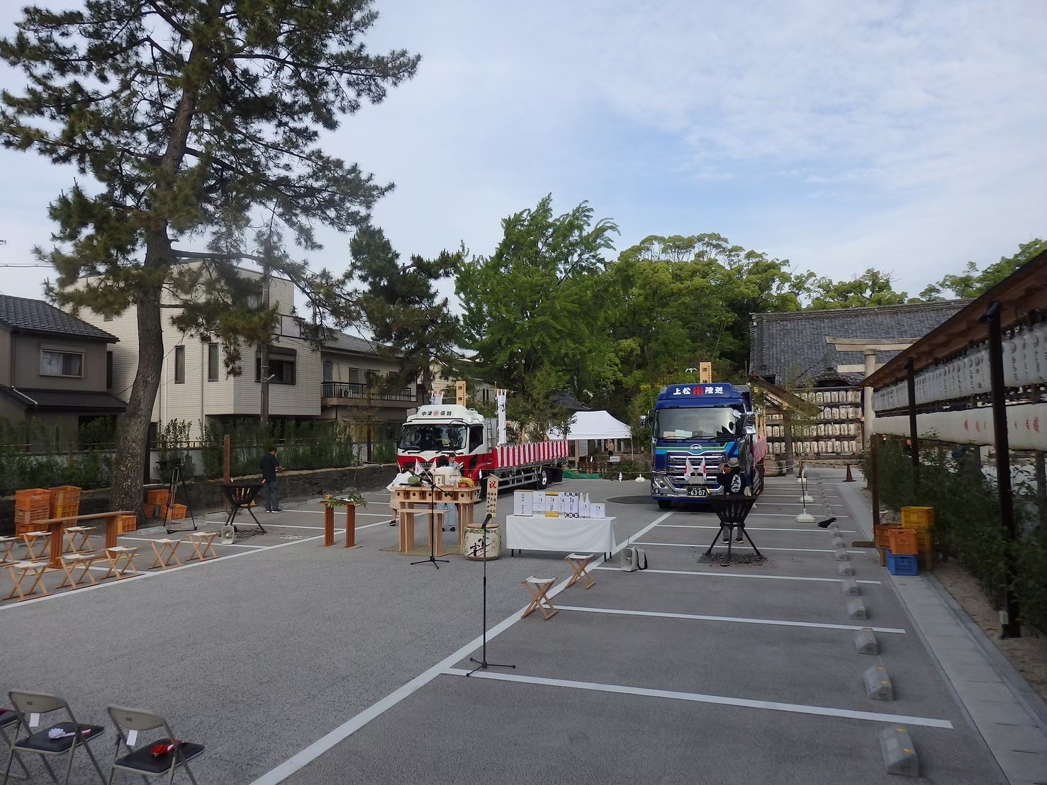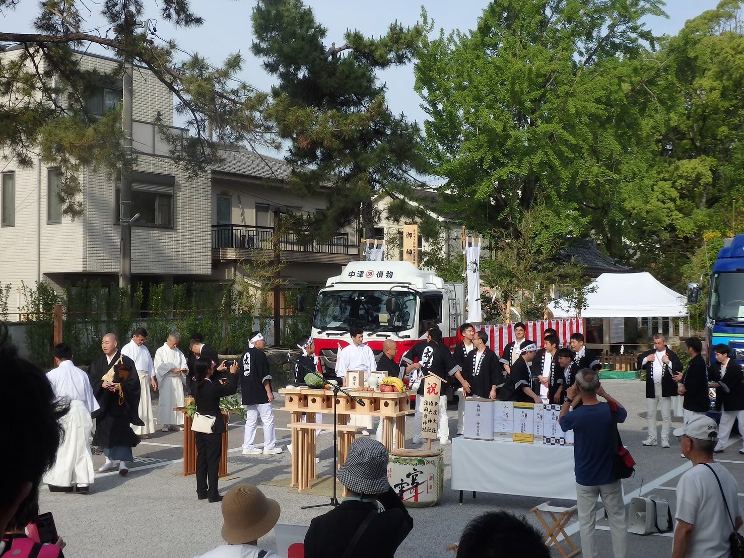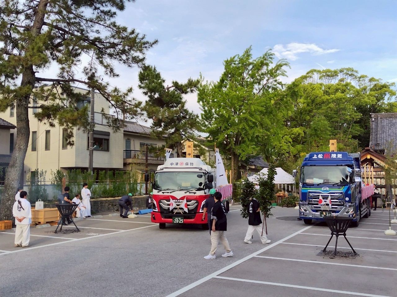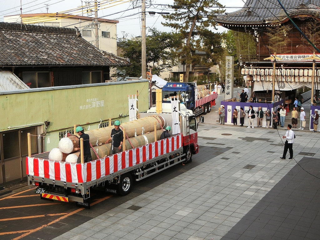 トラックが入ると奉送祭の準備が始まります。