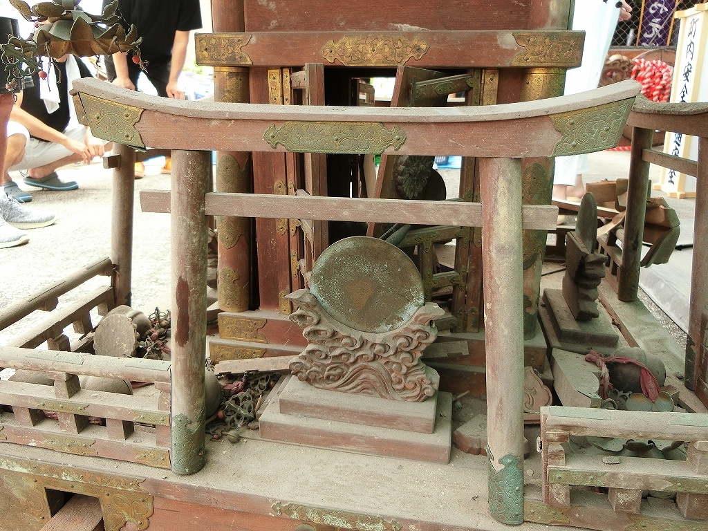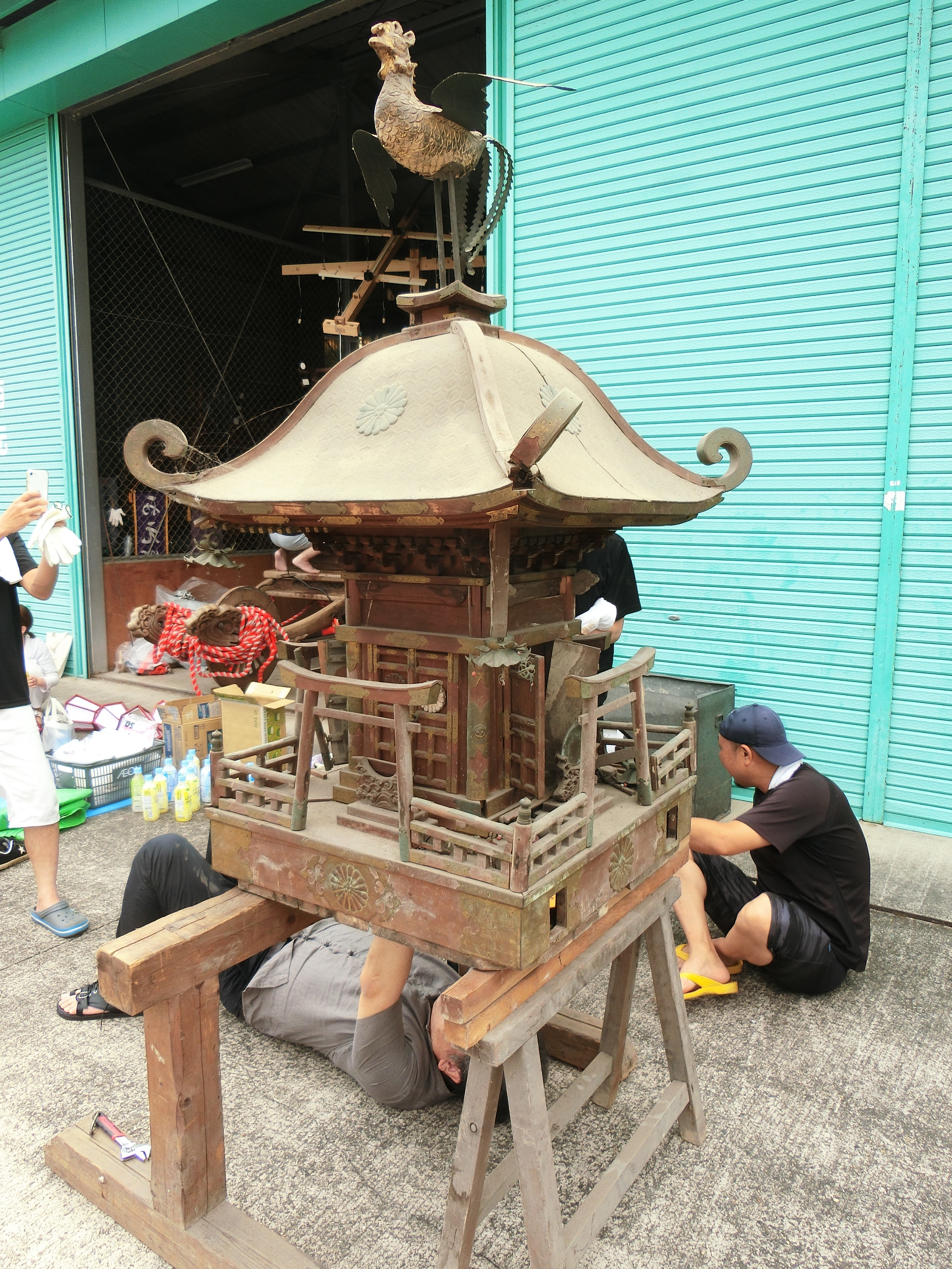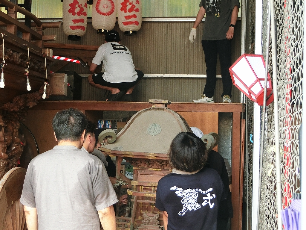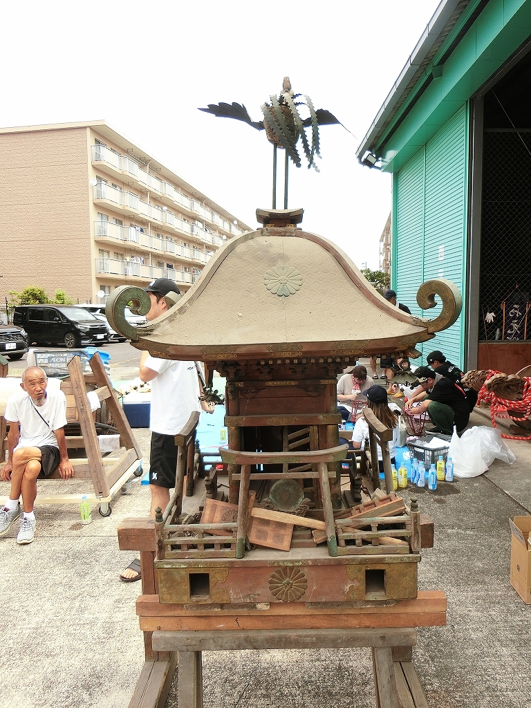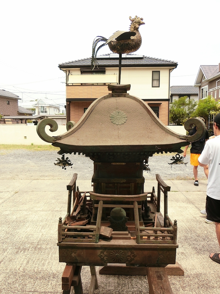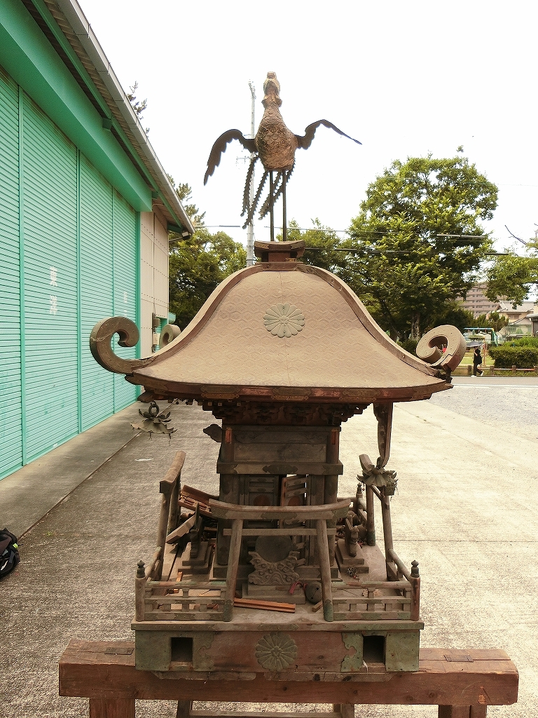 大鳥が間違った方向についたこの神輿は、松二祭車庫に長年眠ったままでした。
