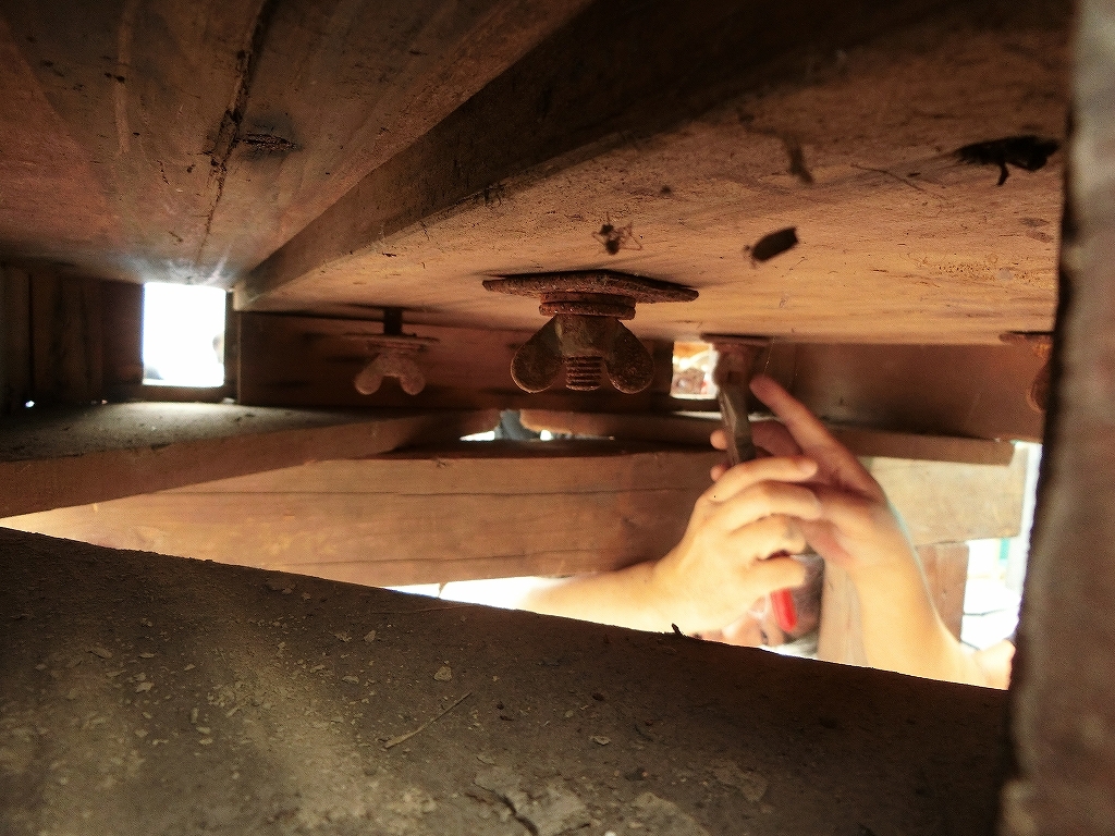 錆び付いた蝶ネジと屋根内に止まるナットが供回りして、外すのに苦労しました。