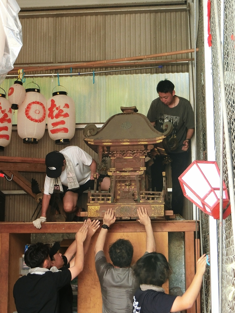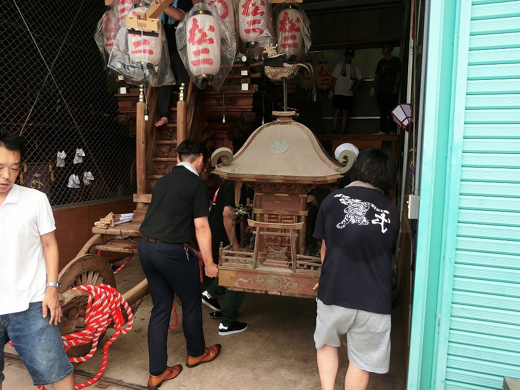 この神輿は、松二祭車建造前に担がれていたもので、東洋紡の間を往復していたそうです。