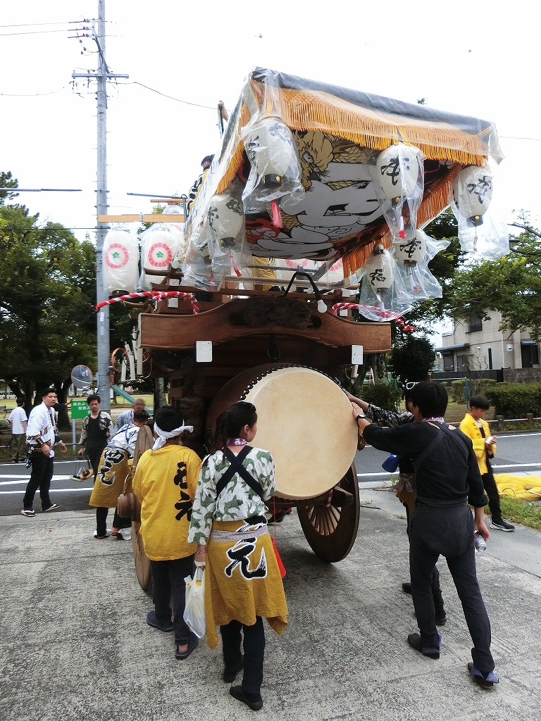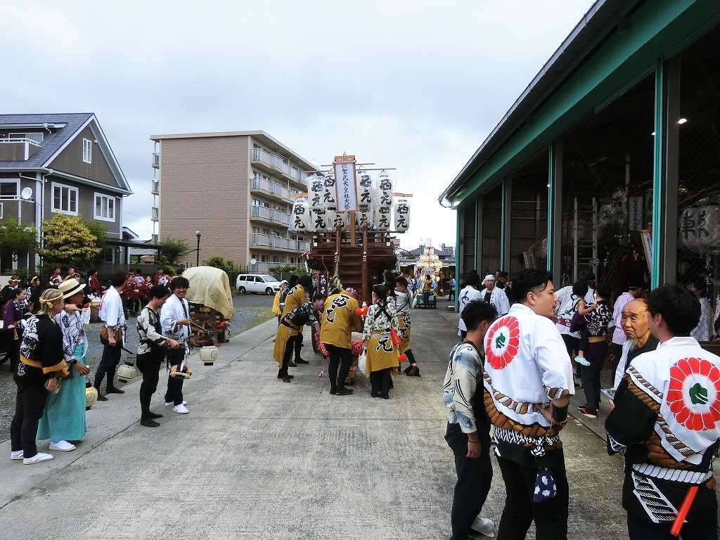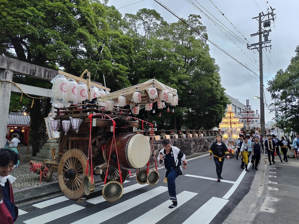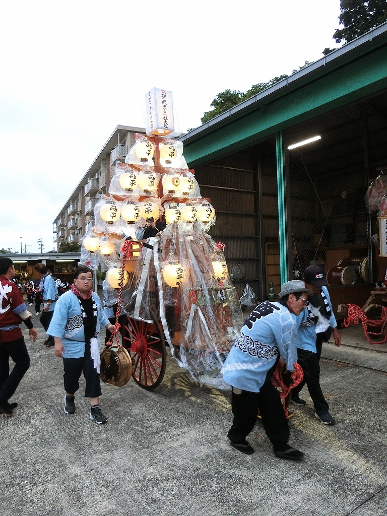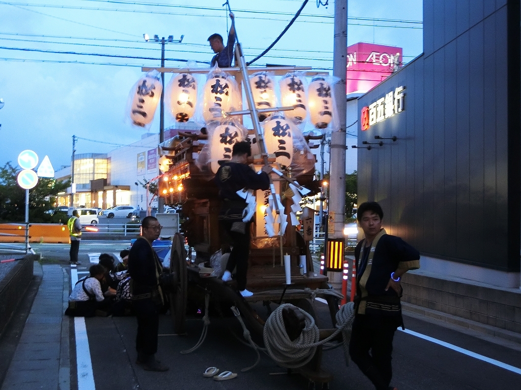 午後6時過ぎ、祭車庫から順次整列場所へと曳き出して行きます。