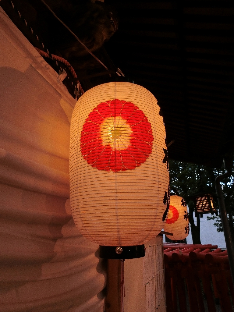 神輿や山形提燈は裏菊ですが、神社の紋は十六花弁菊花紋です。