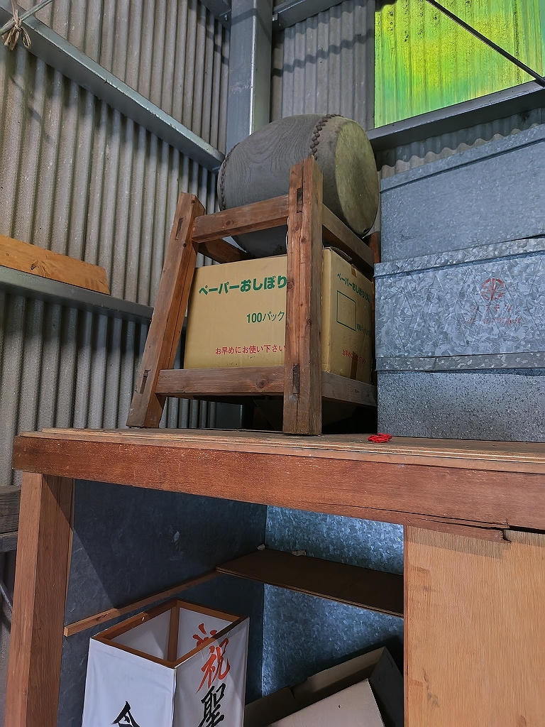 また、祭車庫には古い天幕や古い練習太鼓(?)が残されています。