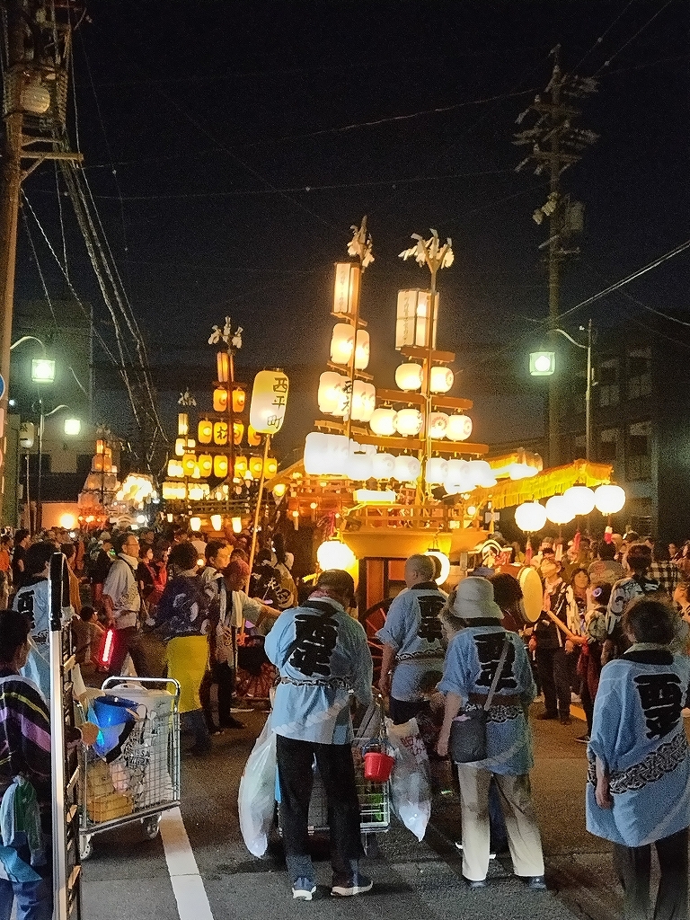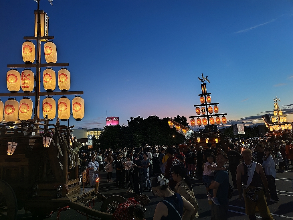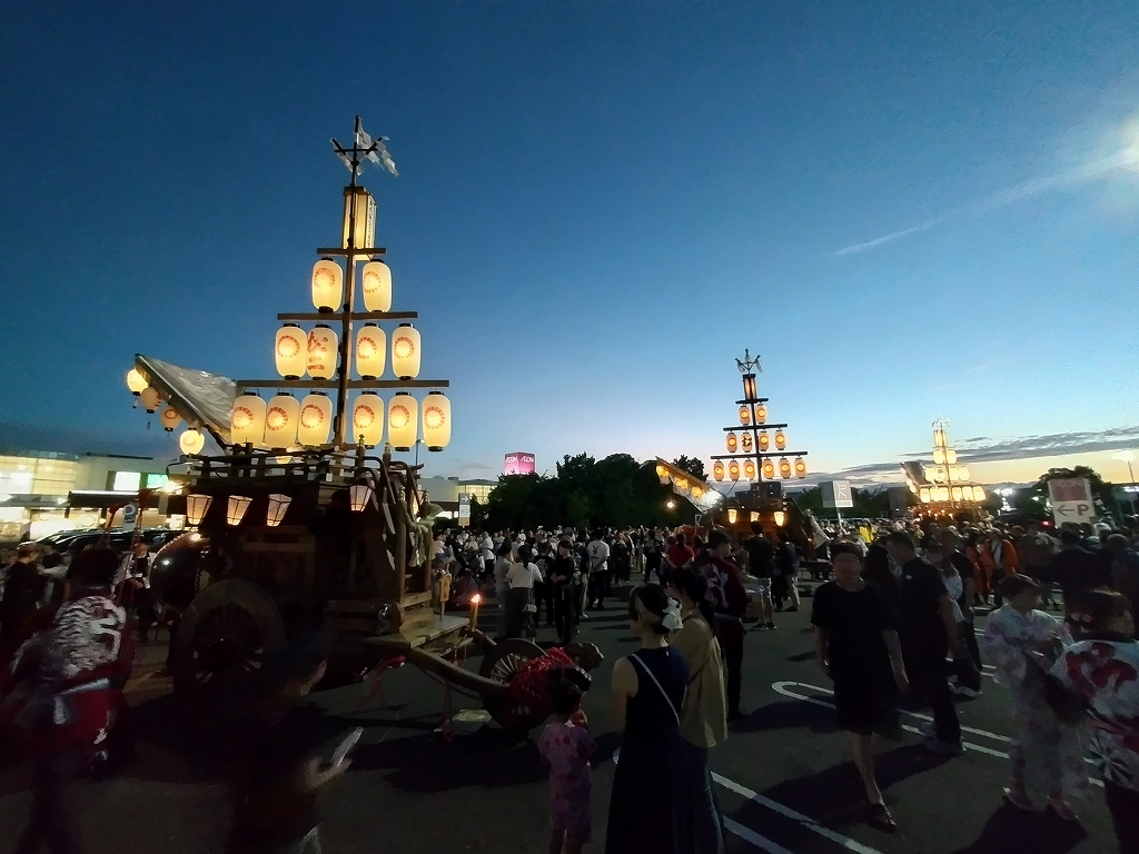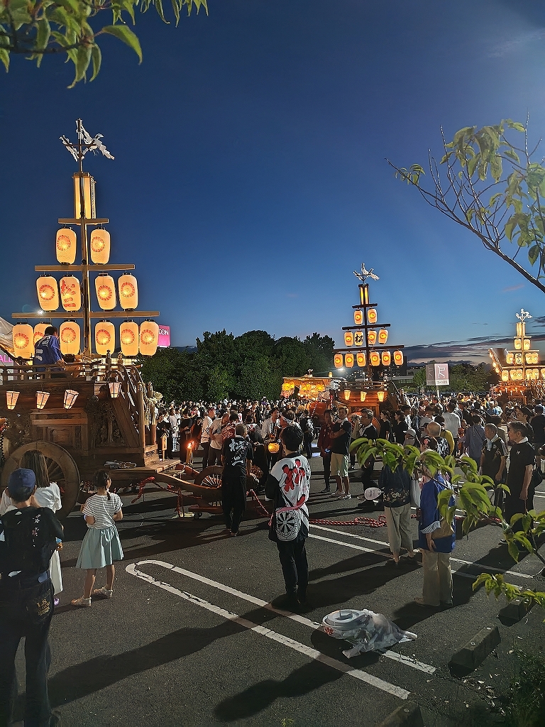 '25 四日市市 聖武天皇社大祭(松原石取祭 本楽④) 二〇二五年神無月三十日 コメント数:0 コメント カテゴリ:石取祭車三重県 by 風神雷神 7/20 イオン駐車場内で夕暮れとなりました!各祭車では明かりを点します。午後7時45分頃、駐車場を曳き出して東洋町商店街を北進します。松原西平町松三松原西元町松原東洋町松一松二いし月前に整列します。順番に左右に振り分けて整列しました。西より松三、東洋町、松二、松一、西元町、西平町です。 【お願い】 皆様のクリック(応援)がランキングに反映されます。 私の見学に向かう原動力ともなりますので、ご協力の程よろしくお願いいたします! (有効カウント1日1回のみ) ↓↓↓ にほんブログ村 にほんブログ村 YouTubeチャンネル登録もよろしくお願いいたします! ↓↓↓石取祭・上げ馬神事・名古屋型山車・知多型山車・犬山型車山・だんじり祭り 拍手もジャンジャンしちゃってください!! ↓↓ 「石取祭車」カテゴリの最新記事 < 前の記事次の記事 > コメント コメントフォーム 名前 コメント 記事の評価 リセット リセット 顔 星 情報を記憶 コメントを投稿する