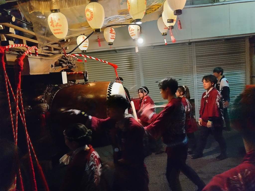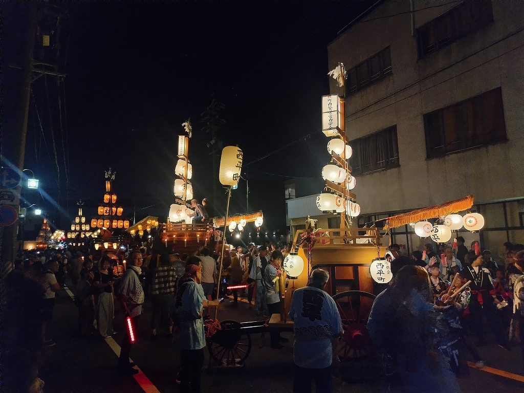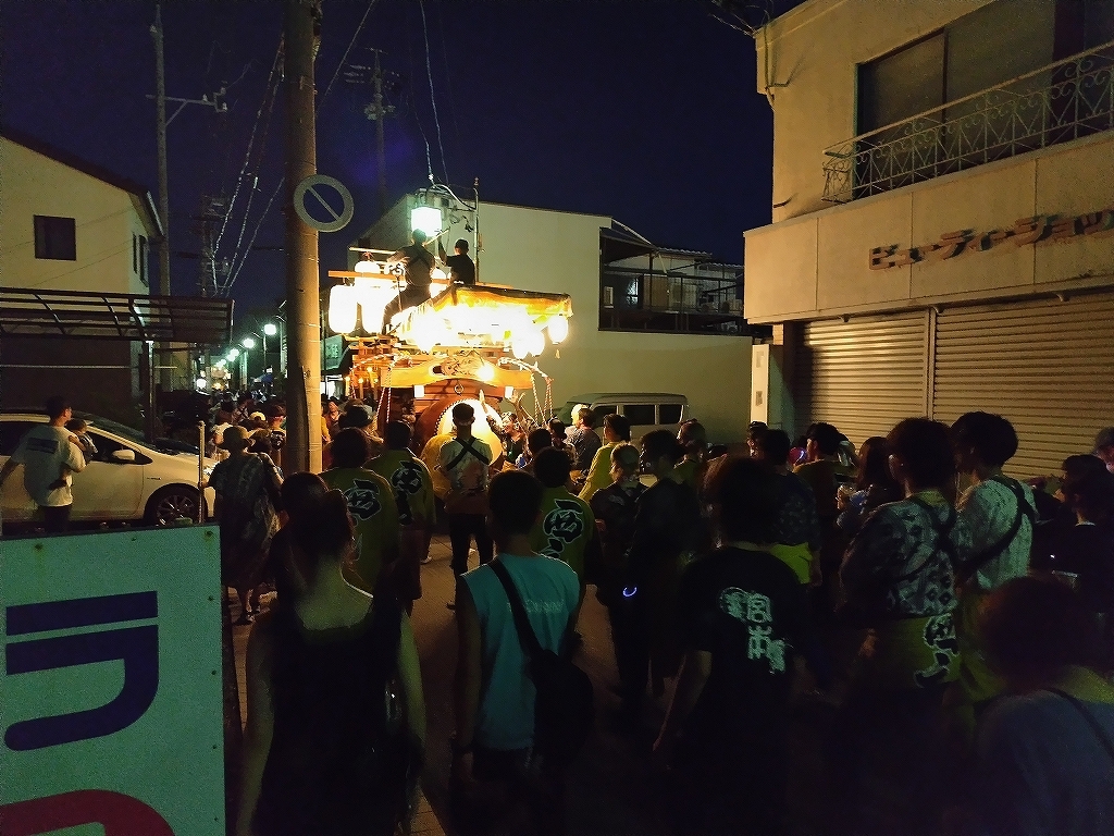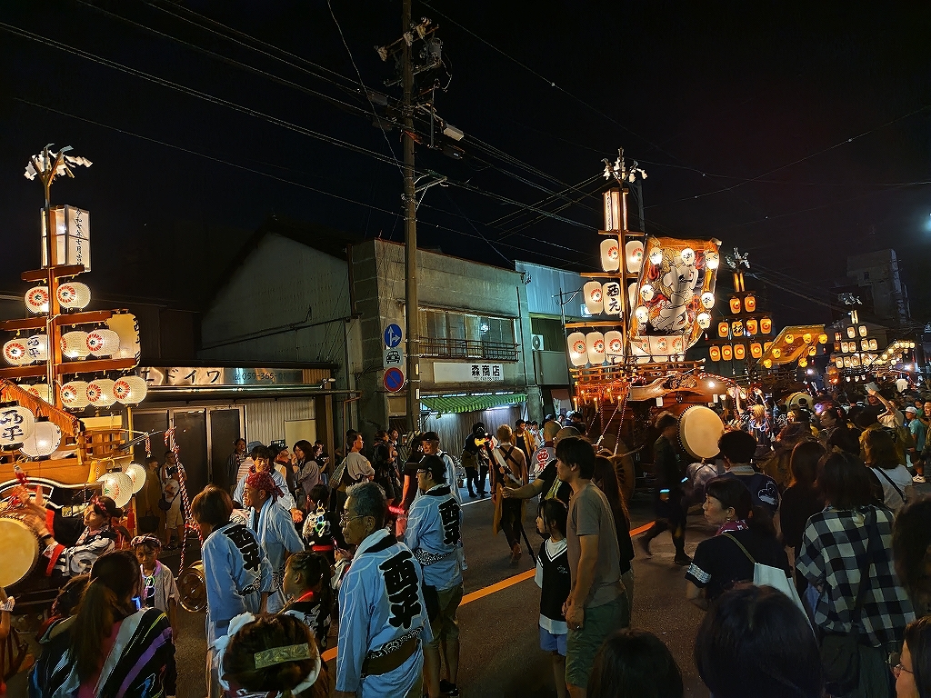 '25 四日市市 聖武天皇社大祭(松原石取祭 本楽④) 二〇二五年神無月三十日 コメント数:0 コメント カテゴリ:石取祭車三重県 by 風神雷神 7/20 イオン駐車場内で夕暮れとなりました!各祭車では明かりを点します。午後7時45分頃、駐車場を曳き出して東洋町商店街を北進します。松原西平町松三松原西元町松原東洋町松一松二いし月前に整列します。順番に左右に振り分けて整列しました。西より松三、東洋町、松二、松一、西元町、西平町です。 【お願い】 皆様のクリック(応援)がランキングに反映されます。 私の見学に向かう原動力ともなりますので、ご協力の程よろしくお願いいたします! (有効カウント1日1回のみ) ↓↓↓ にほんブログ村 にほんブログ村 YouTubeチャンネル登録もよろしくお願いいたします! ↓↓↓石取祭・上げ馬神事・名古屋型山車・知多型山車・犬山型車山・だんじり祭り 拍手もジャンジャンしちゃってください!! ↓↓ 「石取祭車」カテゴリの最新記事 < 前の記事次の記事 > コメント コメントフォーム 名前 コメント 記事の評価 リセット リセット 顔 星 情報を記憶 コメントを投稿する