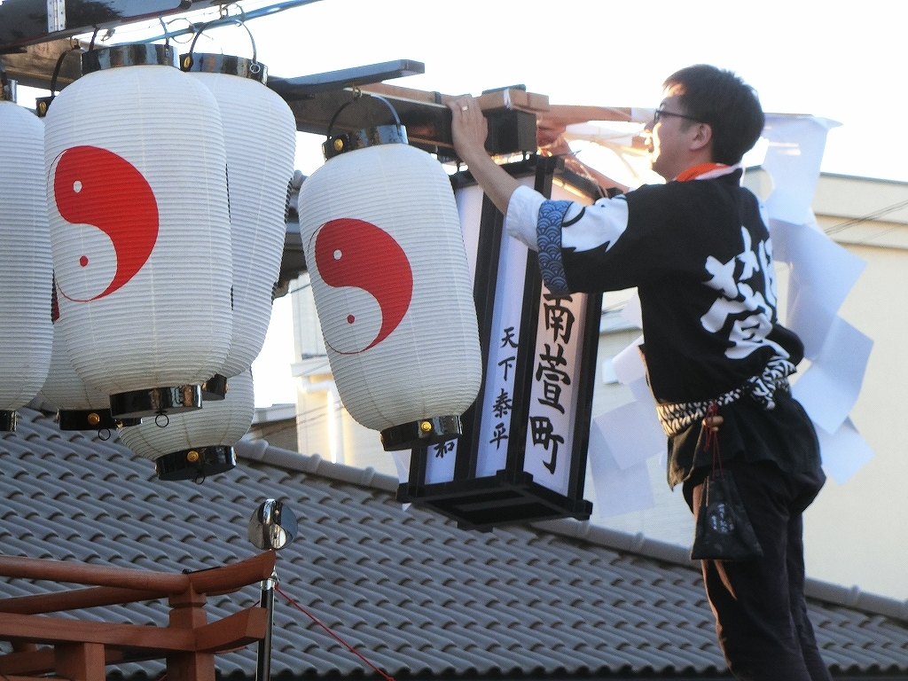 天幕提燈は橋喜多とし、電気配線はせずに電池式蝋燭のようです。